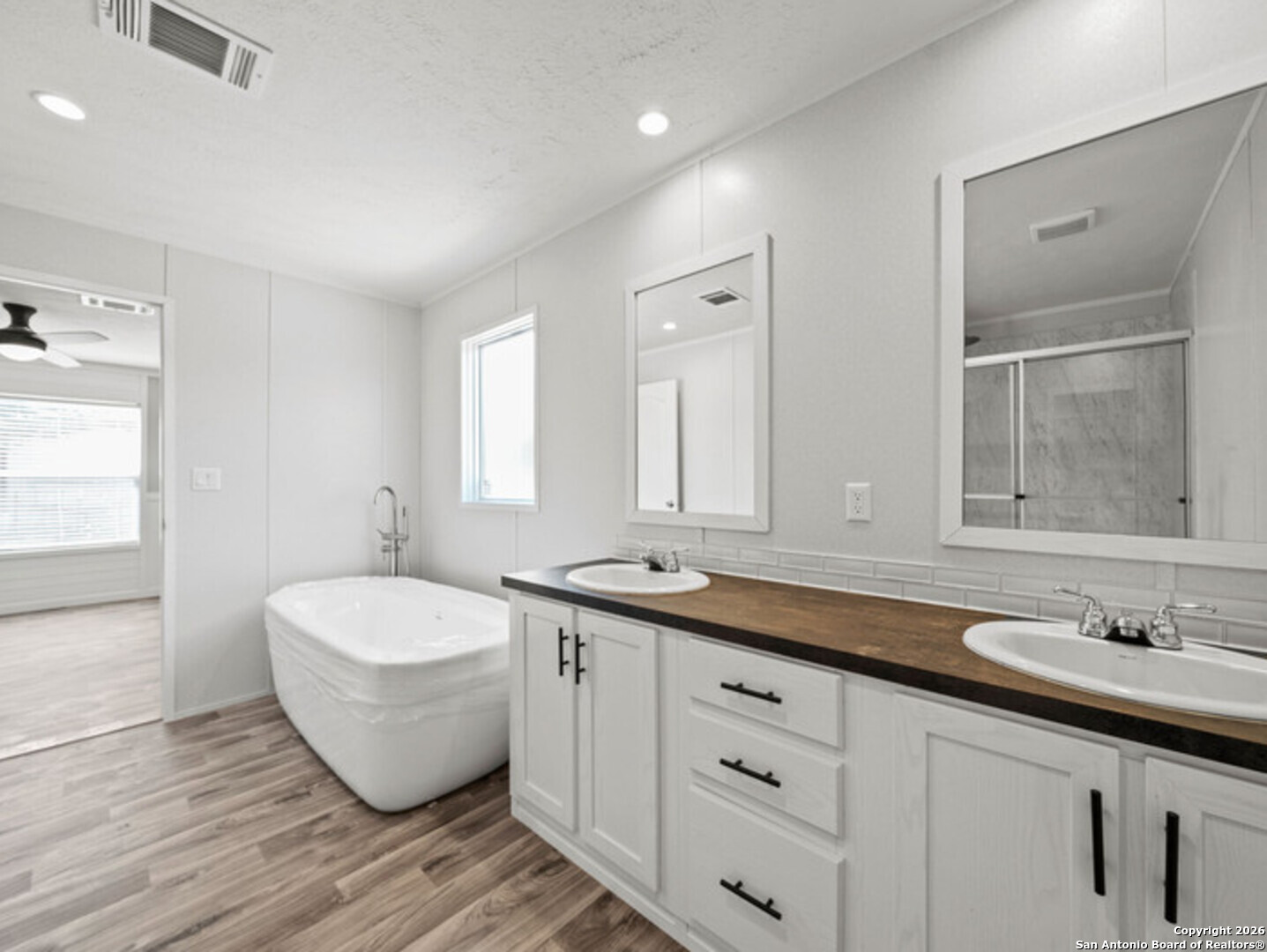 New construction home located in Cypress Lake Gardens, situated on a .24-acre lot. Interior features include a modern kitchen with farmhouse sink and stainless steel refrigerator. Property includes privacy fence with gated access. POA park located across the street ensures no future development. Cypress Lake Gardens POA membership provides access to four community parks, including Rebecca Creek Park and a Guadalupe River park. Property offers a quiet Hill Country setting with access to outdoor recreation.