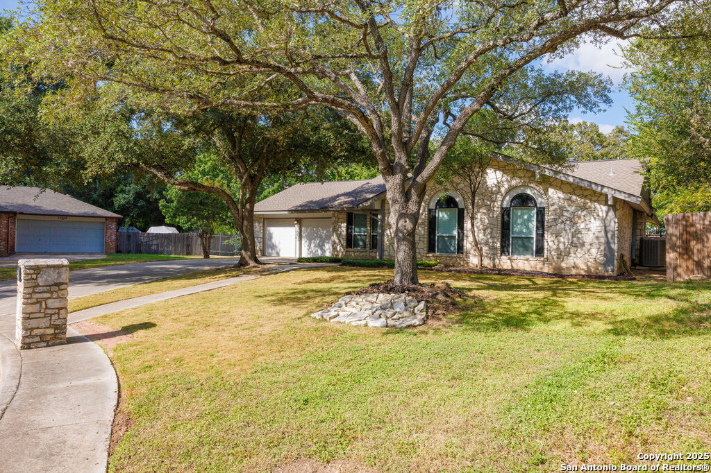 Luxury Living in the Heart of Hidden Forest Welcome to this beautifully updated single-story residence nestled on an expansive .283-acre corner cul-de-sac lot in the highly sought after Hidden Forest Community. Spanning 1799 sq ft, this thoughtfully designed home offers 3 spacious bedrooms, 2 full bathrooms, and two versatile living areas, perfect for both relaxed family living and upscale entertaining. The open-concept layout seamlessly connects the great room to an expansive kitchen, creating a light-filled space with flow and functionality. Enjoy the fresh sophistication of new interior pain, plush carpeting, and modern fixtures throughout, giving the home a stylish and move-in-ready appeal. Step outside tp discover your private sanctuary - lush landscaping, mature trees and room to roam on one of the largest lots in the neighborhood. Don't miss this rare opportunity to own a beautifully updated home in one of North San Antonio's most desirable neighborhoods. Hidden Forest offers established charm, excellent schools, and unbeatable access to dining, shopping, airport, and major highways. Welcome home!