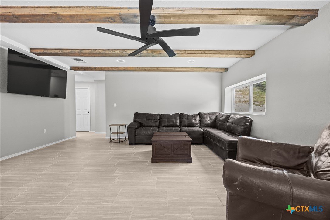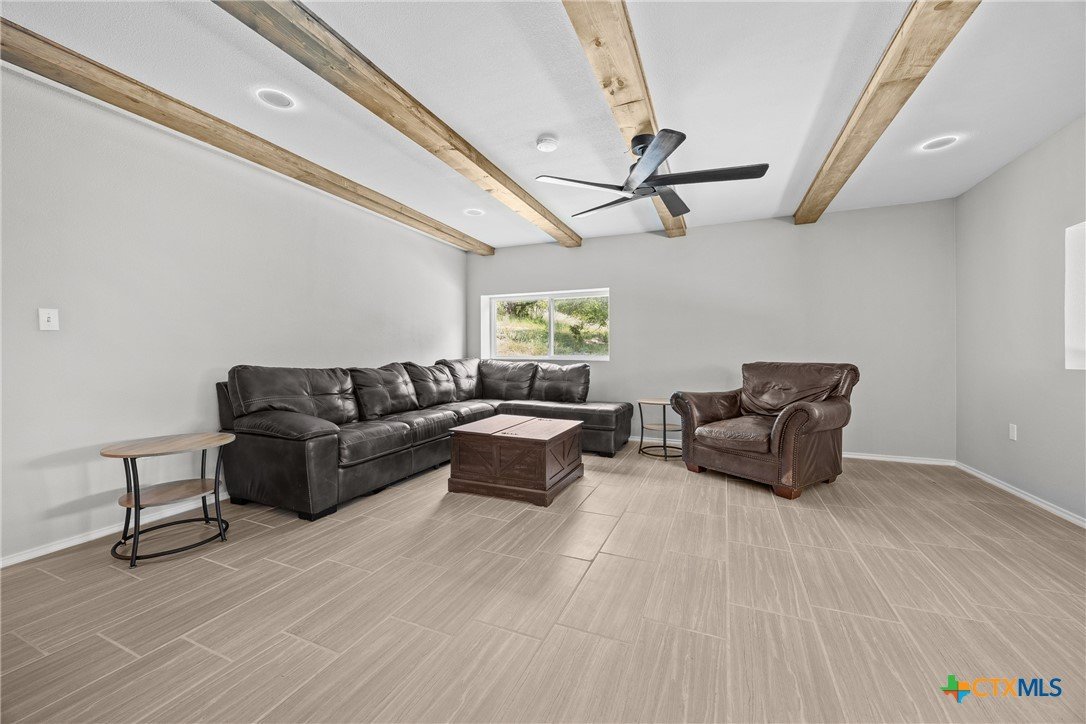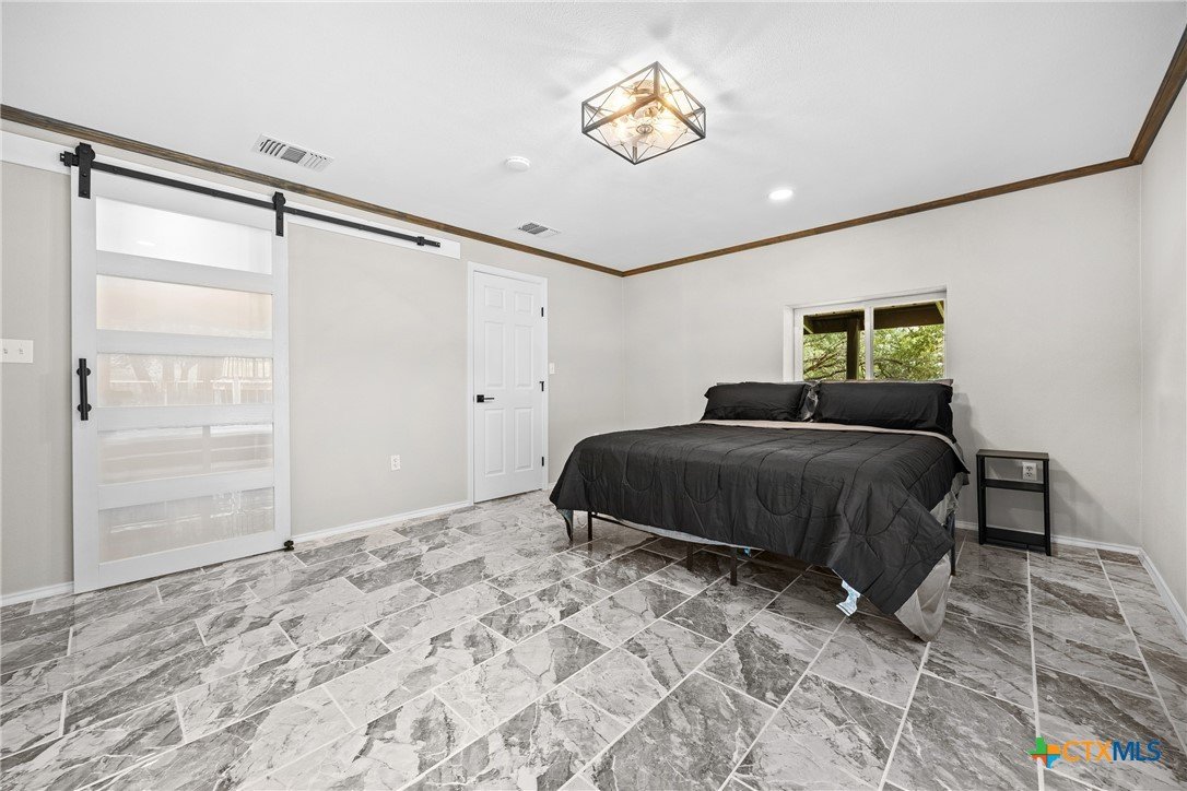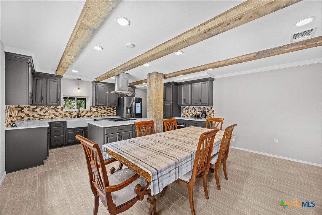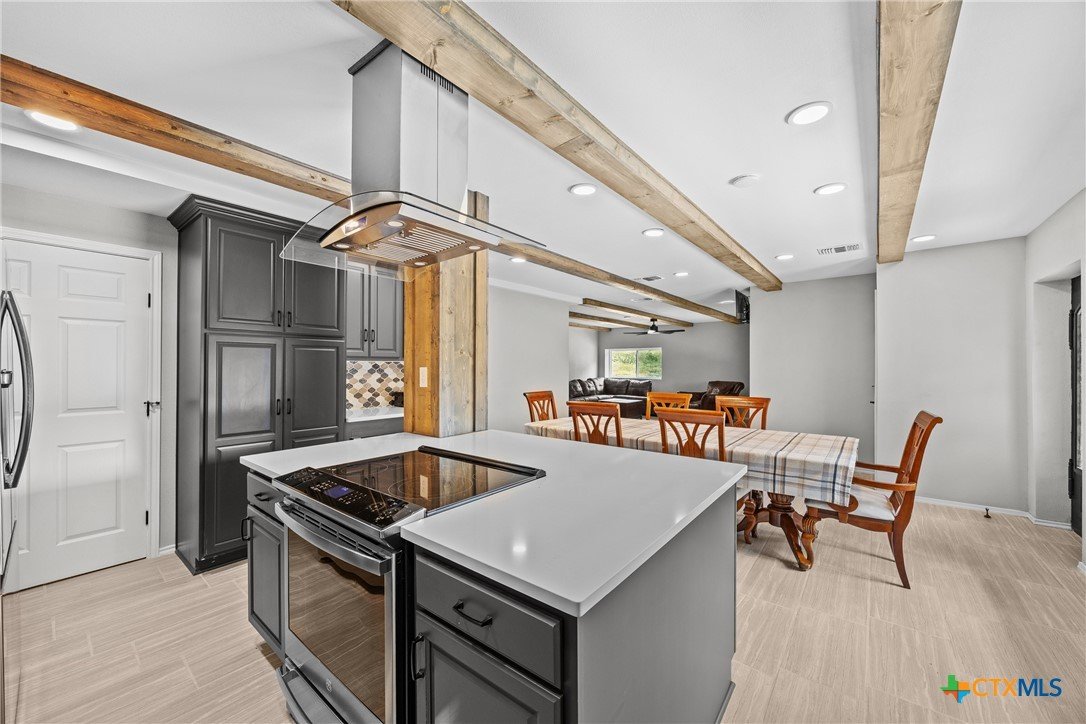 This stunning barndominium-style home offers modern convenience and rural serenity on 9+ acres, only 15 minutes from key locations. The owner has invested in smart appliances, including an oven with air fryer and convection settings, and a built-in microwave all with extended warranties. The kitchen features custom soft-close cabinets, sleek siltstone countertops, and a farmhouse sink. The home’s energy efficiency shines with 8-inch insulation (R-31 value), double-pane custom windows (under warranty), and recessed lighting throughout with a night light option. Boasting 3 bedrooms, 2 bathrooms, a timber frame front entry, and a modern grey color palette, the space blends comfort and style. The primary bath is a luxurious retreat with a waterfall spout and dual lighting. Outdoors, enjoy a wrap-around porch, a 2-tiered deck with beautiful views, and a spacious 1,200 sq. ft. finished 4 car garage or workshop fully insulated with water and 240V electric connections. With minimal deed restrictions and no HOA, this peaceful retreat is perfect for relaxation and entertaining.