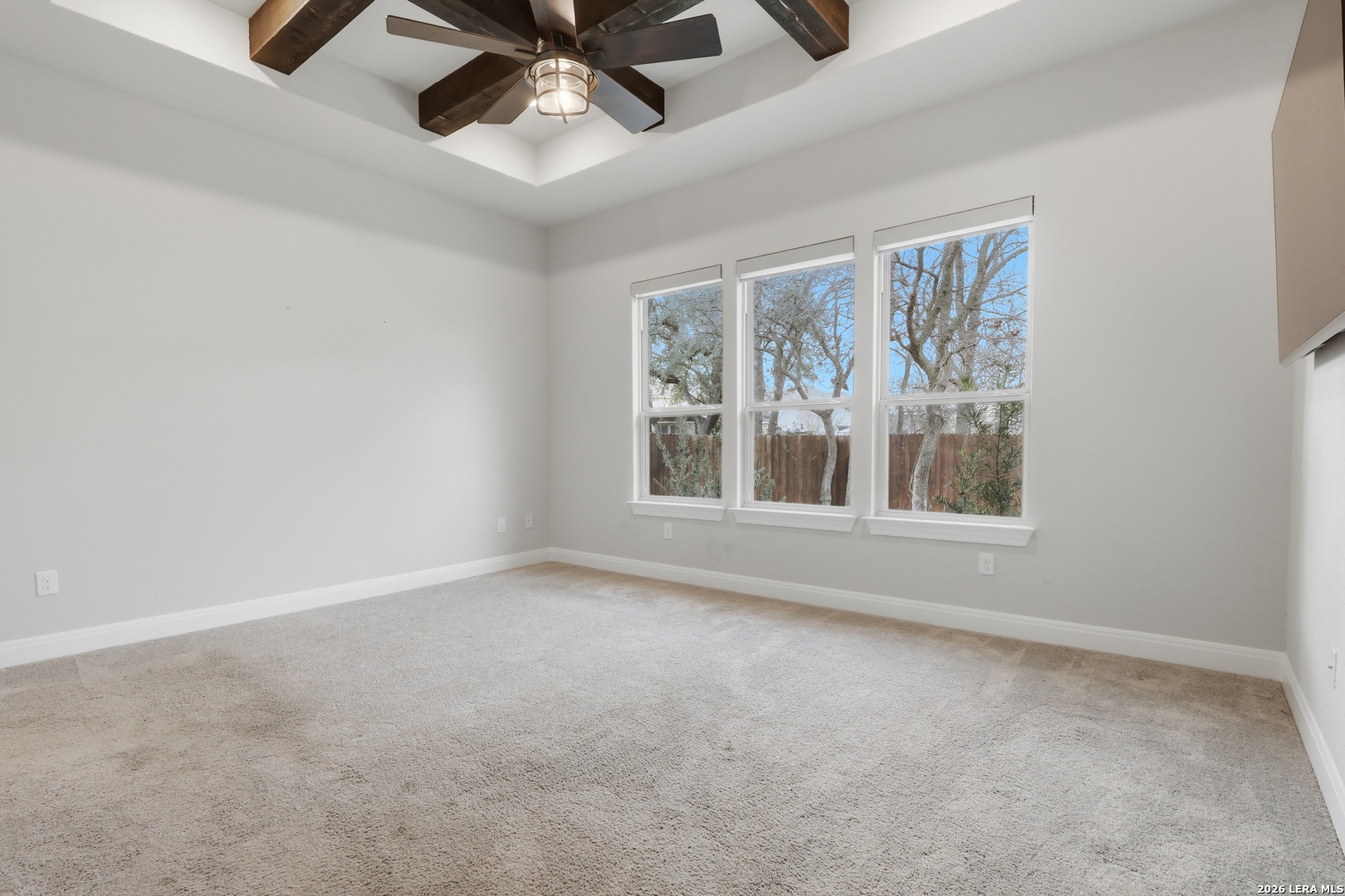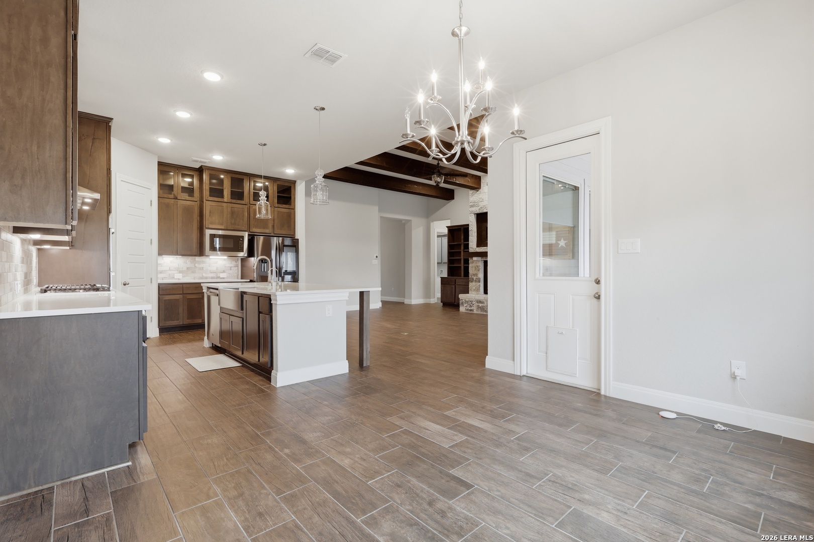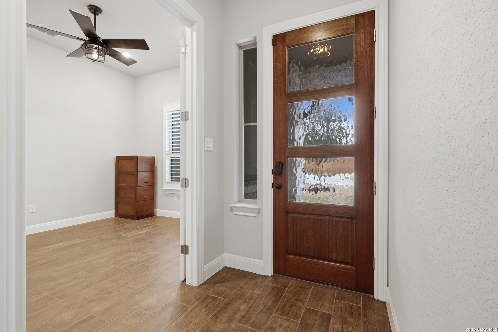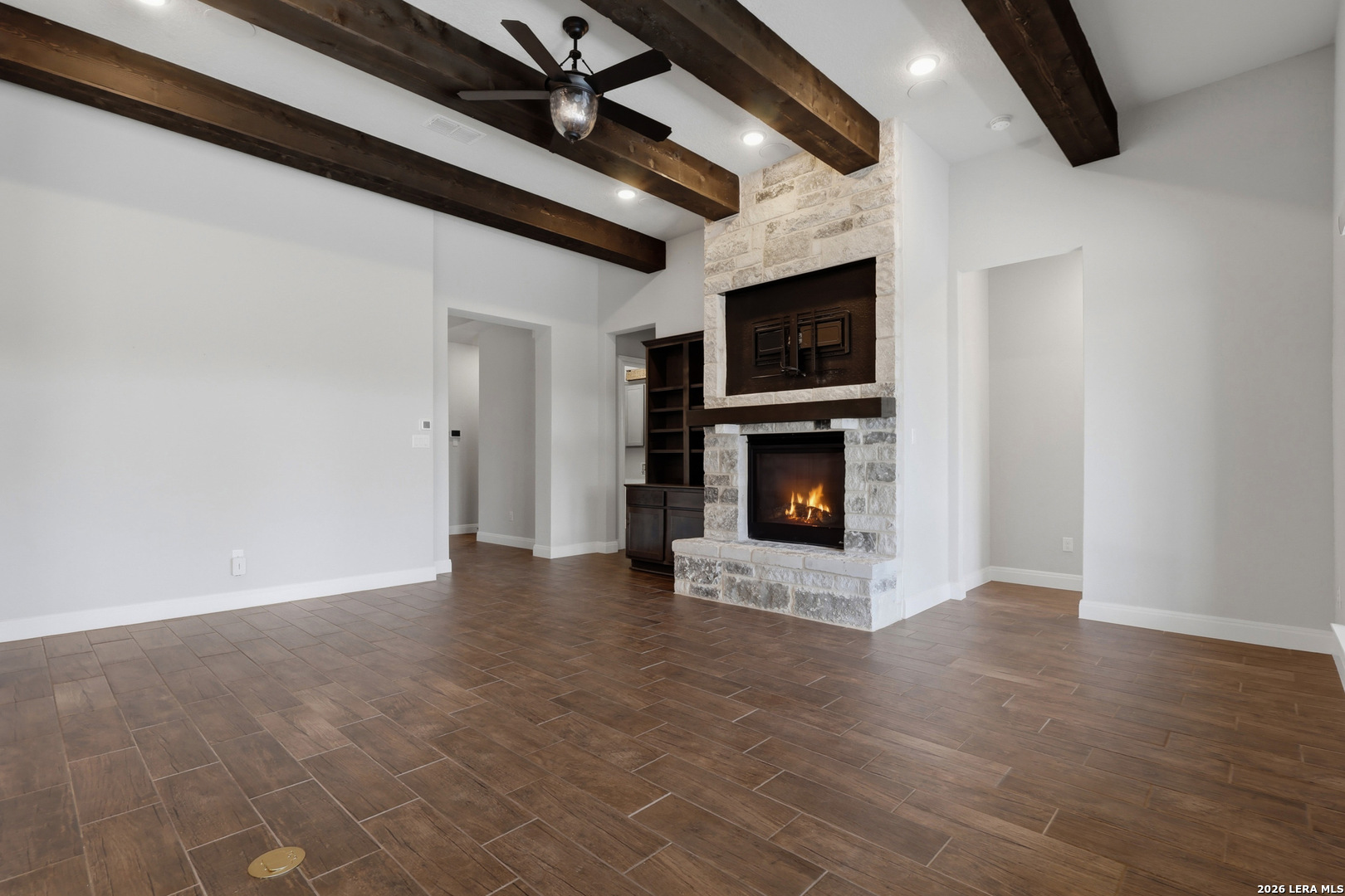 Beautifully upgraded single-story home featuring 3 bedrooms, 2.5 baths, plus a dedicated office, flex room, and extra storage space. Backing to a serene green space this property offers privacy in a highly desirable location. The gourmet kitchen showcases quartz countertops, double ovens, smart appliances, reverse osmosis system, and a built-in wine fridge - perfect for entertaining. The open-concept living area is enhanced with wood beams, a cozy fireplace, built-in shelving, and surround sound for elevated everyday living. Additional highlights include automatic blinds and blackout blinds in one bedrooms. Step outside to a spacious covered patio with an outdoor kitchen. Nestled near Gruene's boutique shops, live music venues, and the Guadalupe River, this home offers both charm and convenience just a golf cart ride away. With easy access to downtown New Braunfels, top-rated schools, and Hill Country attractions, it perfectly combines modern comfort with an exceptional location.
