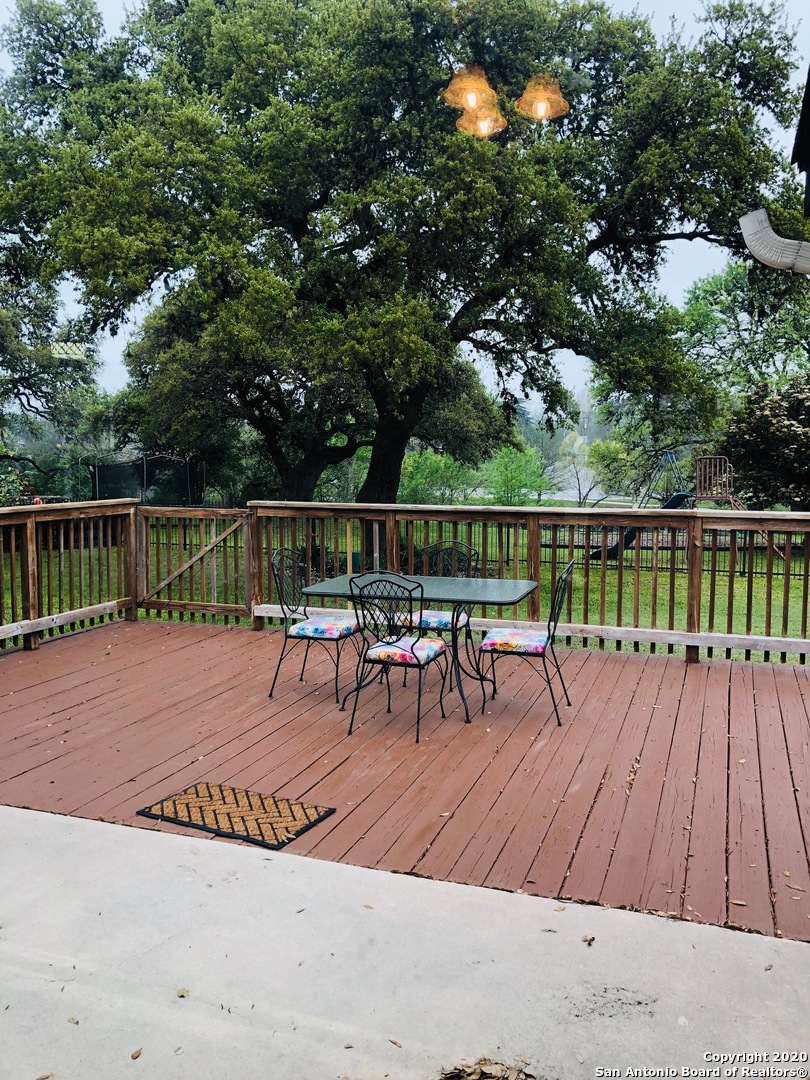 PRESTIGIOUS ADDRESS - EVERGREEN STREET! THIS HOME HAS BEEN TRANSFORMED INTO A BEAUTIFUL, TRANQUIL, BEAUTIFULLY FURNISHED HIDE-A-WAY RIGHT IN THE MIDDLE OF BOERNE! EVERYTHING YOU NEED TO JUST MOVE IN AND BEGIN TO ENJOY ALL IT HAS TO OFFER. STARTING WITH THE AMAZING 18 X 22 DECK/PATIO. ENJOY THE PHOTOS.