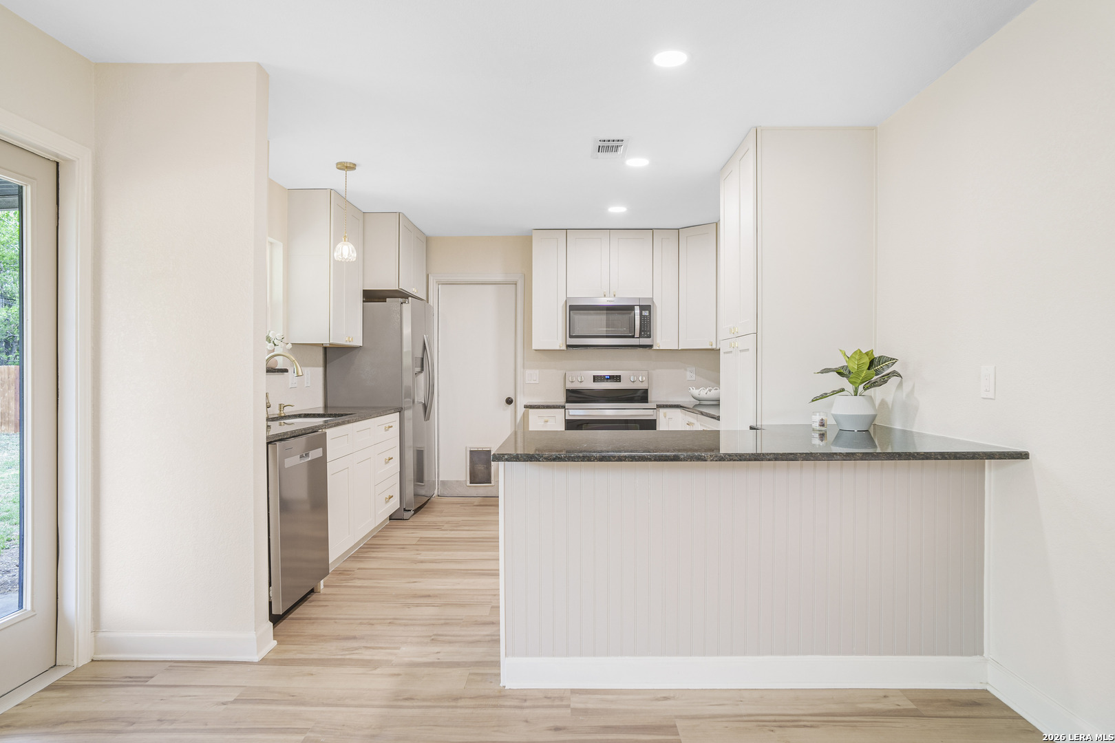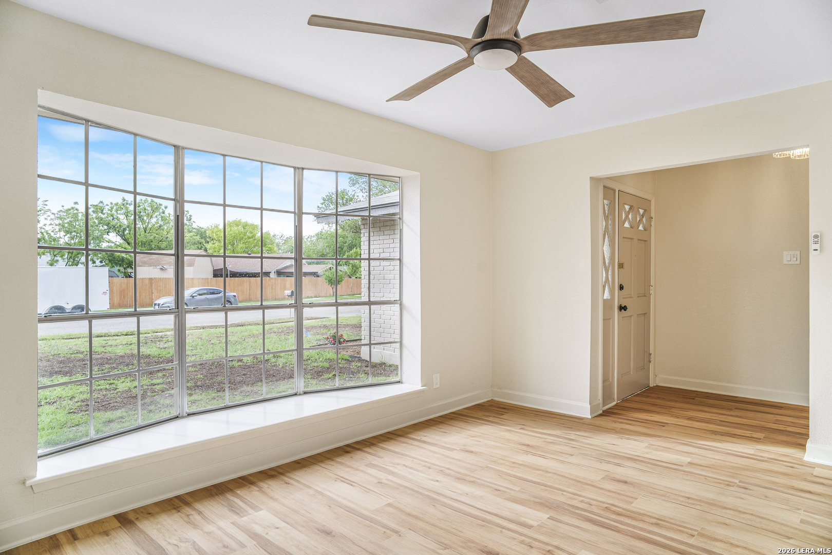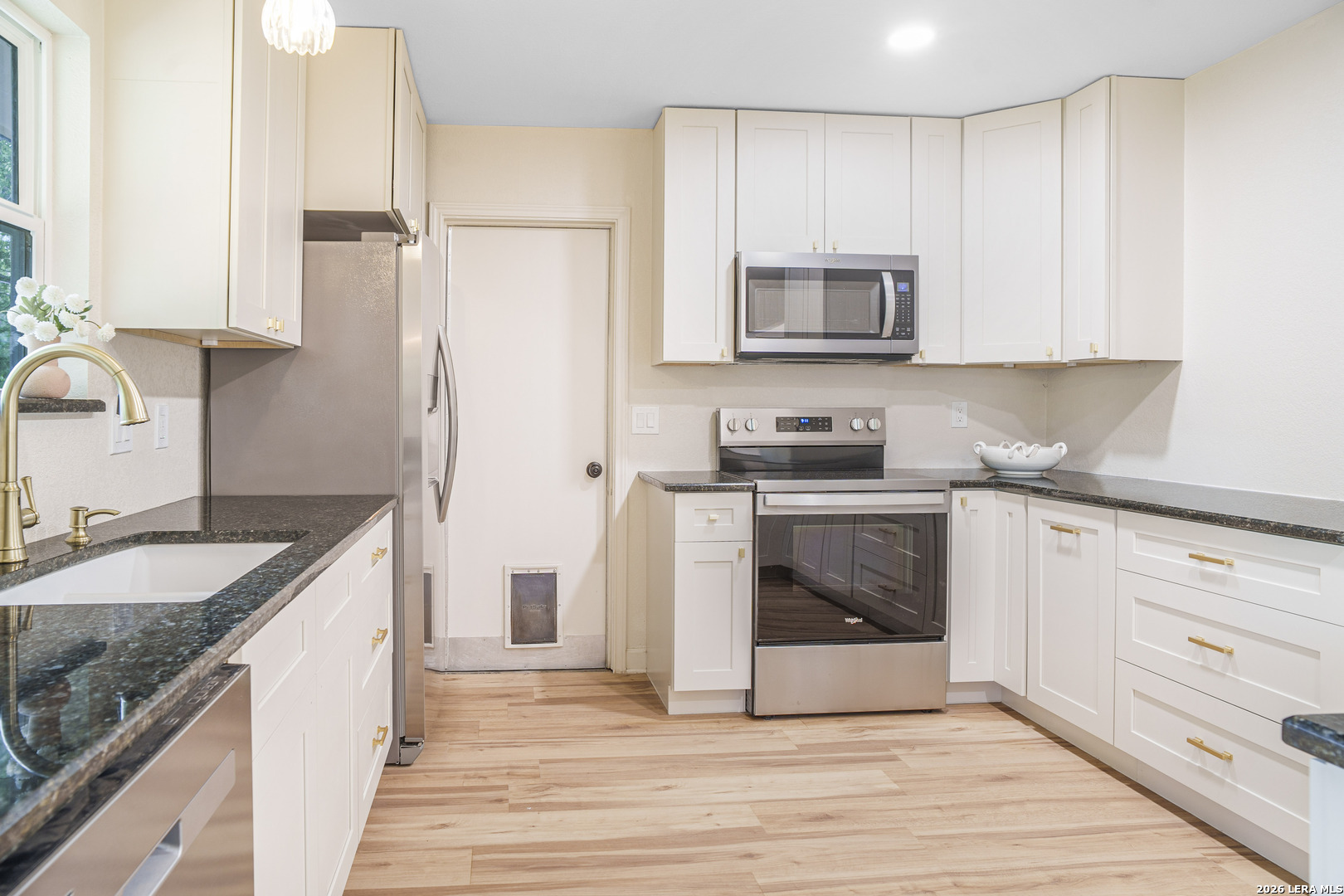 Welcome to 11611 Spring Mont, where modern updates meet timeless style. This beautifully renovated home features premium wide-plank luxury vinyl flooring throughout, fresh neutral paint, new trim and baseboards, and upgraded lighting with elegant brushed gold finishes. The kitchen is a standout, offering new shaker-style cabinetry with soft-close features, an added pantry for extra storage, granite countertops, and a full suite of stainless steel appliances-including the refrigerator. A motion-sensor faucet and new energy-efficient window complete the space. The primary suite offers a fully updated bath with a new double vanity, custom-tiled shower and flooring, updated lighting, and new fixtures throughout. Secondary bedrooms include new energy-efficient windows and ceiling fans, creating comfortable, functional spaces. Step outside to enjoy fresh exterior paint, new landscaping, and a newly installed cedar fence with a unique design. The fence has been strategically positioned to maximize backyard space and includes a double gate for convenient drive-through access. This is a turnkey home with high-end finishes throughout-ready for its next owner.
