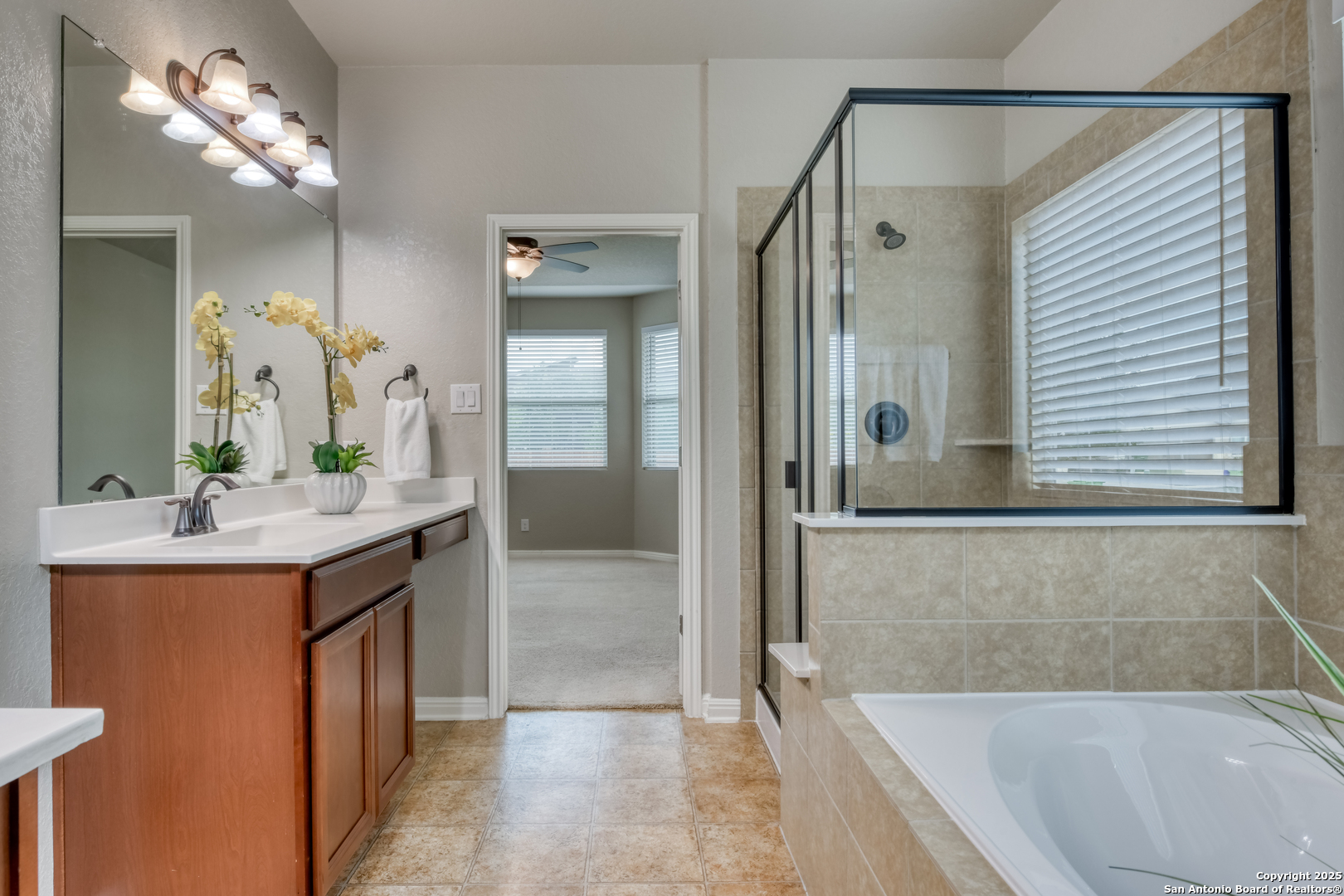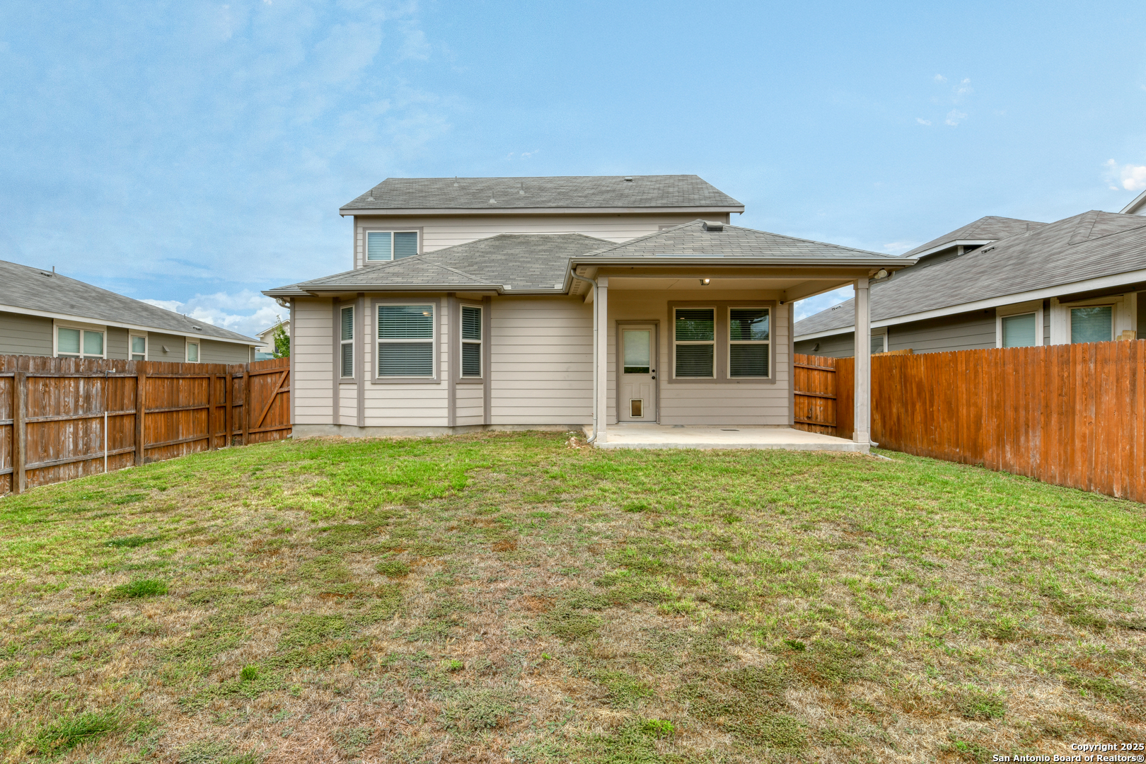 Welcome to this inviting 2-story stucco home that offers both comfort and functionality. Inside, you'll find 4 bedrooms and 2.5 baths, including a spacious primary suite on the main level with a separate shower and tub, dual vanities, and a large walk-in closet. The kitchen provides plenty of cabinet and counter space, flowing easily into the dining area near the entry, while a generously sized utility room adds convenience (dryer conveys). Upstairs, three secondary bedrooms are complemented by a large second living area, ideal for a media or play space. In addition, there's a bright and versatile room with abundant windows that can be used as a study, hobby room, or flexible living space. Step outside to a covered patio perfect for relaxing or entertaining. This home is designed with both everyday living and entertaining in mind, offering ample room for everyone to enjoy.