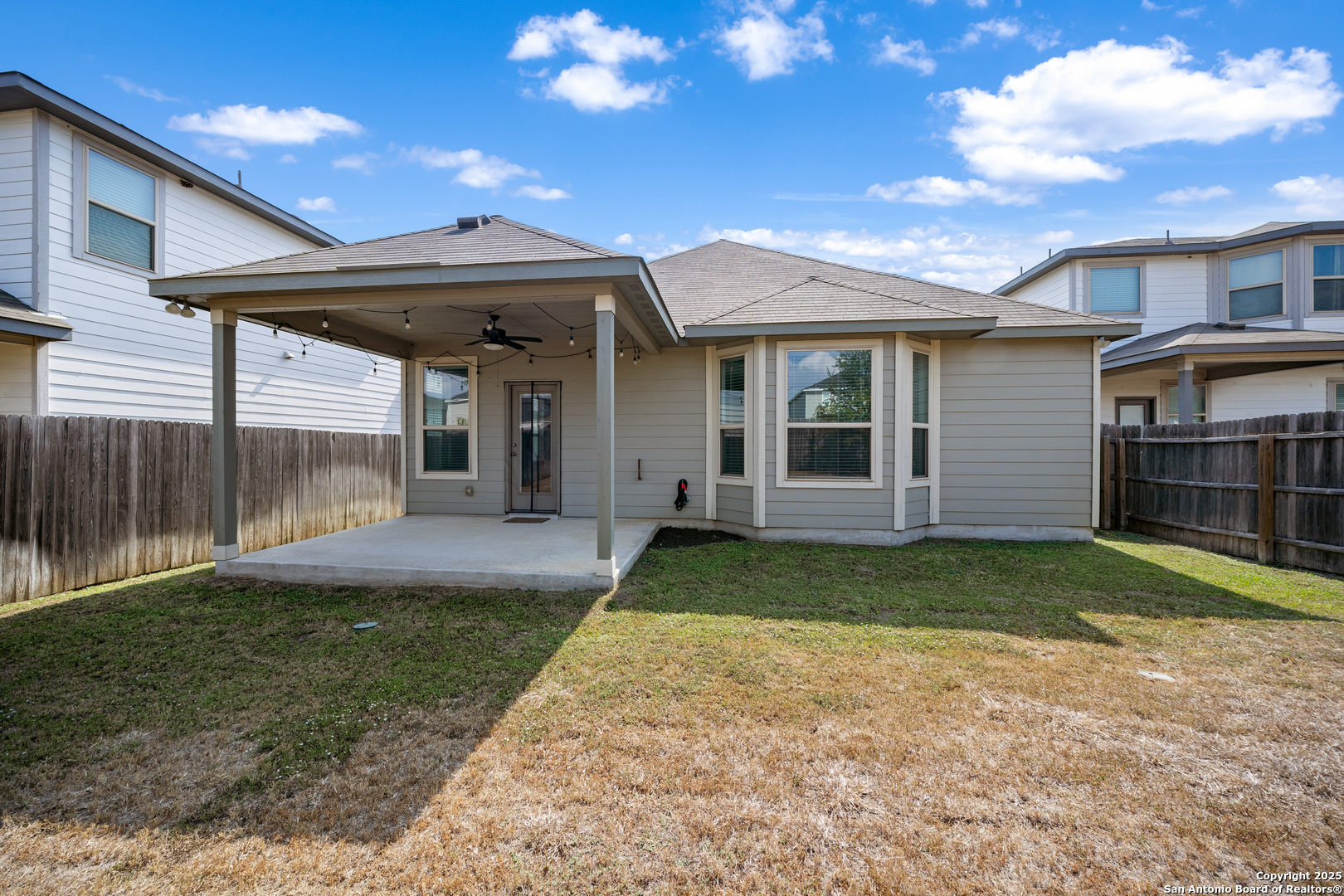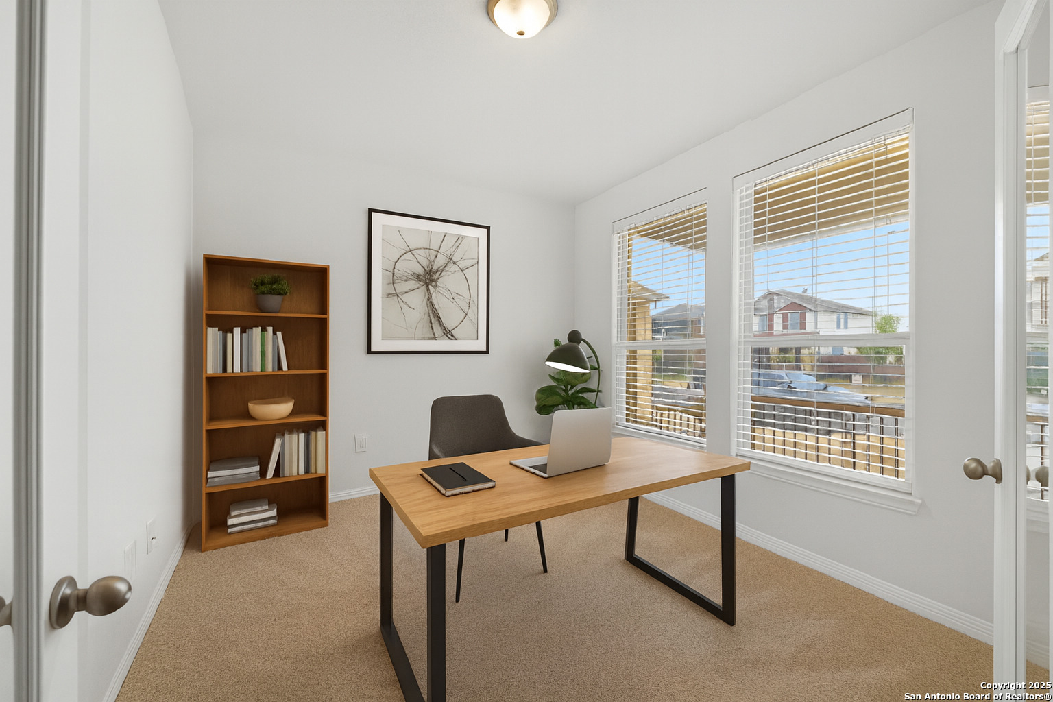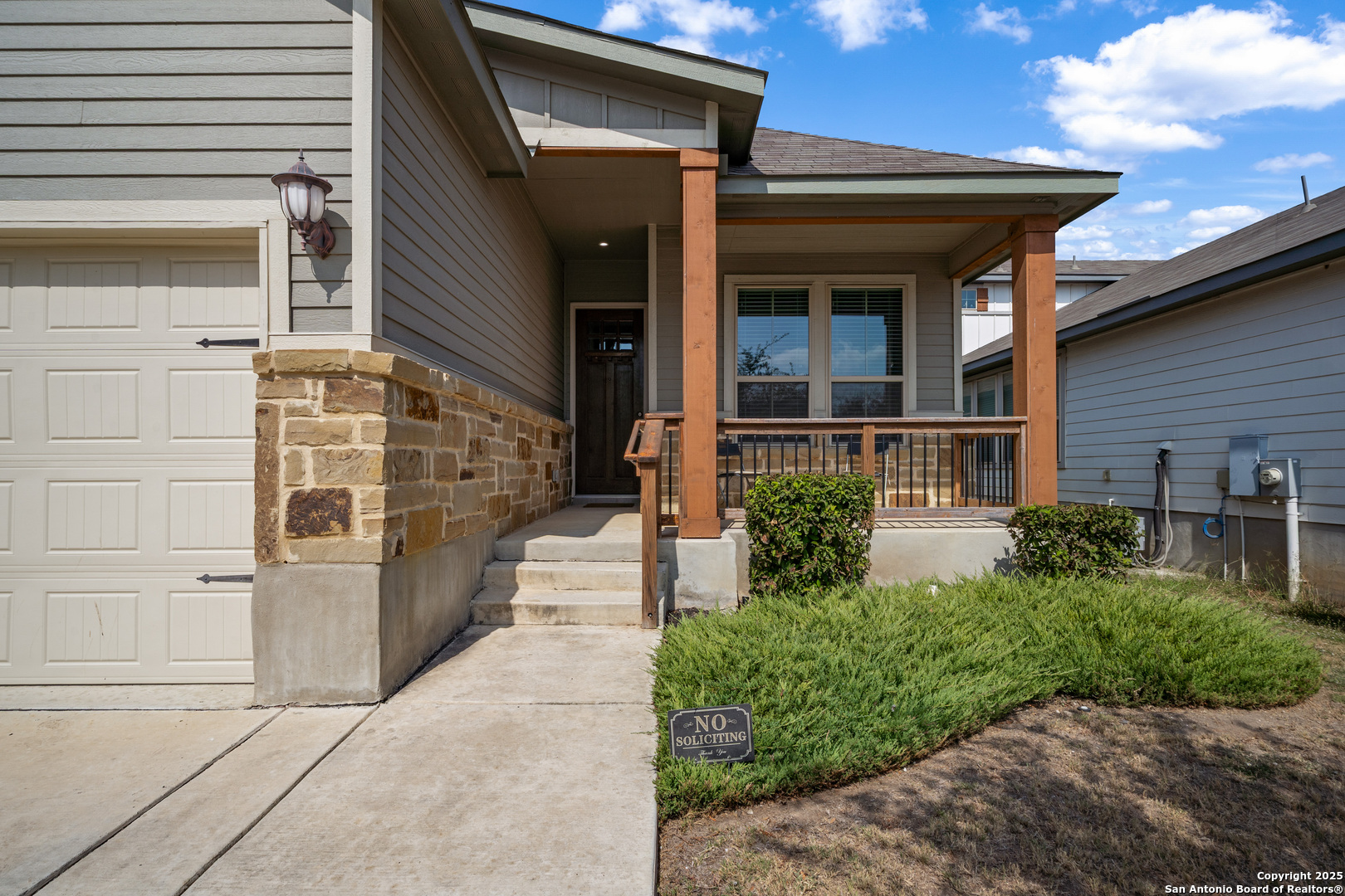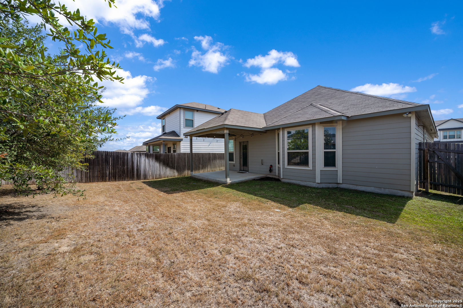 Set on a quiet cul-de-sac in the desirable Harlach Farms community, this beautifully cared-for Meritage home offers a blend of modern comfort and proven efficiency. Freshly painted inside and upgraded with brand-new carpet, the home feels crisp and move-in ready from the moment you walk in. A dedicated front study provides the perfect space for remote work, a library, or creative projects-separate from the main living areas for privacy and focus. The open-concept design connects the living room, dining area, and kitchen for an easy flow that suits both daily living and entertaining. A large island anchors the kitchen, surrounded by plenty of cabinetry, sleek counters, and stainless appliances. Durable wood-scraped flooring adds warmth and contrast to the fresh walls and new carpet. The spacious primary suite includes dual vanities, a walk-in shower, and a generous closet. Two additional bedrooms and a full bath complete the layout, offering flexibility for guests, family, or hobbies. Energy-efficient construction-Meritage's signature low-E windows, spray foam insulation which is helpful in keeping comfort high and costs low. Step outside to a covered patio overlooking a fenced backyard with trees, ideal for outdoor dining or relaxed weekends. The two-car garage adds extra storage, and the cul-de-sac location ensures minimal traffic. Harlach Farms residents enjoy access to a community pool, playground, and maintained common areas, creating a friendly and active neighborhood feel. Conveniently close to Loop 1604 and Highway 90, the location offers easy commutes to Lackland AFB, Citibank, Wells Fargo, and a wide range of shopping and dining options. For qualified buyers, this home includes an assumable VA mortgage-a valuable opportunity to take over existing favorable loan terms, subject to lender and VA approval. In addition, the seller is offering an attractive concession toward closing costs and/or an interest rate buydown when using NextMortgage! Why buy new? This home shines just as bright, shows like new inside, and is priced better-with the upgrades, efficiency, and community amenities already in place. Move-in ready, beautifully maintained, and full of smart value, 11631 Troubadour delivers the best of southwest San Antonio living.