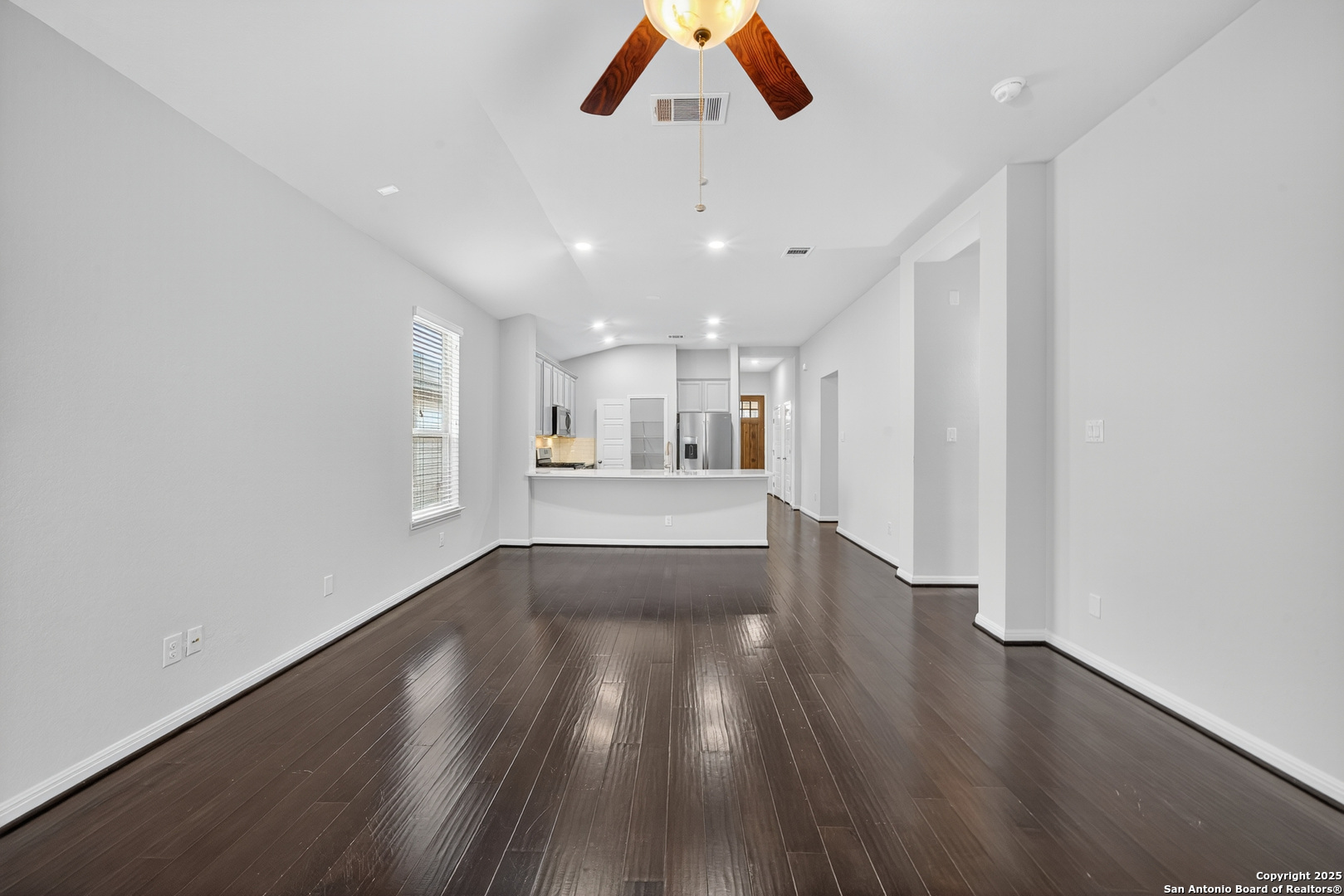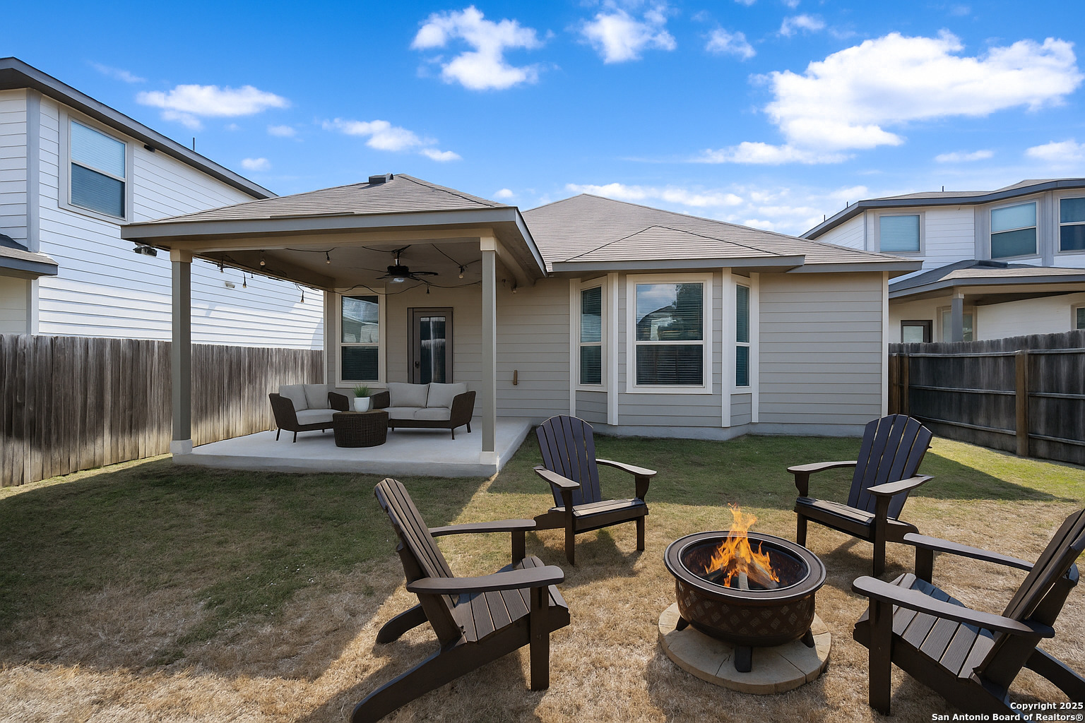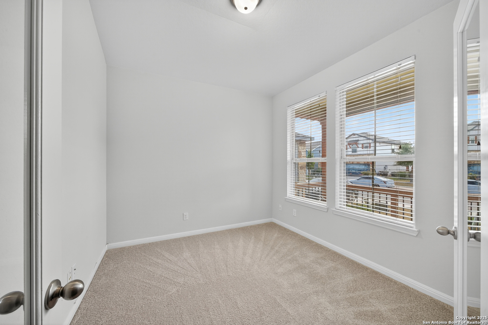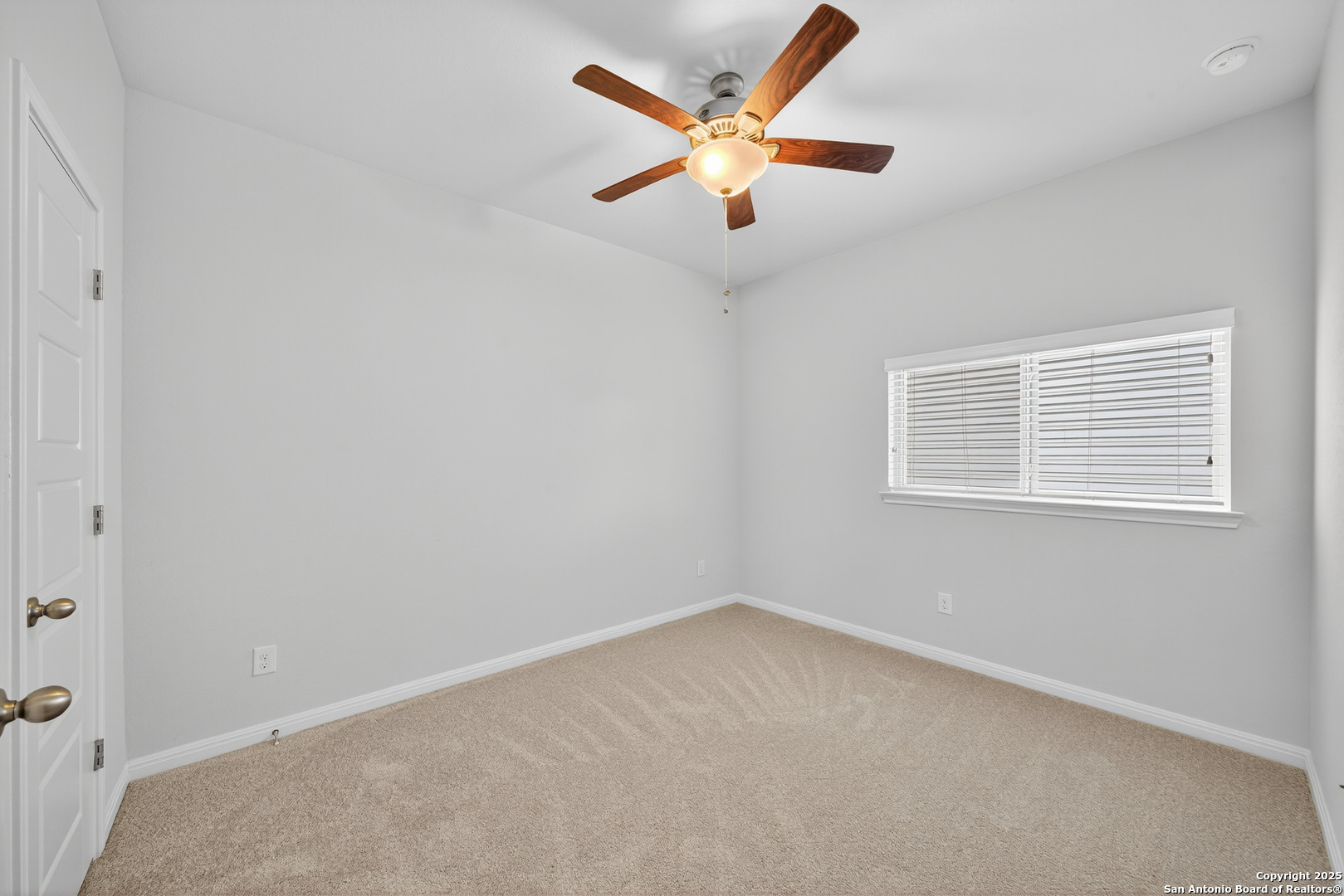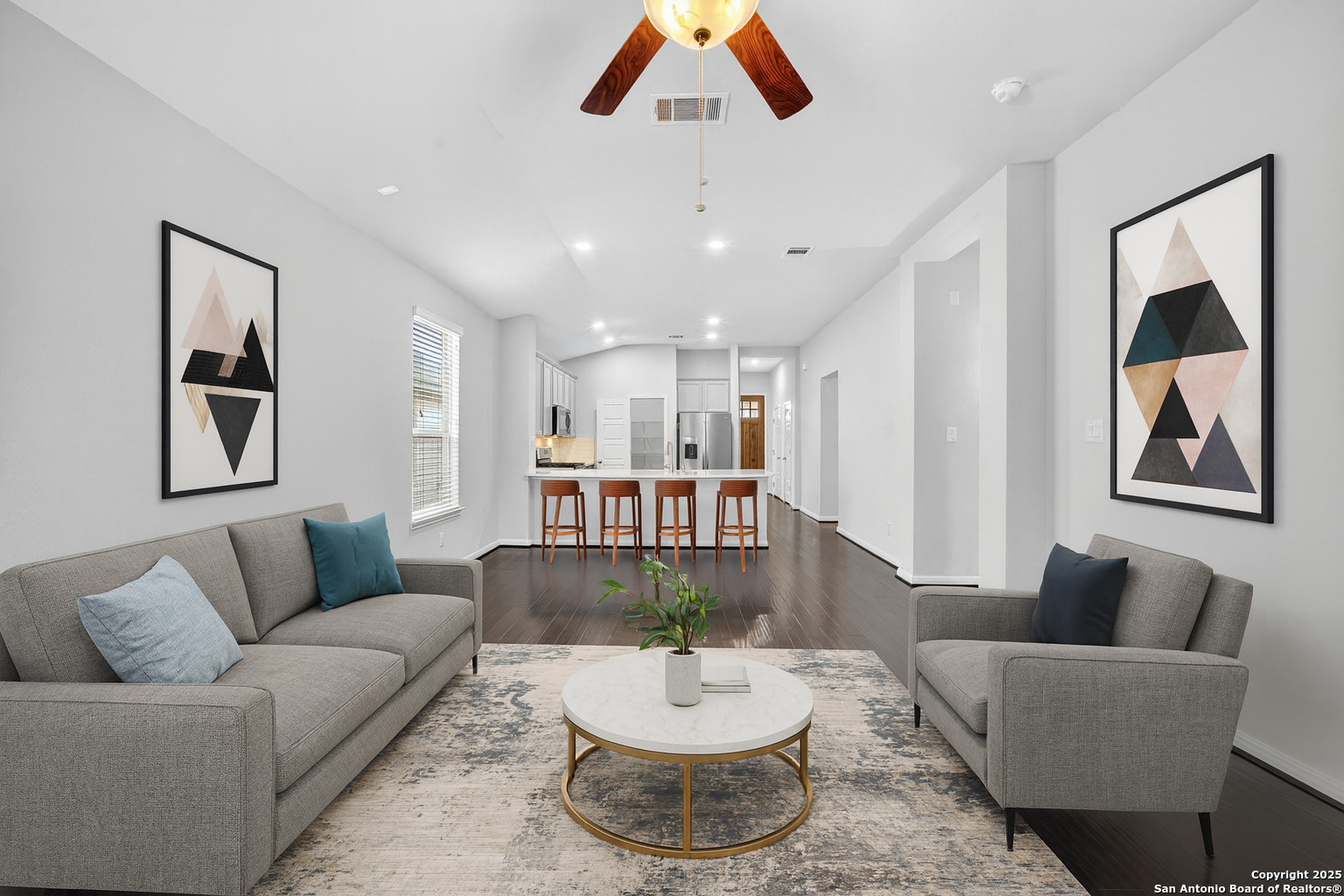 Set on a quiet cul-de-sac in the desirable Harlach Farms community, this beautifully cared-for Meritage home offers a blend of modern comfort and proven efficiency. Freshly painted inside and upgraded with brand-new carpet, the home feels crisp and move-in ready from the moment you walk in. A dedicated front study provides the perfect space for remote work, a library, or creative projects-separate from the main living areas for privacy and focus. The open-concept design connects the living room, dining area, and kitchen for an easy flow that suits both daily living and entertaining. A large island anchors the kitchen, surrounded by plenty of cabinetry, sleek counters, and stainless appliances. Durable wood-scraped flooring adds warmth and contrast to the fresh walls and new carpet. The spacious primary suite includes dual vanities, a walk-in shower, and a generous closet. Two additional bedrooms and a full bath complete the layout, offering flexibility for guests, family, or hobbies. Energy-efficient construction-Meritage's signature low-E windows, spray foam insulation which is helpful in keeping comfort high and costs low. Step outside to a covered patio overlooking a fenced backyard with trees, ideal for outdoor dining or relaxed weekends. The two-car garage adds extra storage, and the cul-de-sac location ensures minimal traffic. Harlach Farms residents enjoy access to a community pool, playground, and maintained common areas, creating a friendly and active neighborhood feel. Conveniently close to Loop 1604 and Highway 90, the location offers easy commutes to Lackland AFB, Citibank, Wells Fargo, and a wide range of shopping and dining options. For qualified buyers, this home includes an assumable VA mortgage-a valuable opportunity to take over existing favorable loan terms, subject to lender and VA approval. In addition, the seller is offering an attractive concession toward closing costs and/or an interest rate buydown when using NextMortgage! Why buy new? This home shines just as bright, shows like new inside, and is priced better-with the upgrades, efficiency, and community amenities already in place. Move-in ready, beautifully maintained, and full of smart value, 11631 Troubadour delivers the best of southwest San Antonio living.