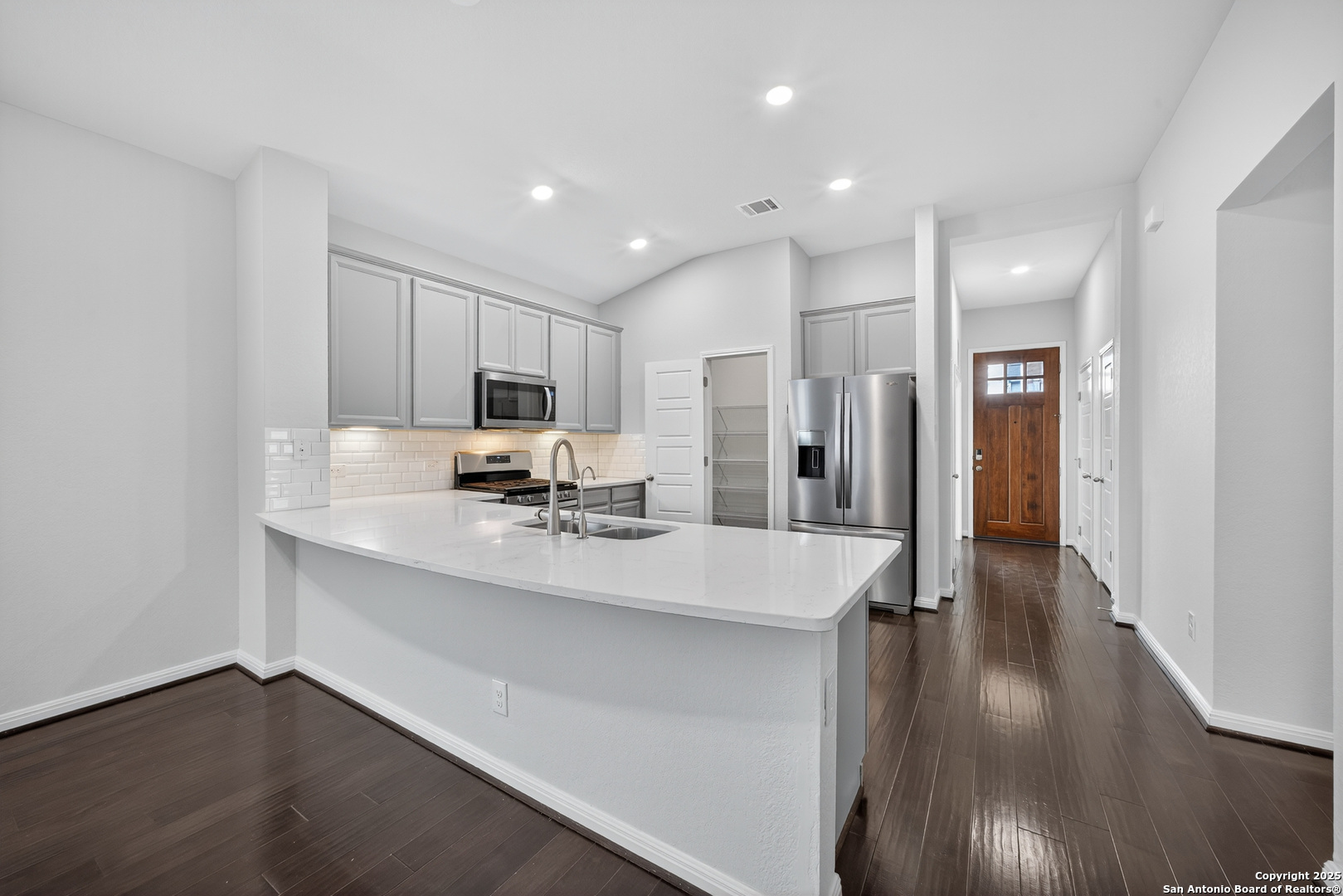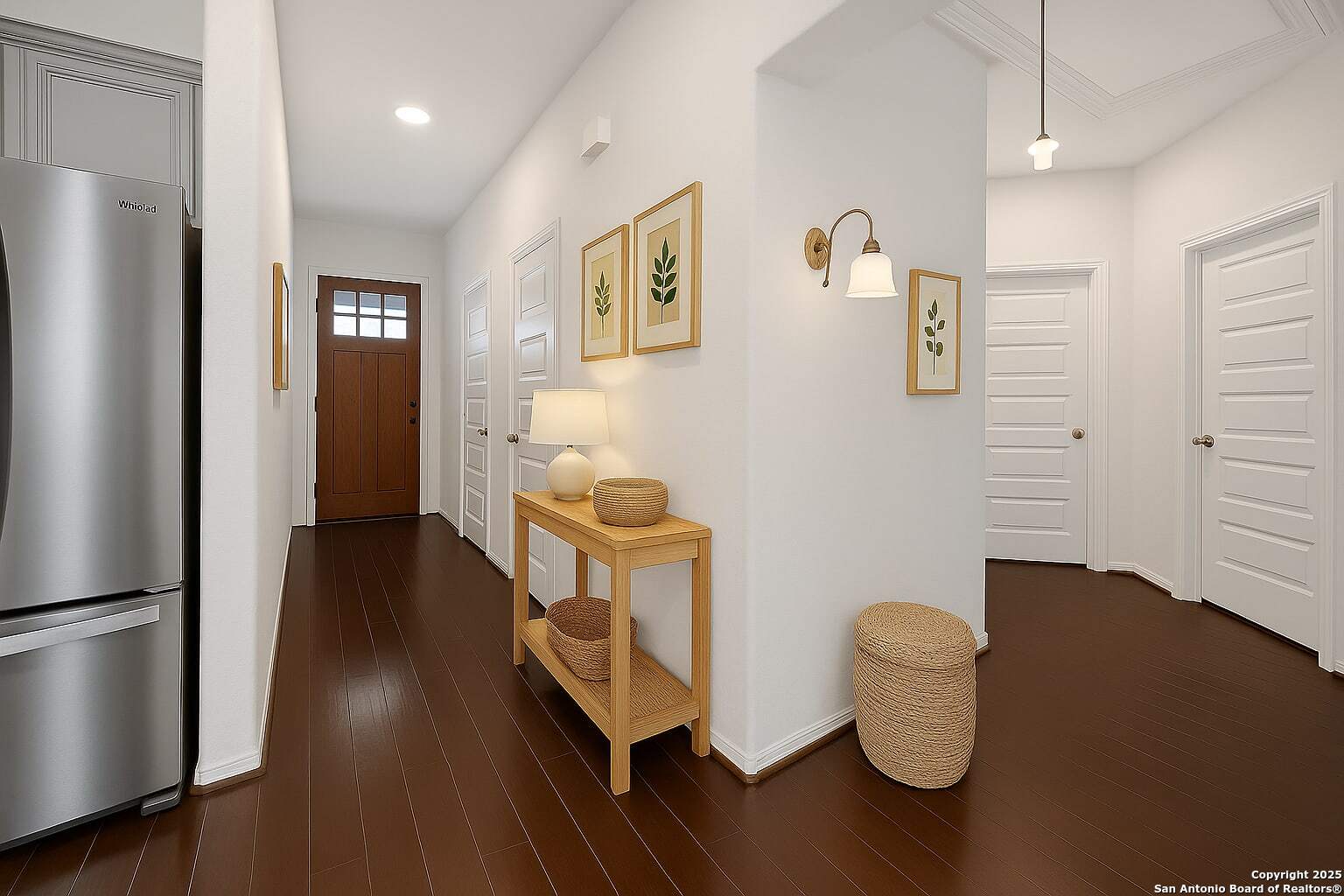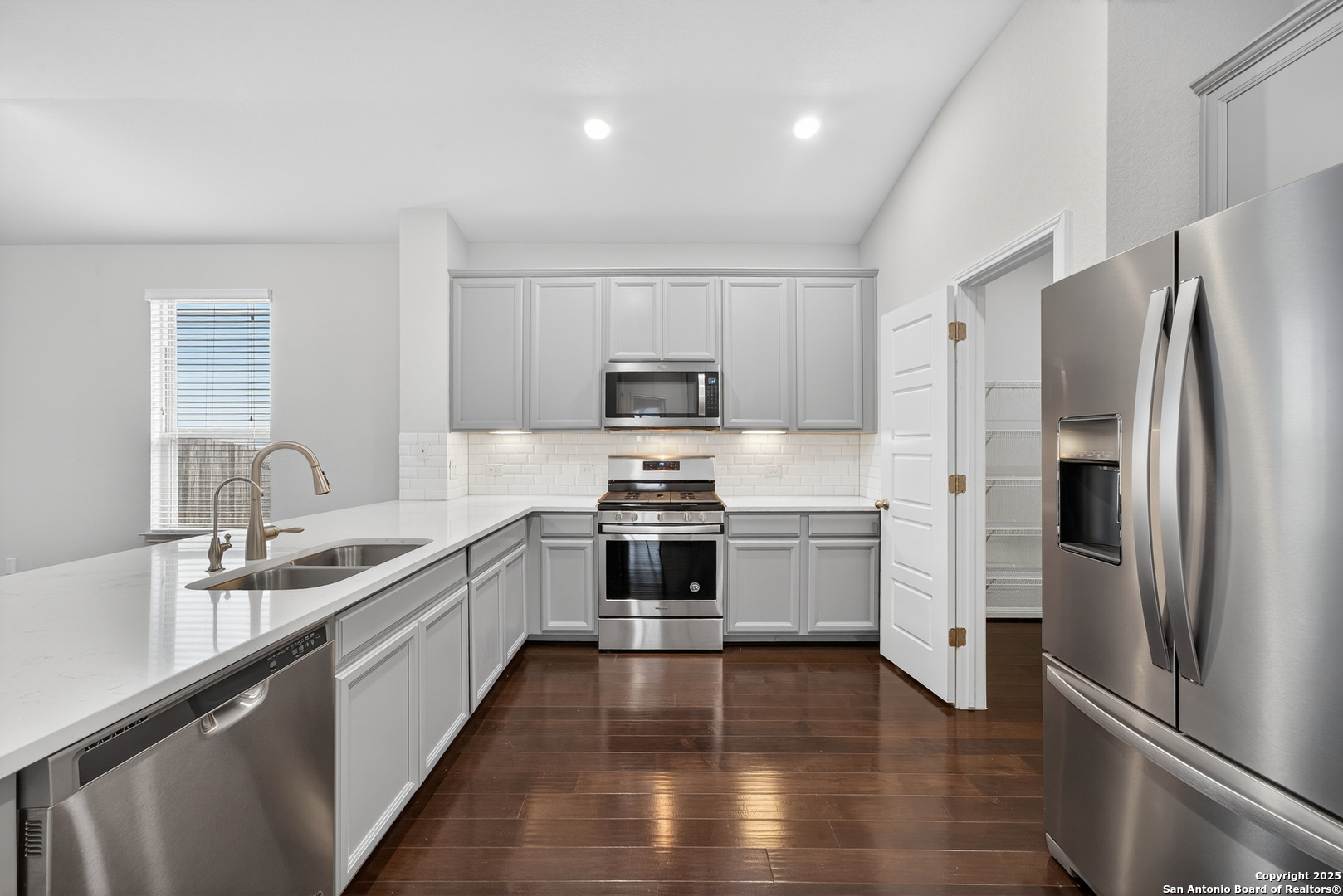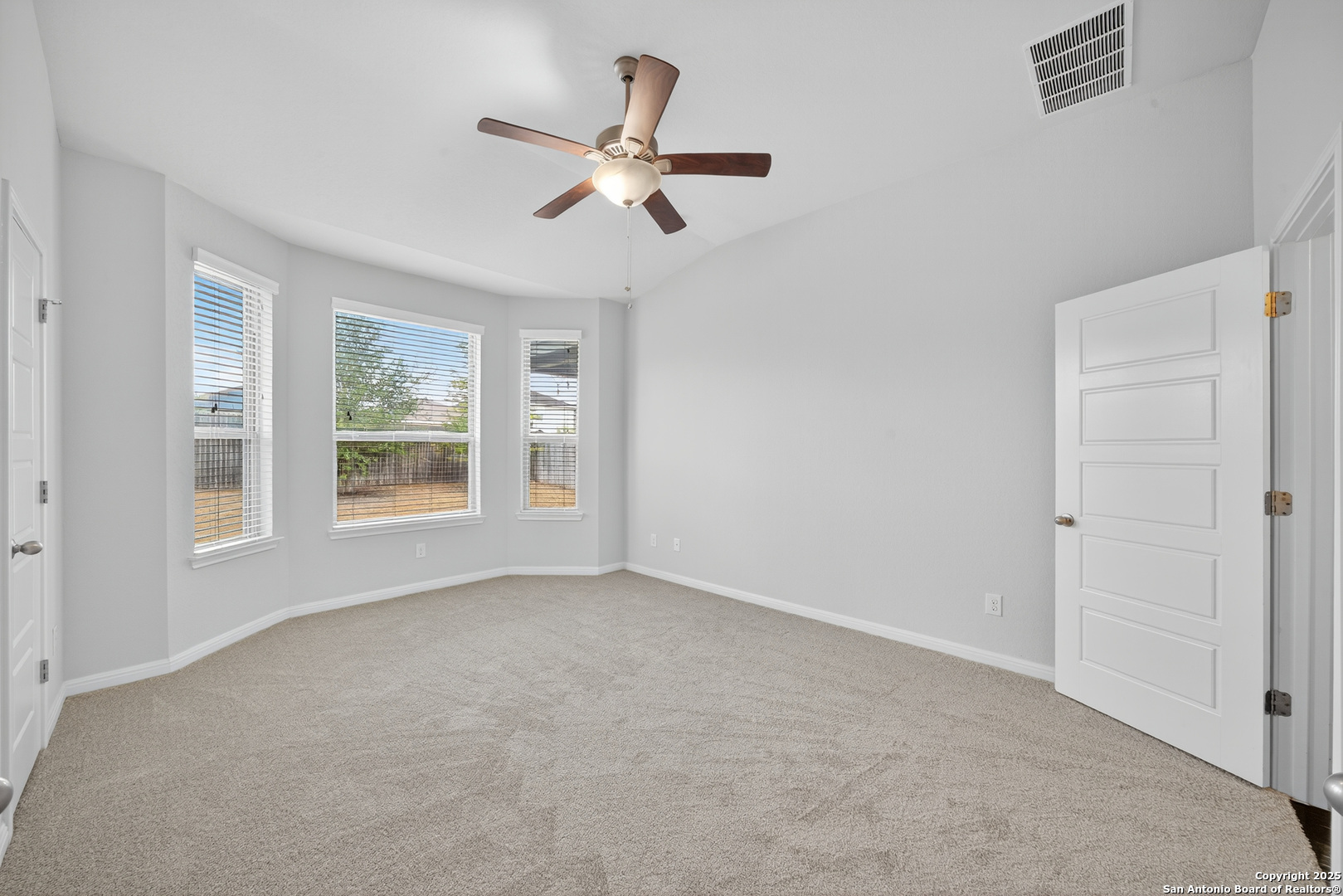 Set on a quiet cul-de-sac in the desirable Harlach Farms community, this beautifully cared-for Meritage home offers a blend of modern comfort and proven efficiency. Freshly painted inside and upgraded with brand-new carpet, the home feels crisp and move-in ready from the moment you walk in. A dedicated front study provides the perfect space for remote work, a library, or creative projects-separate from the main living areas for privacy and focus. The open-concept design connects the living room, dining area, and kitchen for an easy flow that suits both daily living and entertaining. A large island anchors the kitchen, surrounded by plenty of cabinetry, sleek counters, and stainless appliances. Durable wood-scraped flooring adds warmth and contrast to the fresh walls and new carpet. The spacious primary suite includes dual vanities, a walk-in shower, and a generous closet. Two additional bedrooms and a full bath complete the layout, offering flexibility for guests, family, or hobbies. Energy-efficient construction-Meritage's signature low-E windows, spray foam insulation which is helpful in keeping comfort high and costs low. Step outside to a covered patio overlooking a fenced backyard with trees, ideal for outdoor dining or relaxed weekends. The two-car garage adds extra storage, and the cul-de-sac location ensures minimal traffic. Harlach Farms residents enjoy access to a community pool, playground, and maintained common areas, creating a friendly and active neighborhood feel. Conveniently close to Loop 1604 and Highway 90, the location offers easy commutes to Lackland AFB, Citibank, Wells Fargo, and a wide range of shopping and dining options. For qualified buyers, this home includes an assumable VA mortgage-a valuable opportunity to take over existing favorable loan terms, subject to lender and VA approval. In addition, the seller is offering an attractive concession toward closing costs and/or an interest rate buydown when using NextMortgage! Why buy new? This home shines just as bright, shows like new inside, and is priced better-with the upgrades, efficiency, and community amenities already in place. Move-in ready, beautifully maintained, and full of smart value, 11631 Troubadour delivers the best of southwest San Antonio living.