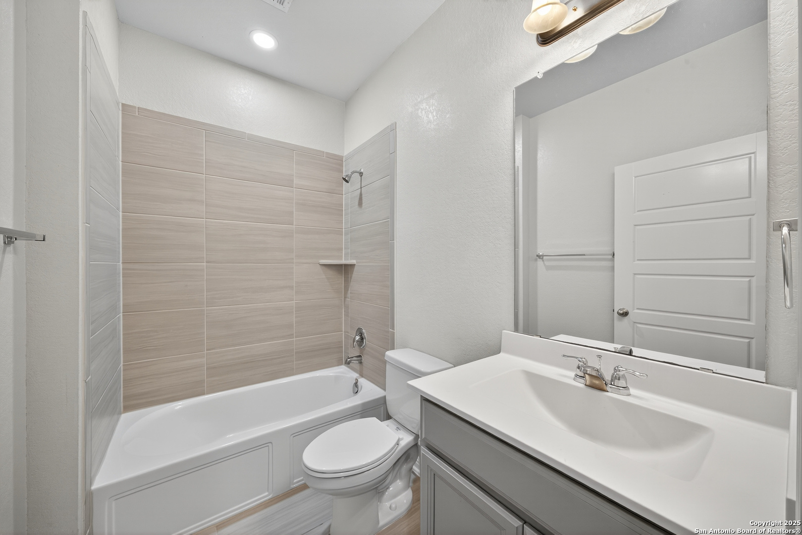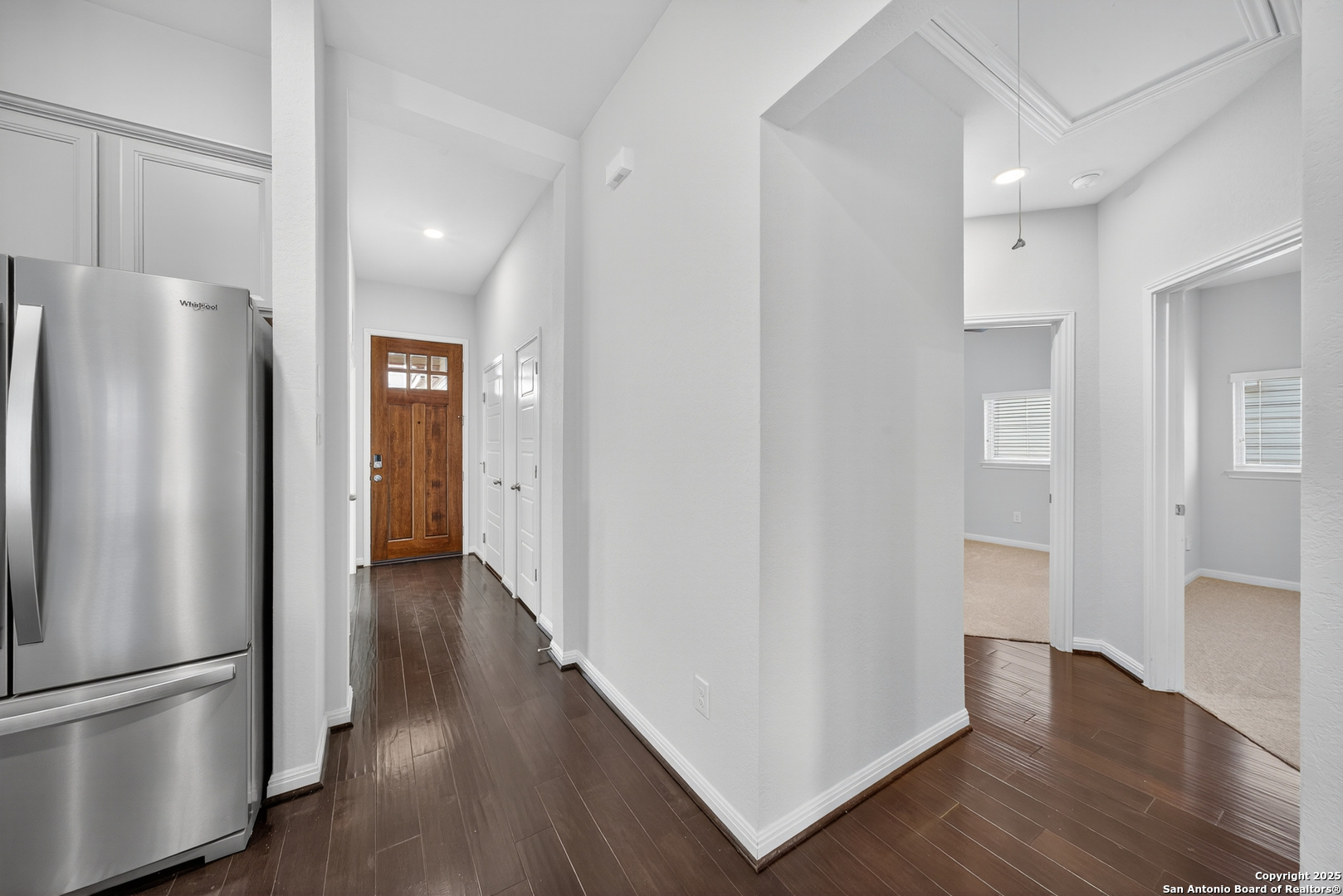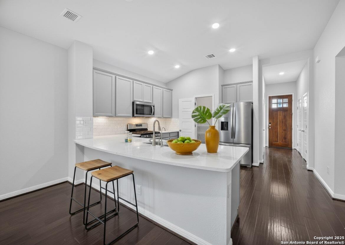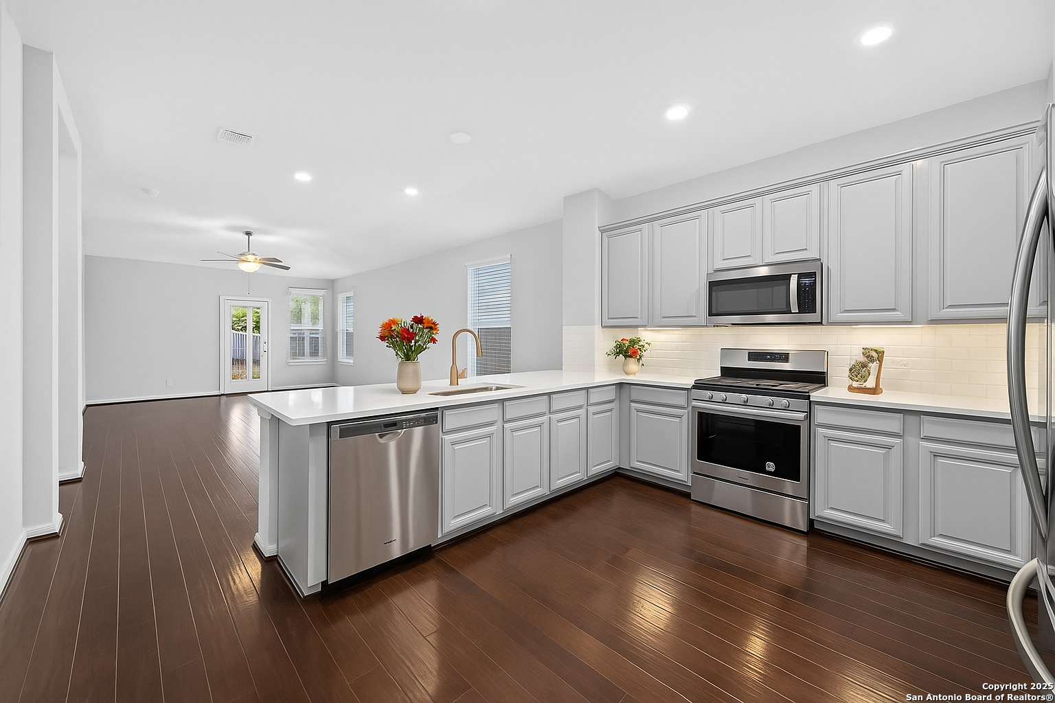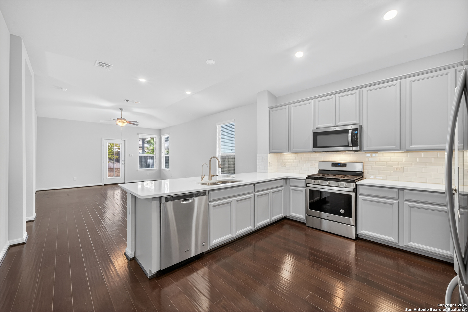 Set on a quiet cul-de-sac in the desirable Harlach Farms community, this beautifully cared-for Meritage home offers a blend of modern comfort and proven efficiency. Freshly painted inside and upgraded with brand-new carpet, the home feels crisp and move-in ready from the moment you walk in. A dedicated front study provides the perfect space for remote work, a library, or creative projects-separate from the main living areas for privacy and focus. The open-concept design connects the living room, dining area, and kitchen for an easy flow that suits both daily living and entertaining. A large island anchors the kitchen, surrounded by plenty of cabinetry, sleek counters, and stainless appliances. Durable wood-scraped flooring adds warmth and contrast to the fresh walls and new carpet. The spacious primary suite includes dual vanities, a walk-in shower, and a generous closet. Two additional bedrooms and a full bath complete the layout, offering flexibility for guests, family, or hobbies. Energy-efficient construction-Meritage's signature low-E windows, spray foam insulation which is helpful in keeping comfort high and costs low. Step outside to a covered patio overlooking a fenced backyard with trees, ideal for outdoor dining or relaxed weekends. The two-car garage adds extra storage, and the cul-de-sac location ensures minimal traffic. Harlach Farms residents enjoy access to a community pool, playground, and maintained common areas, creating a friendly and active neighborhood feel. Conveniently close to Loop 1604 and Highway 90, the location offers easy commutes to Lackland AFB, Citibank, Wells Fargo, and a wide range of shopping and dining options. For qualified buyers, this home includes an assumable VA mortgage-a valuable opportunity to take over existing favorable loan terms, subject to lender and VA approval. In addition, the seller is offering an attractive concession toward closing costs and/or an interest rate buydown when using NextMortgage! Why buy new? This home shines just as bright, shows like new inside, and is priced better-with the upgrades, efficiency, and community amenities already in place. Move-in ready, beautifully maintained, and full of smart value, 11631 Troubadour delivers the best of southwest San Antonio living.