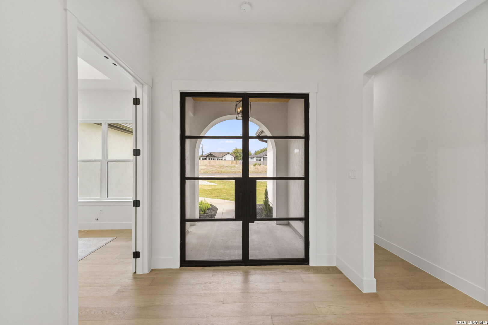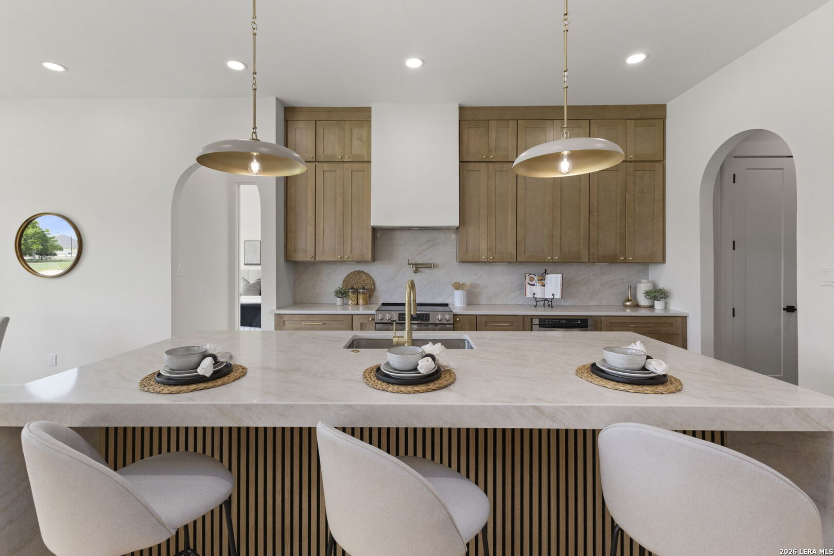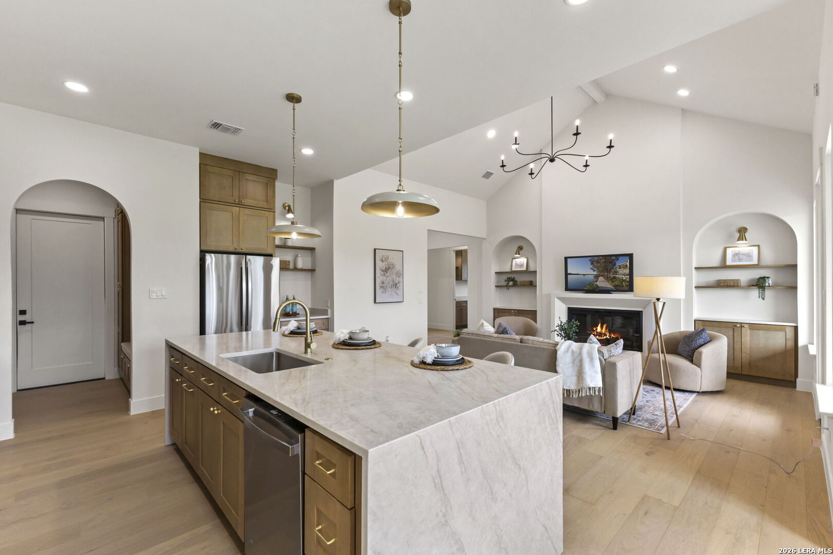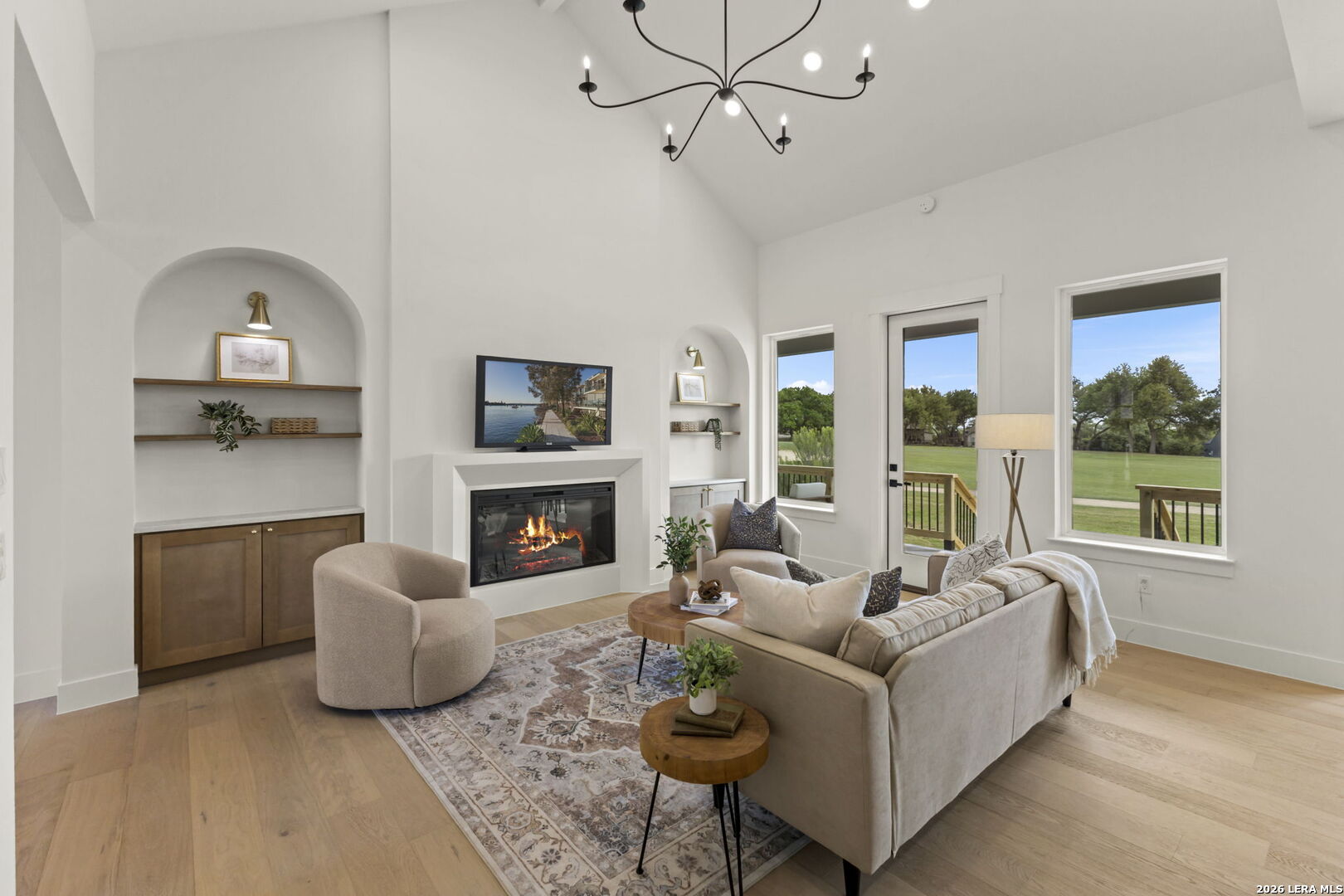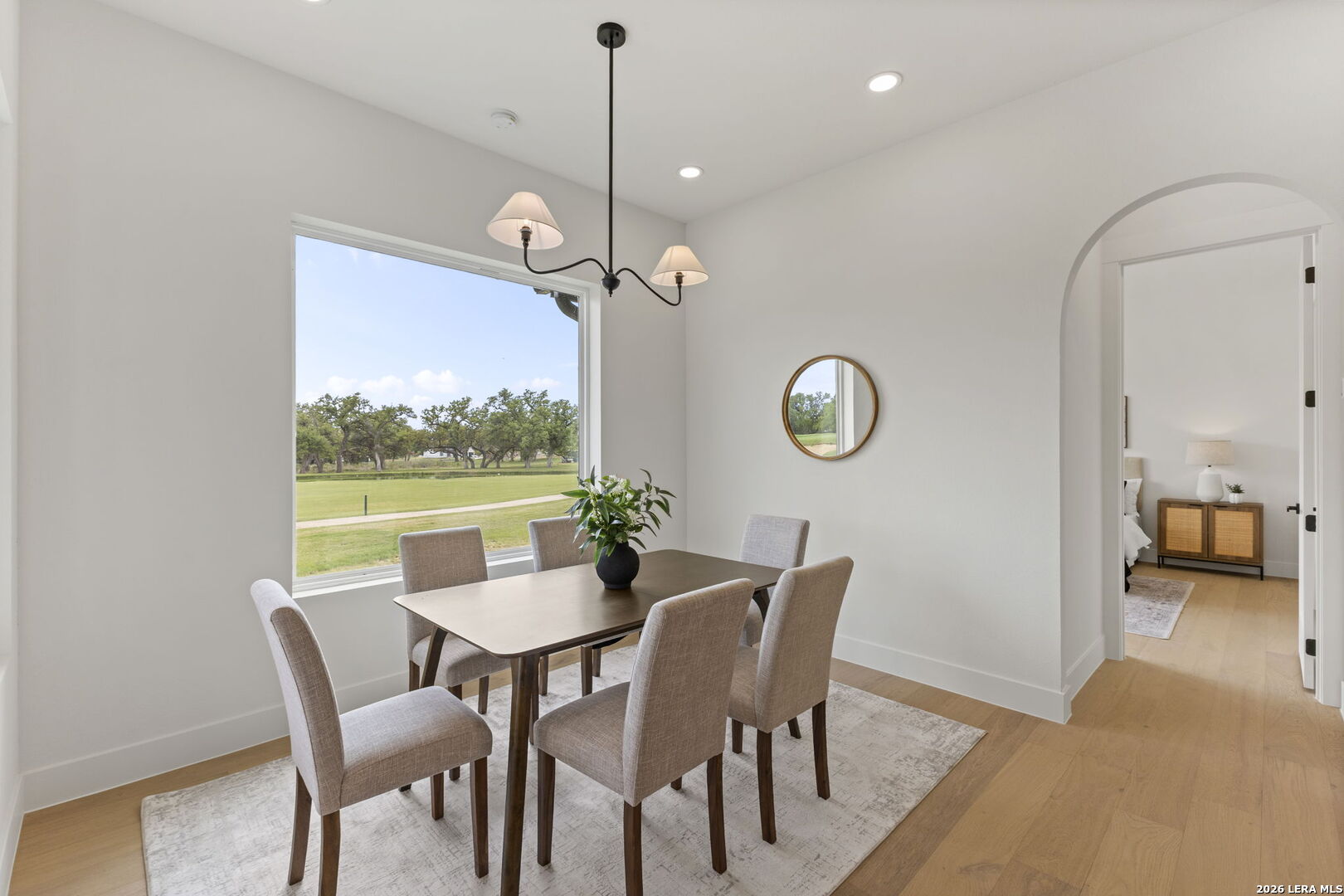 Welcome home to this beautifully crafted single-story custom residence located in the desirable Rockin' J Ranch community, offering scenic golf course views and elevated design throughout. Spanning approximately 2,224 square feet, this thoughtfully designed floor plan features 3 bedrooms, 3 full bathrooms, a half bath, and a dedicated office-perfectly blending comfort, functionality, and modern Hill Country style. The office, positioned near the front of the home, provides a quiet and productive workspace. At the heart of the home, the open-concept living area showcases soaring vaulted ceilings, creating a bright and inviting space ideal for both everyday living and entertaining. Large windows frame picturesque golf course views, seamlessly connecting indoor and outdoor living. The kitchen is a true centerpiece, featuring custom cabinetry, stylish finishes, and ample workspace designed for both cooking and gathering. The primary suite offers a private retreat with vaulted ceilings, a spa-like bathroom complete with a walk-in shower, separate garden tub, and a spacious layout designed for relaxation. Additional highlights include engineered hardwood flooring, upscale lighting fixtures, designer tile selections, and custom carpentry details throughout the home. Every finish has been carefully selected to deliver both quality and style. Step outside to the back patio and take in the peaceful golf course views-perfect for relaxing evenings or hosting guests. The exterior showcases a timeless blend of brick and stucco, enhancing both curb appeal and durability. The oversized garage offers added versatility, including a separate side-entry bay ideal for a golf cart or additional storage. Located within the highly sought-after Rockin' J Ranch community, residents enjoy access to premier amenities including golf, walking trails, and a vibrant neighborhood atmosphere-all just a short drive from Blanco and within reach of the greater Hill Country area. A rare opportunity to own a custom-built home with golf course views in one of the area's most desirable communities-this property is truly a must-see.