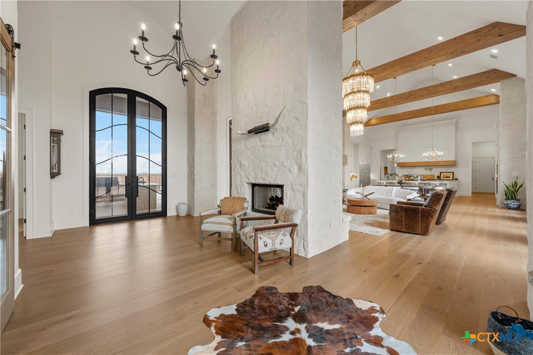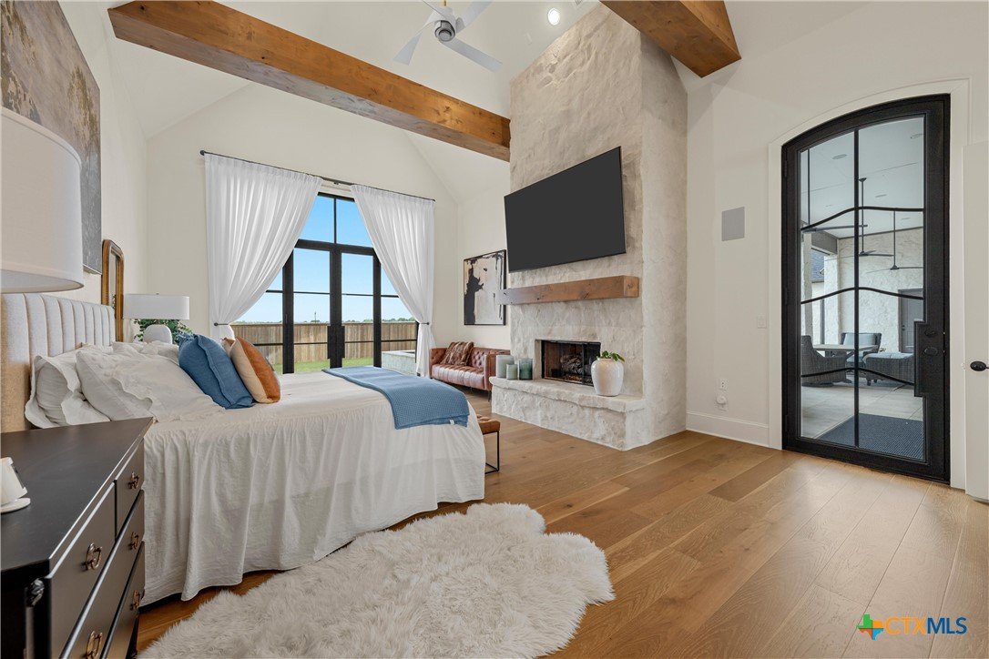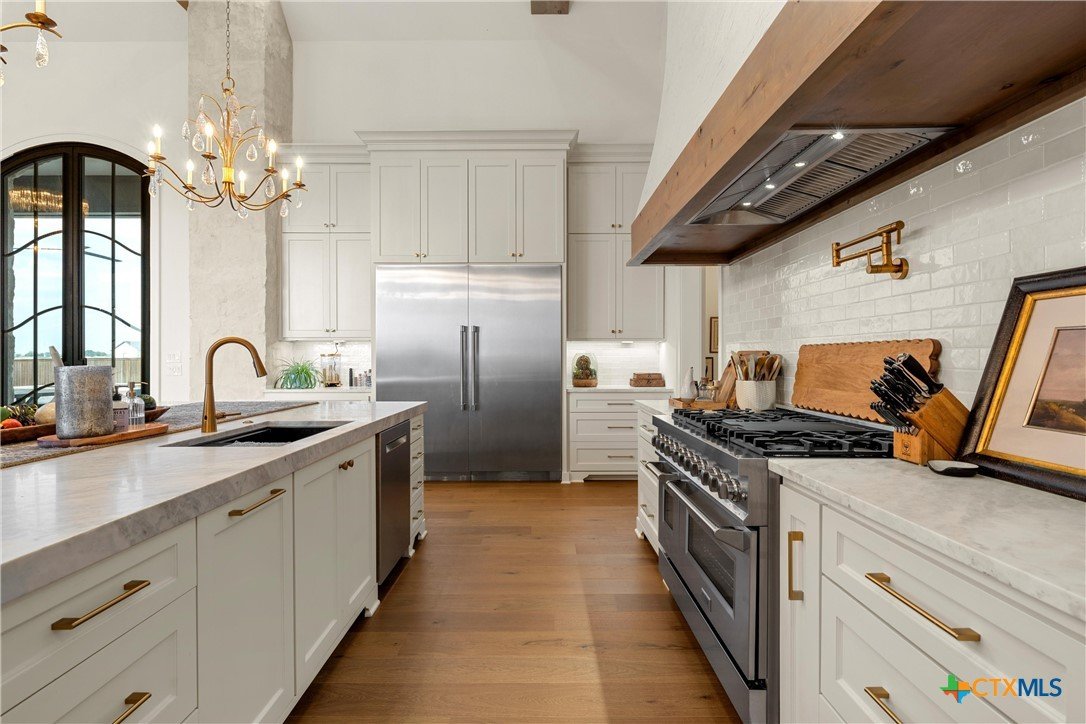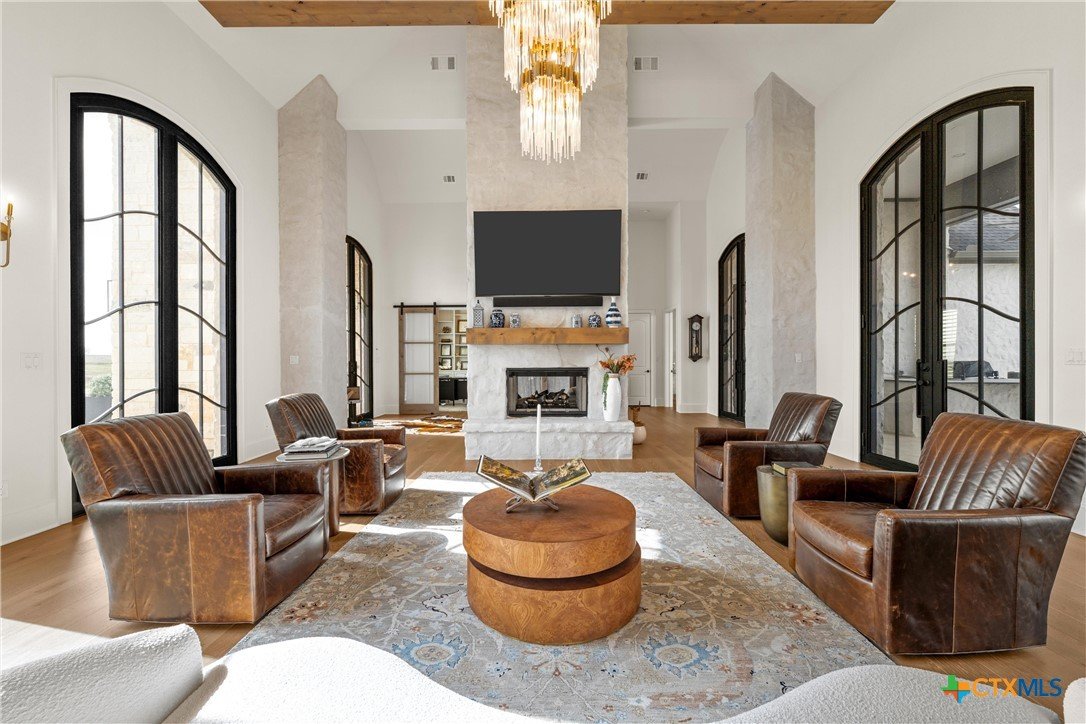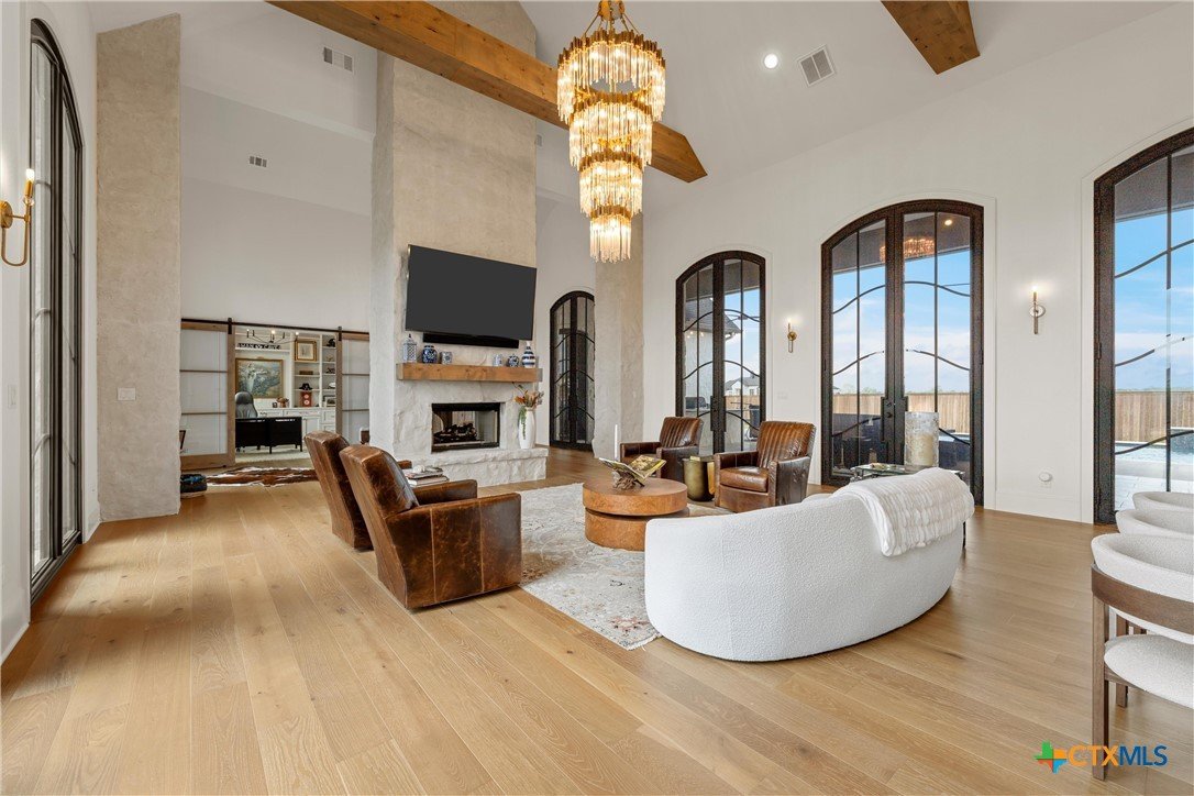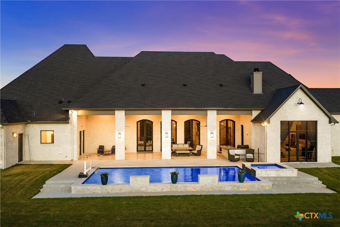 Experience unparalleled elegance and sophistication in this stunning Global Luxury residence nestled in Lorena ISD. With 4 spacious bdrms, 4.5 luxurious baths, and an expansive 3-car garage, this home offers a seamless blend of comfort and opulence. One bedroom has efficiency kitchen and can double as a mother-in-law suite or gameroom. The interior boasts a striking barrel ceiling, highlighting the home's architectural flair. The double-sided fireplace provides a perfect blend of warmth and style, creating an ideal ambiance for lavish gatherings or quiet evenings. A separate study offers a serene space for productivity or reflection. 12' tinted windows & doors create such drama and bring in the perfect amount of light. The exquisite kitchen features 30in Thermador Refrigerator and Freezer, ZLine Gas Range with double oven, pot filler, convection microwave, and separate wall oven. The large island is where everyone gathers! There is a separate walk through pantry with additional fridge and sink. The 2nd laundry room is spacious with lots of storage. The primary suite is a sanctuary of its own, featuring a cozy fireplace and double doors that open onto a private path leading to the hot tub and pool. The primary bathroom features 2 expansive walk-in closets, with one offering washer dryer connections. Indulge in the spa-like atmosphere of the garden tub and the walk-in shower equipped with dual showerheads. Dual vanities enhance the sense of luxury, offering plenty of space for everyday routines. The exterior is equally impressive, with stone and German schmear siding exuding timeless appeal. A thoughtfully designed lighted pathway leads you to the grand main entrance. The outdoor space is an entertainer’s delight, featuring a covered patio that seamlessly transitions to a built in outdoor grilling area, hot tub, and sparkling pool, perfect for alfresco dining and entertaining under the Texas stars.