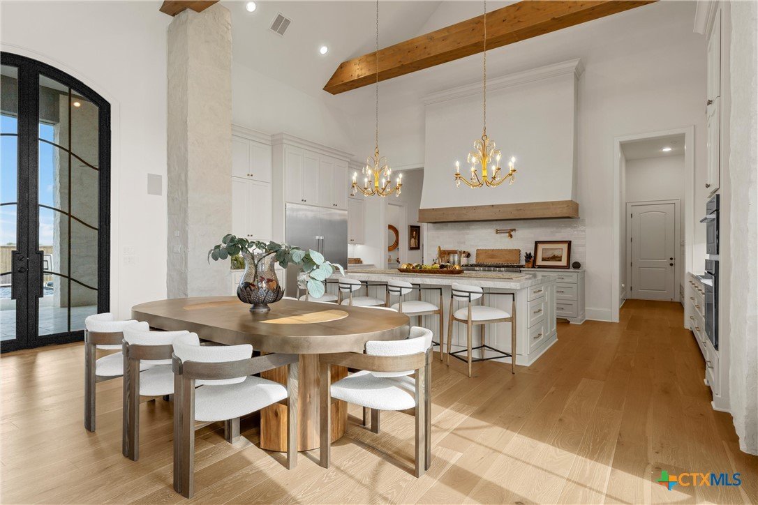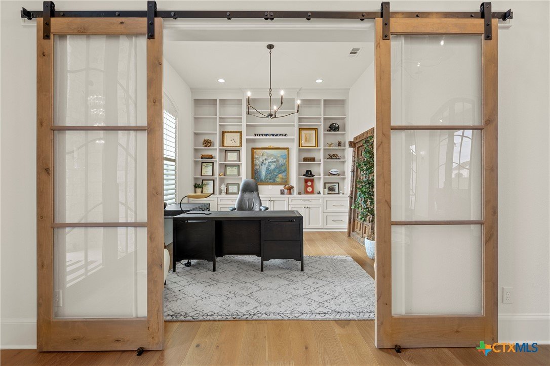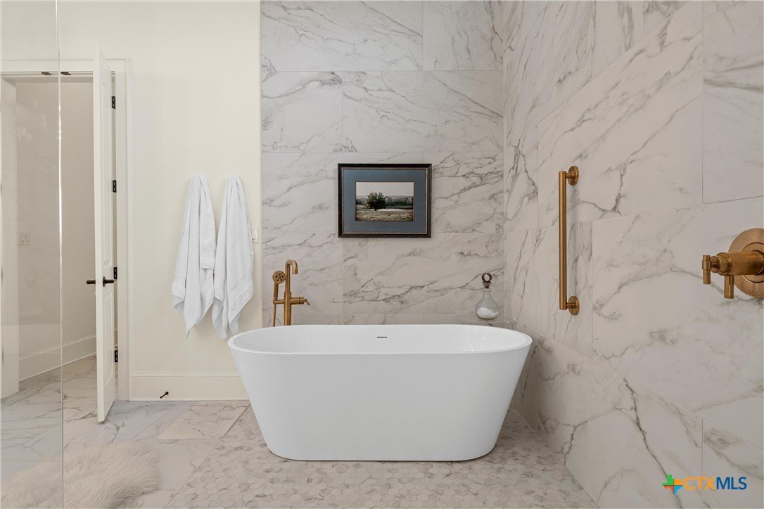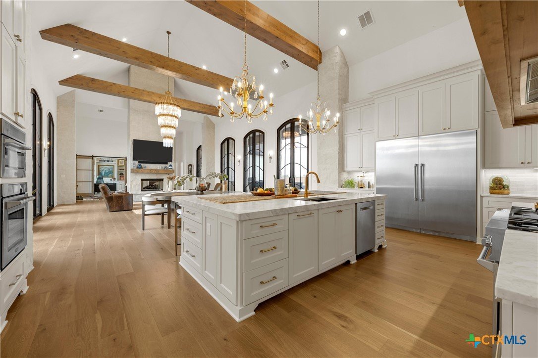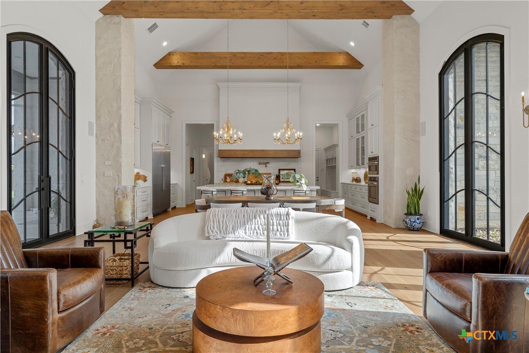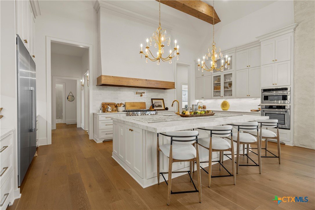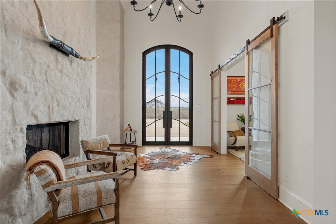 Experience unparalleled elegance and sophistication in this stunning Global Luxury residence nestled in Lorena ISD. With 4 spacious bdrms, 4.5 luxurious baths, and an expansive 3-car garage, this home offers a seamless blend of comfort and opulence. One bedroom has efficiency kitchen and can double as a mother-in-law suite or gameroom. The interior boasts a striking barrel ceiling, highlighting the home's architectural flair. The double-sided fireplace provides a perfect blend of warmth and style, creating an ideal ambiance for lavish gatherings or quiet evenings. A separate study offers a serene space for productivity or reflection. 12' tinted windows & doors create such drama and bring in the perfect amount of light. The exquisite kitchen features 30in Thermador Refrigerator and Freezer, ZLine Gas Range with double oven, pot filler, convection microwave, and separate wall oven. The large island is where everyone gathers! There is a separate walk through pantry with additional fridge and sink. The 2nd laundry room is spacious with lots of storage. The primary suite is a sanctuary of its own, featuring a cozy fireplace and double doors that open onto a private path leading to the hot tub and pool. The primary bathroom features 2 expansive walk-in closets, with one offering washer dryer connections. Indulge in the spa-like atmosphere of the garden tub and the walk-in shower equipped with dual showerheads. Dual vanities enhance the sense of luxury, offering plenty of space for everyday routines. The exterior is equally impressive, with stone and German schmear siding exuding timeless appeal. A thoughtfully designed lighted pathway leads you to the grand main entrance. The outdoor space is an entertainer’s delight, featuring a covered patio that seamlessly transitions to a built in outdoor grilling area, hot tub, and sparkling pool, perfect for alfresco dining and entertaining under the Texas stars.