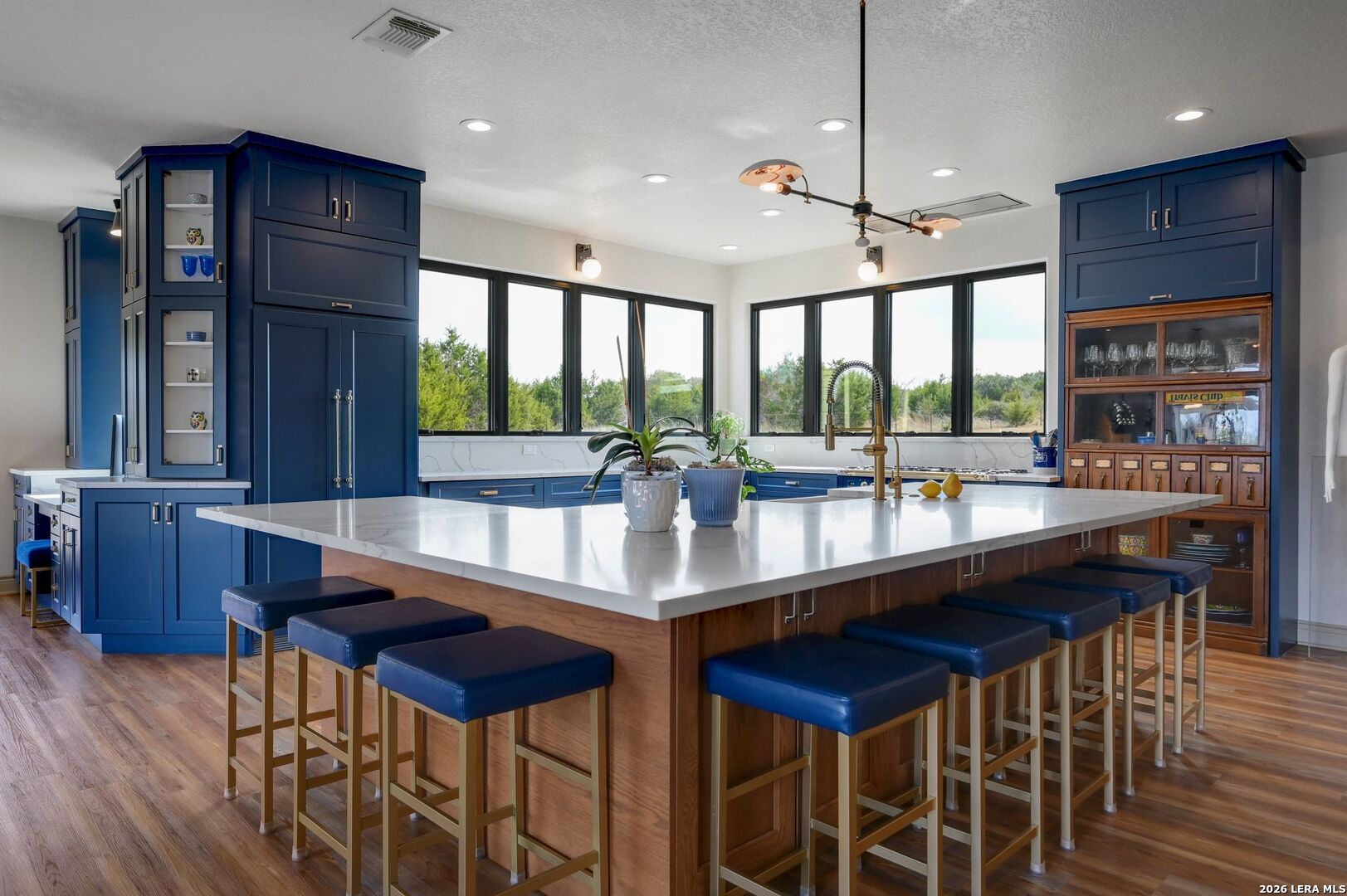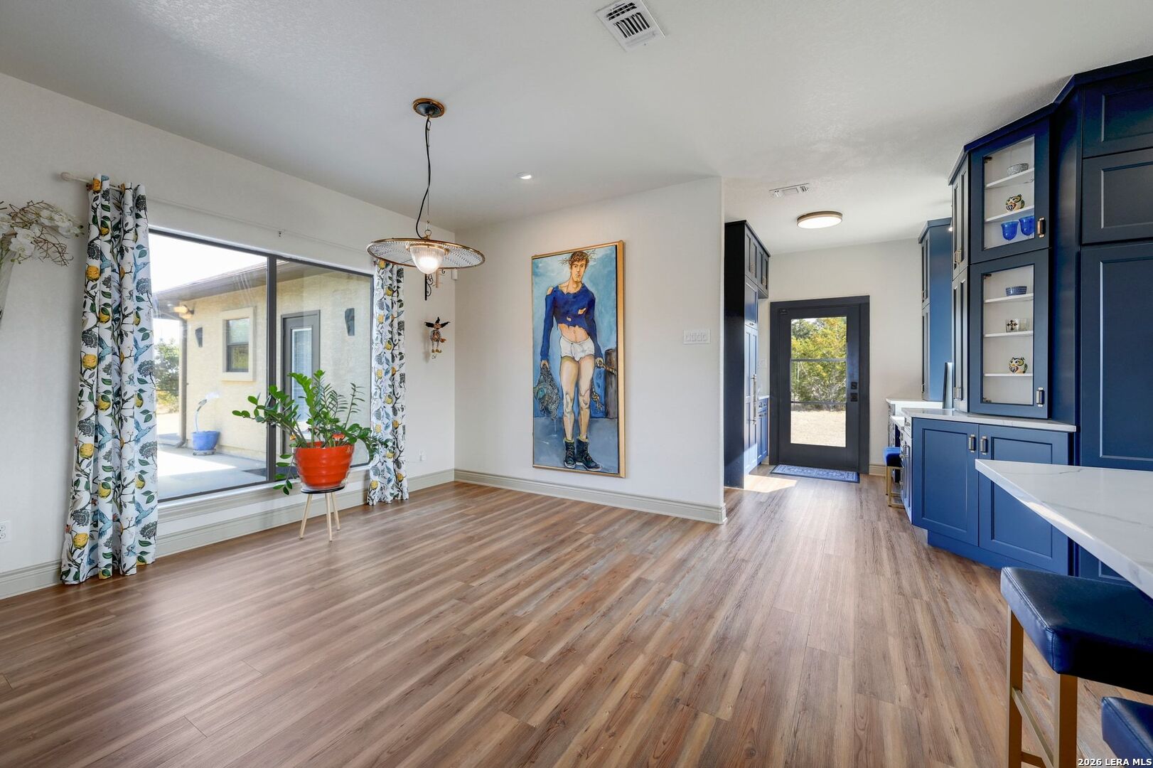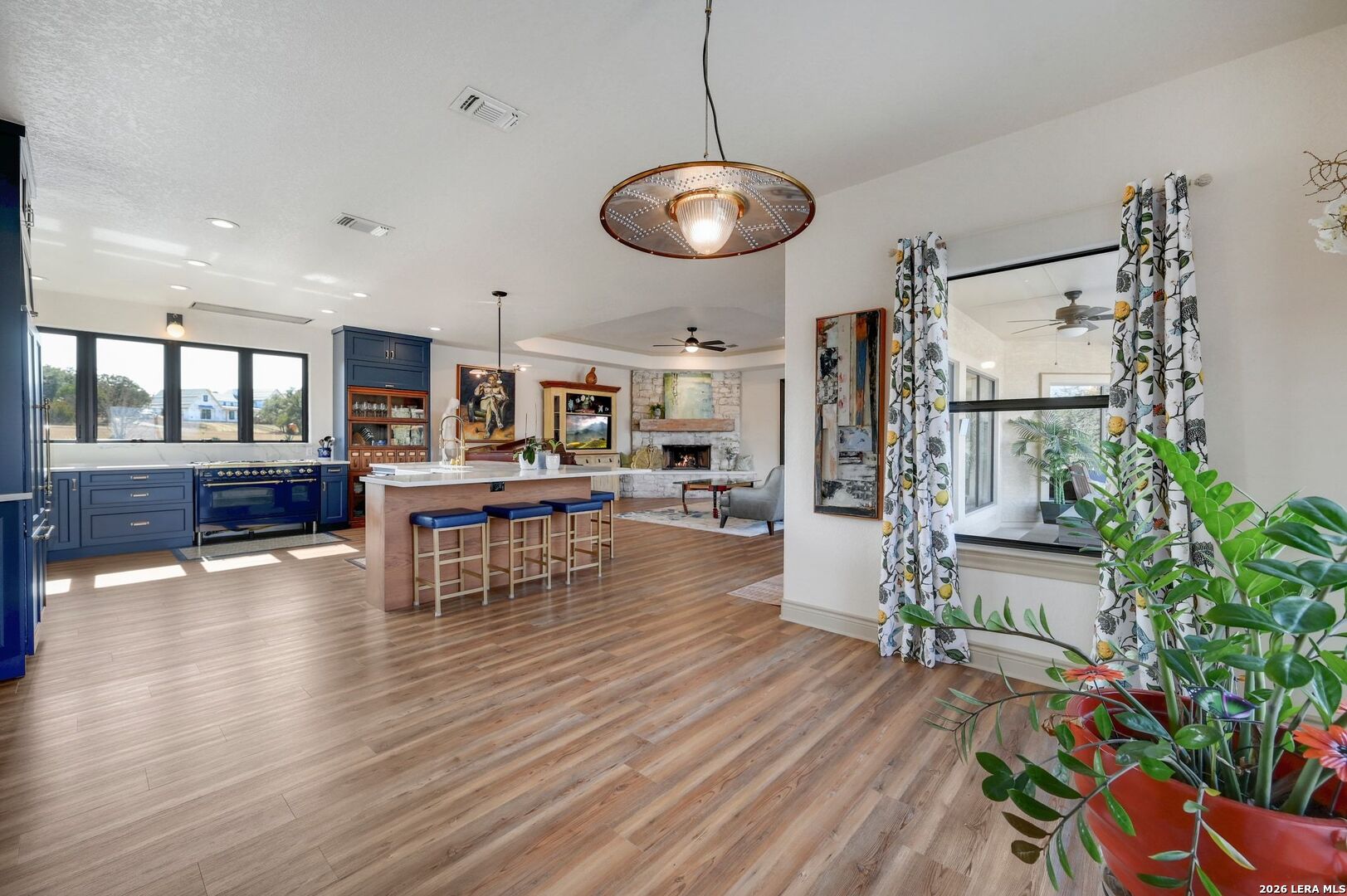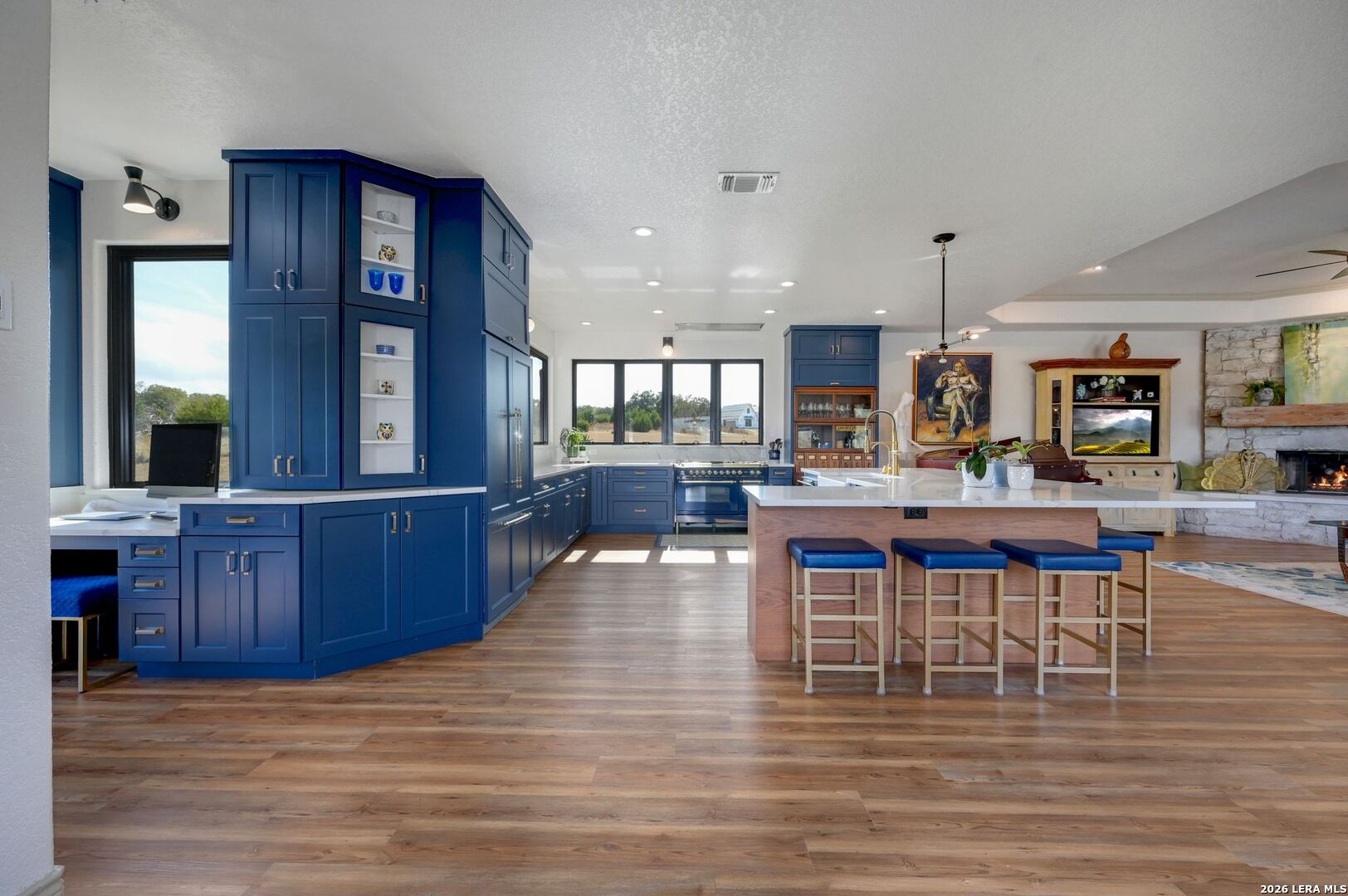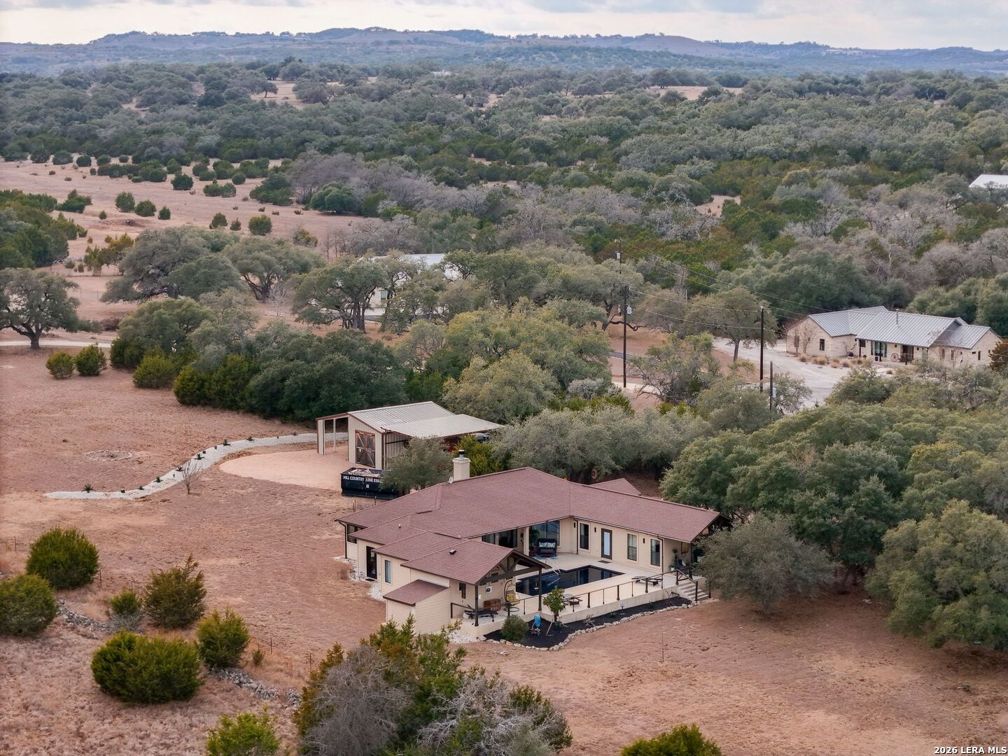 Hill Country Living At It's Finest On 4 Private Acres Nestled Away In Desirable Cielo Springs with Beautiful Hill Country Views and Unmatched Tranquility! This Stunning 3 Bedroom 2 Bath Home with 2 Car Garage, Art Studio and Extra Carport with Freshwater Gunite Pool Offers a Split Floor Plan Tucked Away On a Quiet Cul-De-Sac With Private Entrance! With A Light-Filled Interior Showcasing Designer Finishes Including a White Washed Fireplace and Custom Build Mantle, Gallery-Style Art Lighting and Expansive Thermal Casement Crank Open Kitchen Windows That Flood The Home With Natural Light! The Custom Kitchen Anchored With A Massive Island and Seating for Eight with Extra Storage, Pull Out Shelving, Soft Close Drawers, ILVE 8 Burner Blue Enamel Stove with Rotisserie & Overtop Grill, Built in Bosch Dishwasher, Built-In Fisher and Paykel Refrigerator, Apron Front Fire Clay 32x18 Kitchen Sink, Antique Built-In Cabinet and Spice Rack Along With A Dedicated Office and Coffee Bar/Pantry Area Just Off the Kitchen! The Primary Suite includes a Fully Renovated Bathroom with Upgraded Fixtures and Finishes, Custom Cabinetry, and Built-In Vanity and Large Walk-In Closet, Guest Room with Custom Built-Ins and Ample Storage. Enter the Home To A Custom Art Niche with Wooden Arch Salvaged from a Bank During the 1900 Galveston Hurricane. Step Outside To Enjoy Serene Hill Country Views From the Freshwater Backyard Pool Surrounded By Mature Oak Trees. The Art Studio/Workshop Awaits Your Creative Vision and Adds Exceptional Character Featuring Imported Antique French Doors, French Plaster Details Sputnik Lighting, and Connection to a RainWater System. The Property Backs Up to a Large Acreage Pasture, Offering Exceptional Privacy and Peaceful Surroundings in one of Blanco's Most Sought After Neighborhoods just 5 minutes from the Glistening Blanco River and 30 minutes from Fredericksburg's Wine Country.