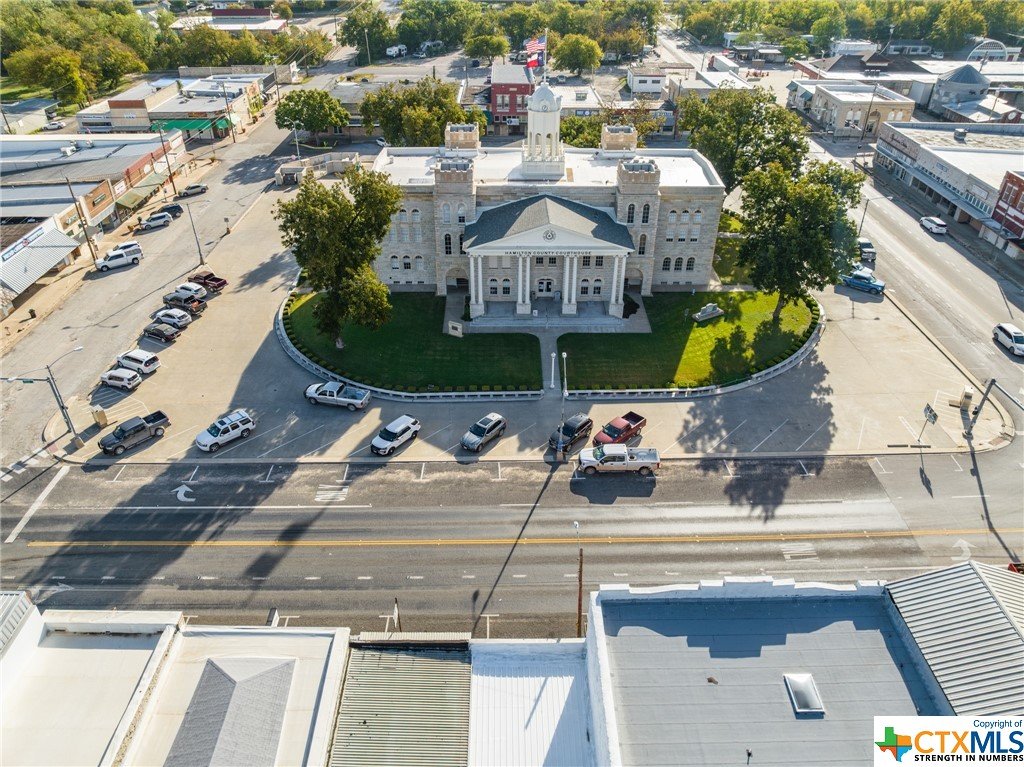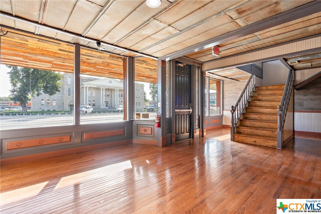 Beautiful business space located in Hamilton, TX on the historic square. This commercial building was originally established in the 1870’s and still retains the original safe. The first floor boasts large open spaces, a centrally located bar, sizable space for a commercial kitchen or prep area, as well as a restroom. Two gorgeous staircases lead to the second floor, which overlooks the first, where there is additional retail space, storage areas, and beautiful views of the square and courthouse. This space would be the ideal spot for wedding receptions, a retail store, or a restaurant. Parking is available in front of the building.