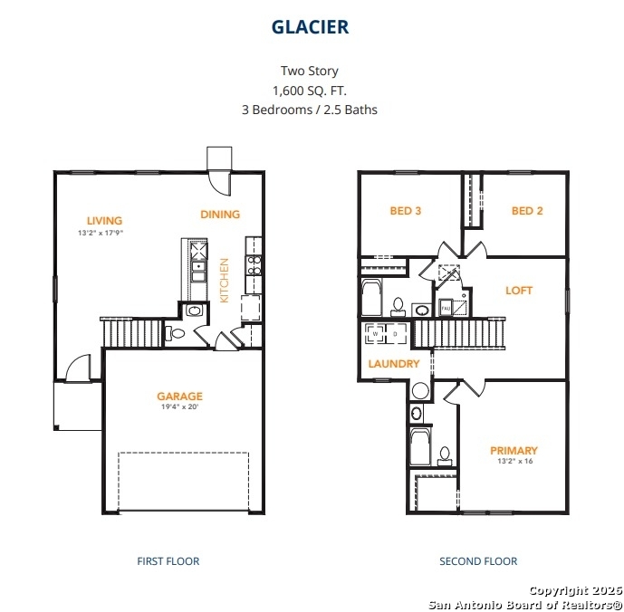 MLS# 1931871 - Built by NHC - May 2026 completion! ~ The Glacier Plan from our Freedom Series is a thoughtfully designed 2-story home offering 3 bedrooms, 2.5 bathrooms, and 1,600 square feet of living space, complete with a 2-car garage. As you step inside, you'll pass the staircase to the upper level before arriving at the bright and open family room. This inviting space flows seamlessly into the kitchen and dining area, creating the perfect setting for family time or entertainment. A convenient half bathroom is located just off the kitchen for easy access. The upper level is designed for relaxation and privacy, featuring a spacious primary suite with a walk-in closet and a private bathroom. Two secondary bedrooms, a full bathroom, and a laundry room complete this level. A large loft provides additional living space, ideal for a playroom, media area, or home office. Known for providing the lowest price and price per square foot, National Homecorp is here to help you get more home for your money! .
