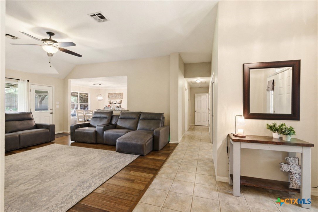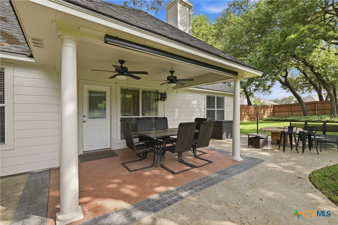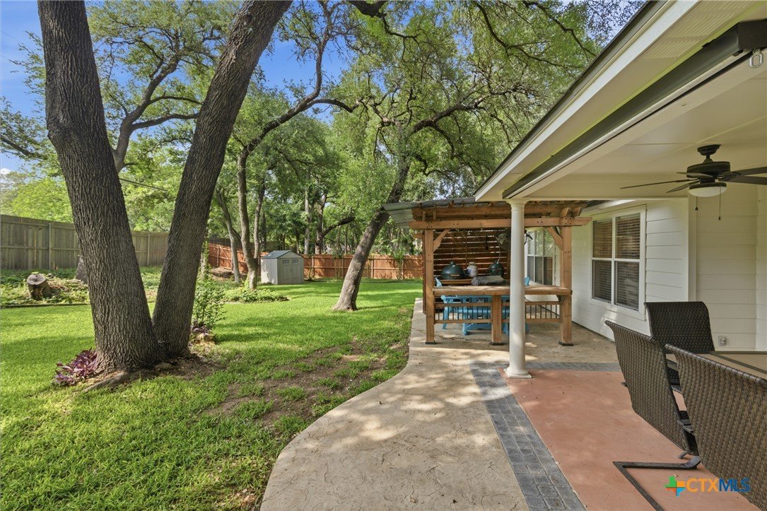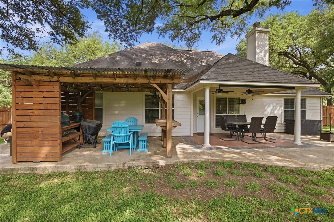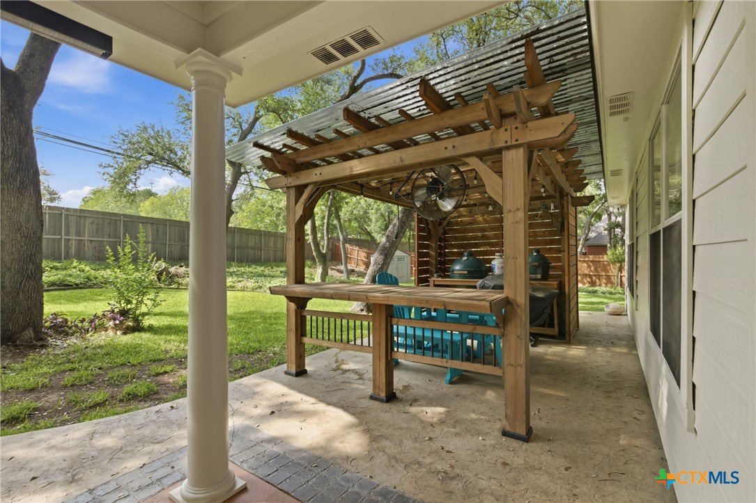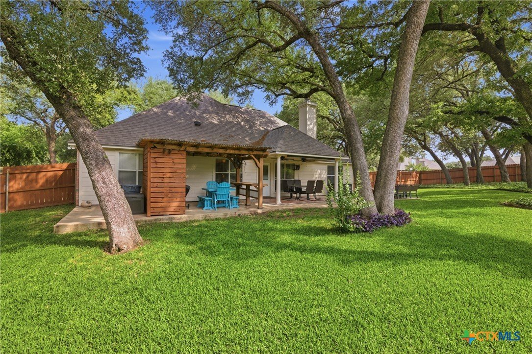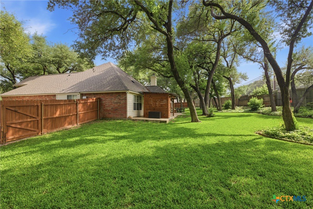 Welcome to 11716 Meredith Dr in Belton, Texas—nestled in the desirable Lakewood West at Lakewood Ranch community just moments from Belton Lake. This beautifully maintained home sits on a spacious, tree-covered lot offering shade, privacy, and a true Central Texas feel. Step inside to find thoughtful upgrades throughout, including hardwood bamboo flooring in the living room and primary bedroom, creating a warm and inviting atmosphere. The updated kitchen features new countertops, a stylish backsplash, freshly painted cabinets, and upgraded lighting with dimmers, including upper and under-cabinet illumination—perfect for both everyday living and entertaining. Major system updates provide peace of mind, including a new roof (Summer 2024), upgraded and larger AC unit (June 2023), and a new garage door and opener (2024). The backyard is a standout feature, boasting an extended 14x55 patio with a pergola—ideal for hosting, relaxing, or enjoying the serene, tree-lined yard. A patio shade adds extra comfort for those warm Texas days. Additional highlights include: Murphy bed in secondary bedroom for flexible space Security camera system with floodlights on all four corners (Wyze system with app access) Home pre-wired for a security system Expansive yard with mature trees and privacy fencing Located just down the street from Belton Lake, this home offers the perfect blend of comfort, upgrades, and location.