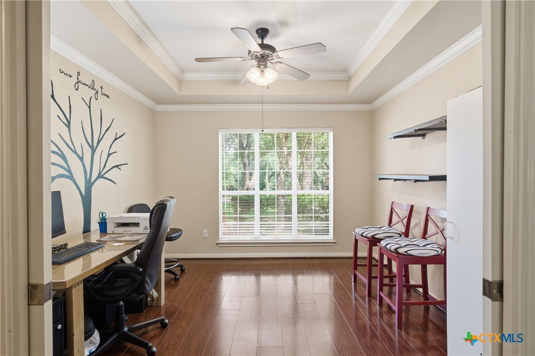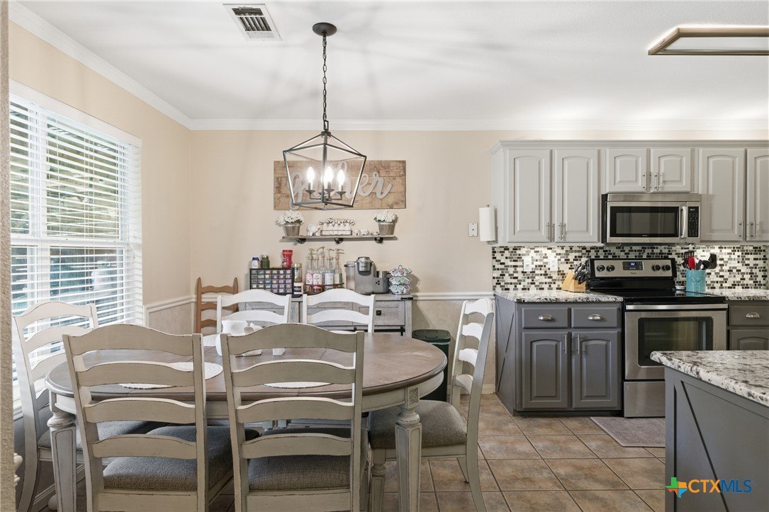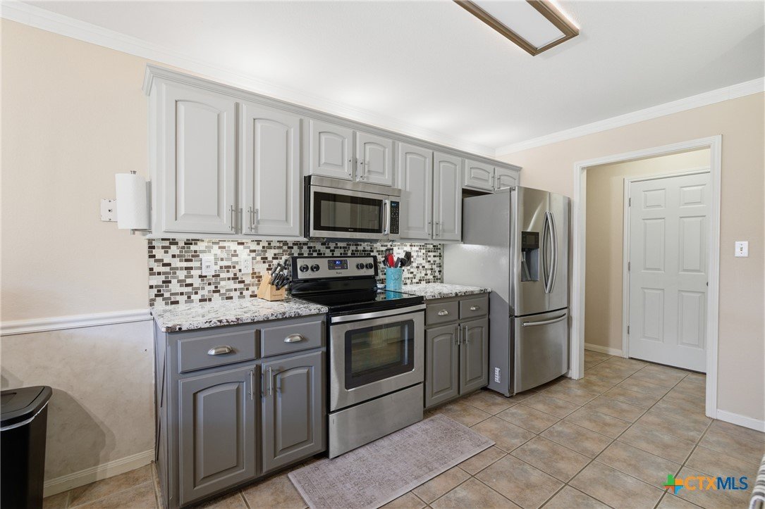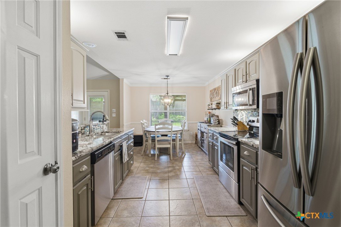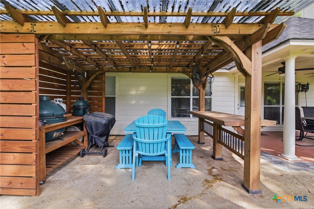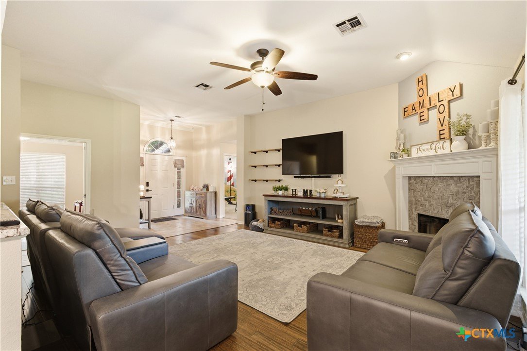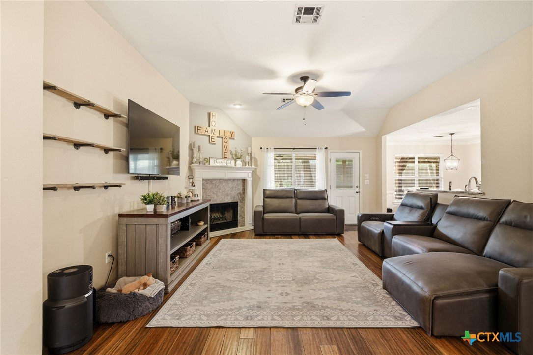 Welcome to 11716 Meredith Dr in Belton, Texas—nestled in the desirable Lakewood West at Lakewood Ranch community just moments from Belton Lake. This beautifully maintained home sits on a spacious, tree-covered lot offering shade, privacy, and a true Central Texas feel. Step inside to find thoughtful upgrades throughout, including hardwood bamboo flooring in the living room and primary bedroom, creating a warm and inviting atmosphere. The updated kitchen features new countertops, a stylish backsplash, freshly painted cabinets, and upgraded lighting with dimmers, including upper and under-cabinet illumination—perfect for both everyday living and entertaining. Major system updates provide peace of mind, including a new roof (Summer 2024), upgraded and larger AC unit (June 2023), and a new garage door and opener (2024). The backyard is a standout feature, boasting an extended 14x55 patio with a pergola—ideal for hosting, relaxing, or enjoying the serene, tree-lined yard. A patio shade adds extra comfort for those warm Texas days. Additional highlights include: Murphy bed in secondary bedroom for flexible space Security camera system with floodlights on all four corners (Wyze system with app access) Home pre-wired for a security system Expansive yard with mature trees and privacy fencing Located just down the street from Belton Lake, this home offers the perfect blend of comfort, upgrades, and location.