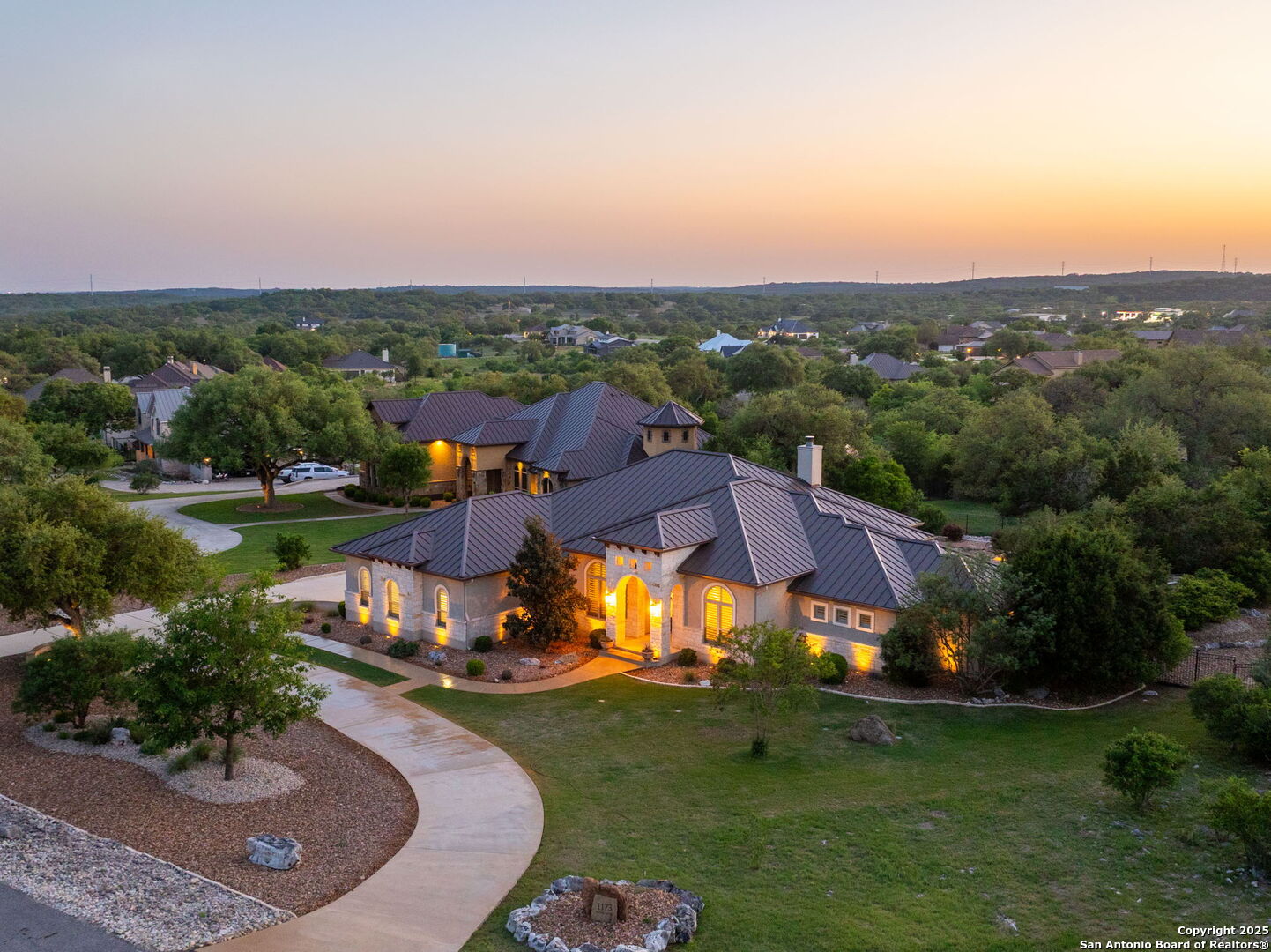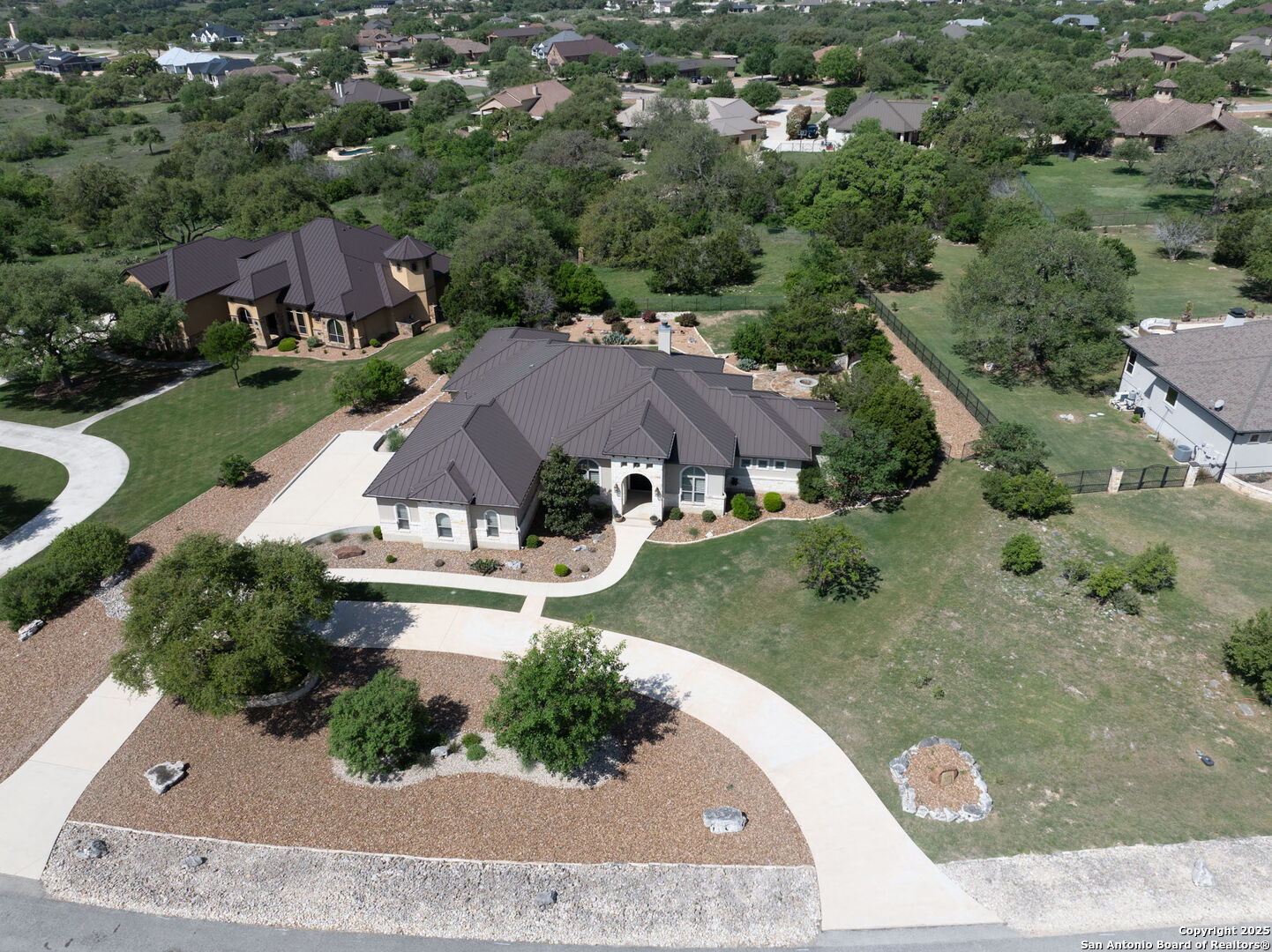 Located in the desirable community of Vintage Oaks, this stunning home blends the warmth of rustic elements with the sleek appeal of contemporary design, featuring 4 bedrooms, 3 1/2 bathrooms and a dedicated home office. The heart of the living space is anchored by a stunning fireplace with a custom metal door perfectly echoing the elegance of the metal front door the greets you upon arrival. Exposed beams throughout the home enhance the natural charm and character of the space. Polished stained concrete floors add a sleek, modern touch throughout, while large windows invite natural light to flood the home. Plantation shutters throughout the home provide privacy and style. The primary suite is a serene retreat, complete with a spacious bathroom featuring heated floors for added comfort. The chef inspired kitchen is a true highlight, boasting beautiful custom cabinets, two islands, one including a veggie sink, and high-end KitchenAid stainless steel appliances. The exterior is just as impressive, with a striking metal roof and manicured landscaping that enhances the home's curb appeal. A cozy backyard fire pit and hot tub invites relaxation surrounded by lush landscaping creating ultimate privacy. An oversized garage includes a dedicated bay for a workshop, complete with its own split unit and insulated for heating and cooling, making it an ideal space for hobbies or projects. This home is truly a perfect blend of rustic charm, modern touches and thoughtful details throughout! Vintage Oaks offers resort-style amenities that include pools, a lazy river, sports courts, walking trails, a clubhouse, and a state-of-the-art 6,000+ square foot fitness center and more!