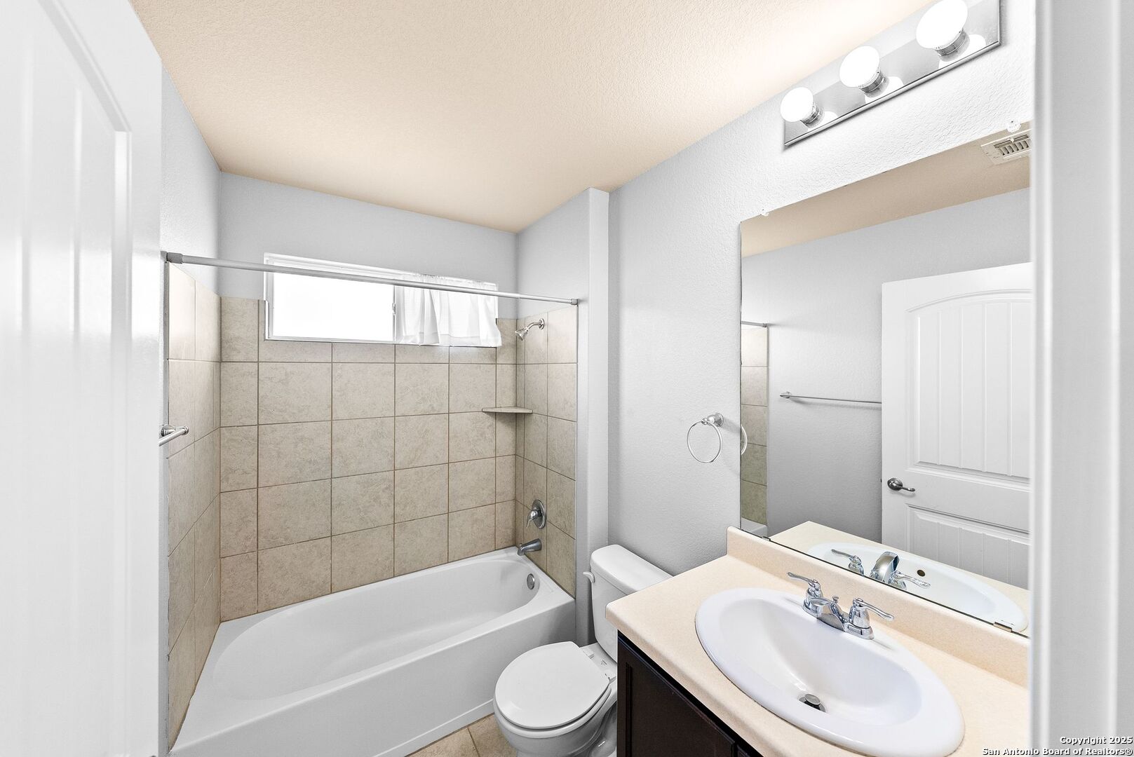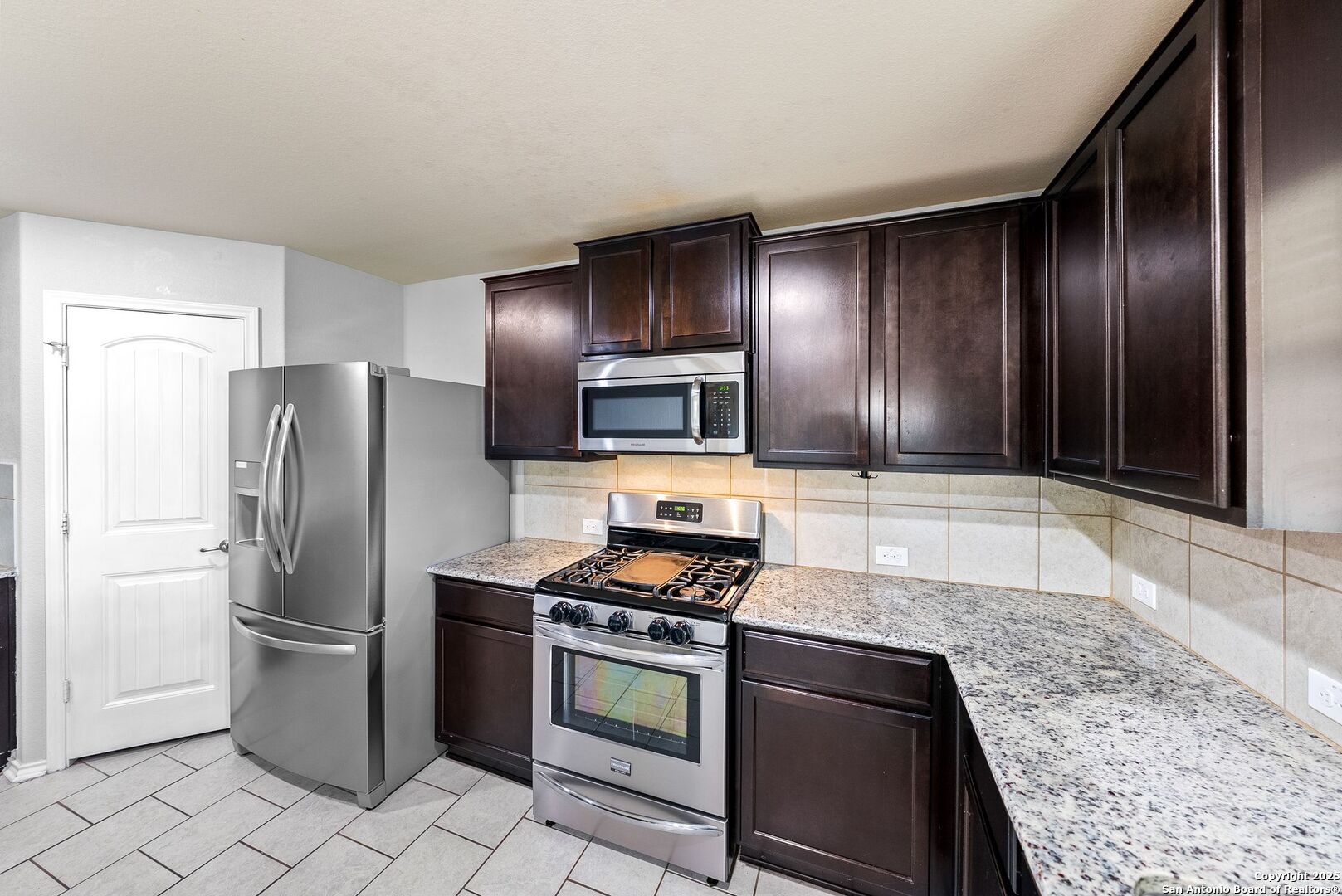 Step inside The Bowen, a thoughtfully designed two-story home with just the right balance of openness and privacy, ideal for everything from quiet mornings to lively family nights. With over 2,200 square feet of living space, this home offers three spacious bedrooms, two and a half bathrooms, and a flexible game room that's ready to transform based on your lifestyle-think movie nights, yoga space, home office or the ultimate gameroom. From the moment you walk into the main living area, the open-concept layout creates a feeling of togetherness. Picture starting your day with the smell of fresh coffee drifting from your granite-countertop kitchen, while breakfast simmers on the stovetop and natural light pours in from the backyard. The kitchen, dining, and living spaces flow effortlessly together, making this home ideal for everything from birthday parties to quiet weeknight dinners. Upstairs, serenity lives. The primary suite is a true retreat. Start and end your day in the spa-inspired bathroom, complete with dual vanities, a separate soaking tub, and a glass-enclosed shower that helps you reset after a long day. The walk-in closet? Roomy enough for all your wardrobe needs plus a few Target hauls. The game room adds that bonus space so many renters crave. Use it for hobbies, a second lounge area, or simply a place where kids can build forts without taking over the living room. Outside, a covered patio sets the stage for weekend grilling, after-dinner chats, or lazy Sundays with a good book. The home comes fully equipped with Frigidaire appliances, a refrigerator, washer and dryer, and even 2-inch faux wood blinds already installed-because who wants to move in and deal with that? Located in a welcoming neighborhood with plenty of open skies and Texas charm, The Bowen brings both functionality and feeling to your next rental experience. It's not just a place to live-it's a place to come home to. Ready to experience it for yourself? Schedule a tour through our self guided access.