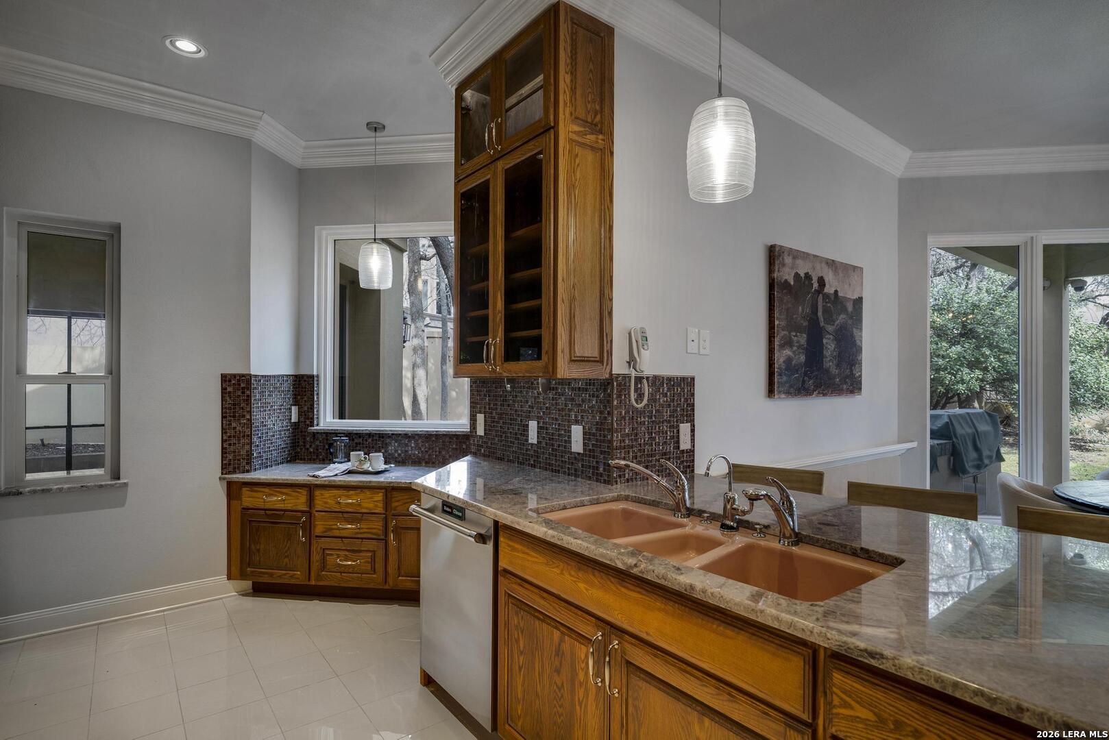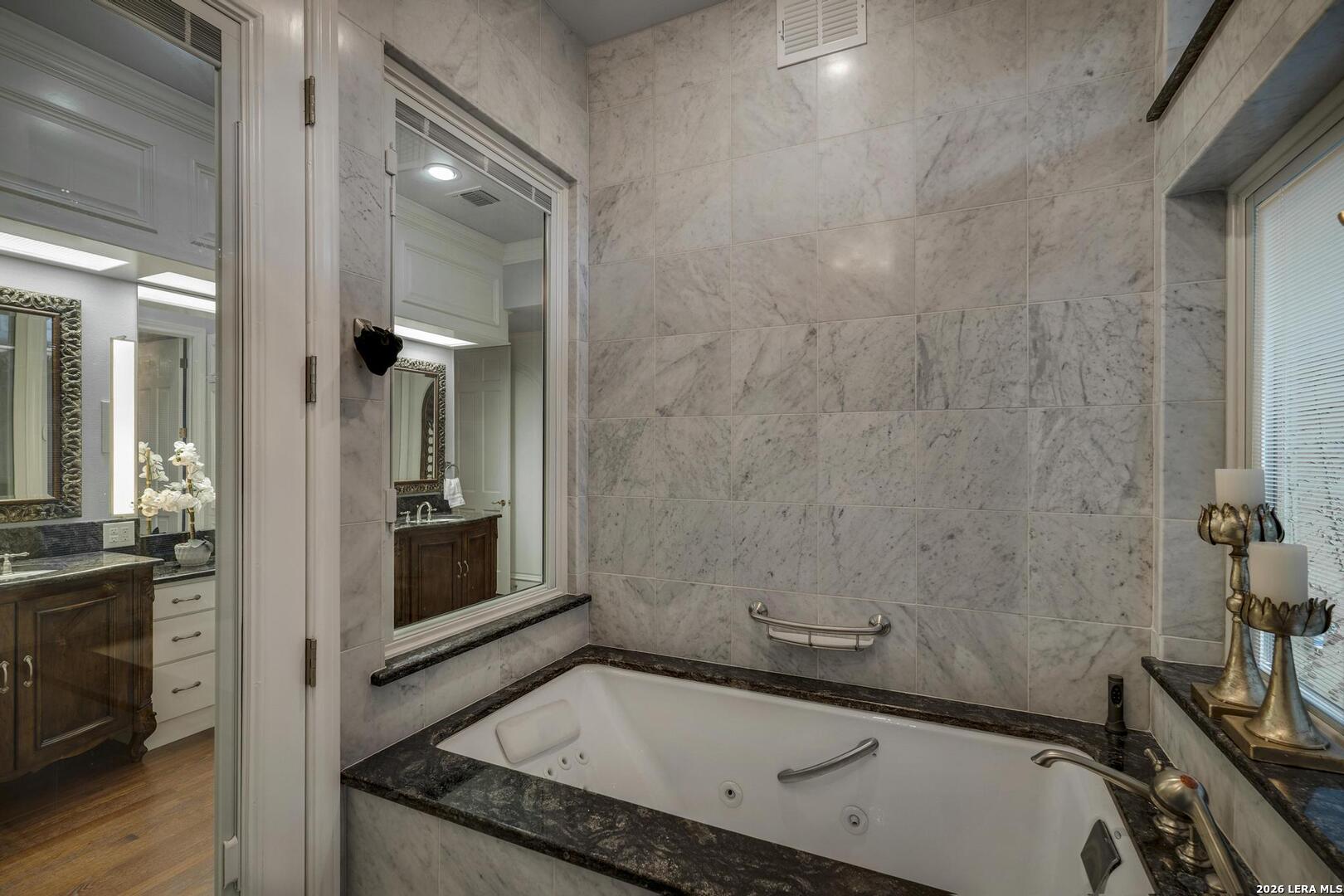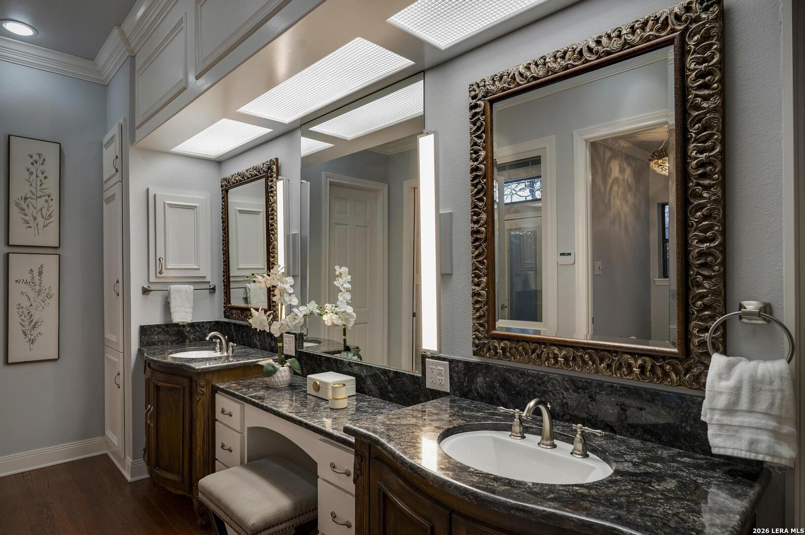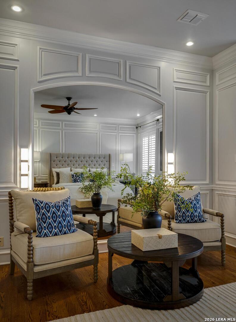Experience elevated living in this elegant four-bedroom, five-bathroom luxury estate, featuring an architecturally French-inspired design. Nestled in the exclusive and secure neighborhood of Elm Creek, this immaculate residence is thoughtfully crafted with both sophistication and comfort in mind. A stunning, climate-controlled indoor pool stretching 63 feet in length provides a private oasis for relaxation and recreation year-round. Grand living spaces are adorned with top-tier finishes, creating a perfect blend of elegance and tranquility throughout the residence. Each of the opulent bedrooms and designer bathrooms exudes serene luxury. The gourmet chef's kitchen is appointed with custom cabinetry and luxury appliances, ideal for preparing exceptional meals. Adjacent to the kitchen, the banquet-sized dining room is enhanced by a lovely passthrough fireplace, offering a warm and inviting ambiance for gatherings. The great room is filled with ambient light and features soaring ceilings, creating an open and airy atmosphere. A beautiful view of the tiled, expansive covered patio can be enjoyed from this space, making it perfect for outdoor entertainment in comfort and style. The regal master suite on the first floor is appointed with a spa-inspired en-suite bathroom, providing a true retreat. The first floor also features a gracious guest bedroom with a private bath next door, along with a comfortable, airy office that gives a quiet space for work or relaxation. A flexible bonus space was created above the office which can be used as a workout room, craft room or additional bedroom. Ascending the magnificent stairway to the second level, you are greeted by two additional generously sized bedrooms and a spacious game room, perfect for recreation and entertainment.