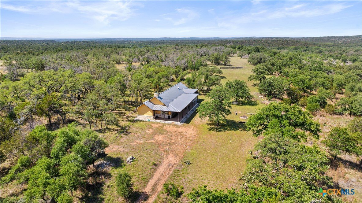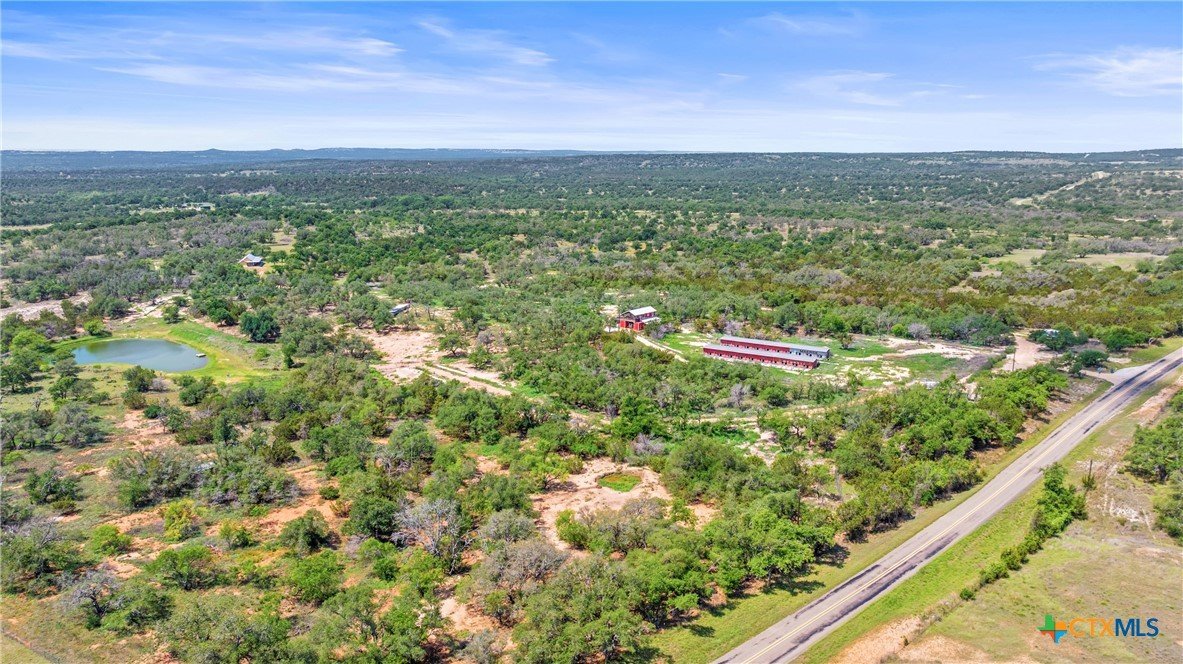 Discover the perfect blend of rustic charm and modern living on this stunning 60 acre unrestricted ranch, ideally situated just minutes from Johnson City in the heart of the Texas Hill Country. This property offers a rare opportunity to enjoy peaceful country living with the convenience of nearby amenities and attractions. The main residence is a beautifully designed dog-run style home featuring 4 spacious bedrooms, 2.5 bathrooms, and rich stained concrete floors throughout. The open-concept kitchen is perfect for entertaining, with stylish finishes and ample space for gatherings. Step out onto the expansive front porch and take in breathtaking views of the rolling Hill Country landscape. There is also a nice sized storage shed close to main home. Scattered with thriving oak trees and featuring well-maintained ranch roads, the property is perfect for outdoor enthusiasts. A large pond attracts abundant wildlife, offering excellent opportunities for nature watching or recreational hunting. Additional improvements include a well-appointed barn with a 2-bedroom, 1-bath apartment ideal for guest quarters, a rental opportunity, or ranch staff. Located just 15 minutes from downtown Johnson City, 30 minutes to both Marble Falls and Fredericksburg, and a little over an hour to Austin and San Antonio, this ranch sits in one of the fastest-growing regions in the nation. Whether you're looking for a family retreat, investment property, or your forever home, this ranch delivers unparalleled potential.