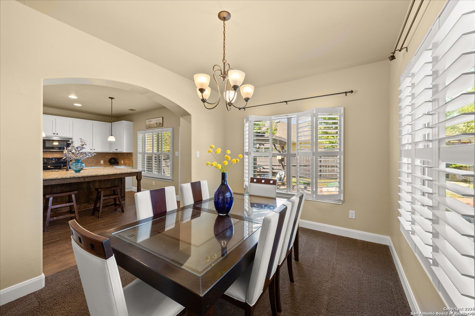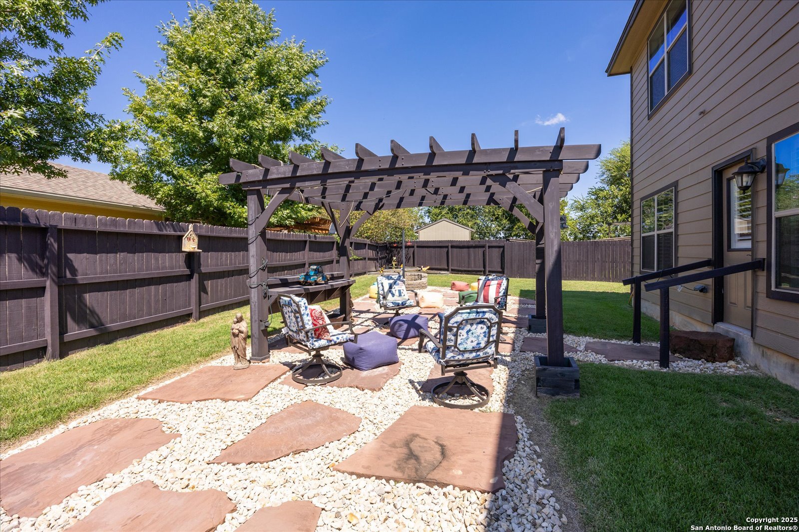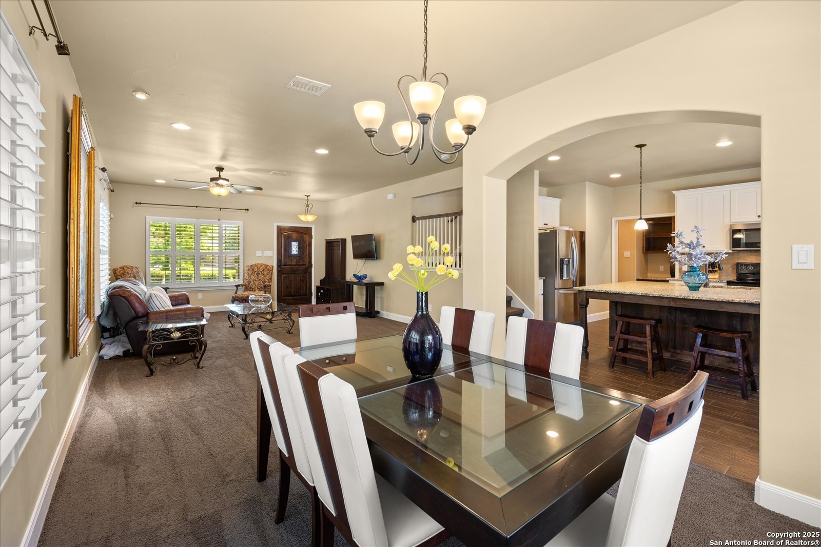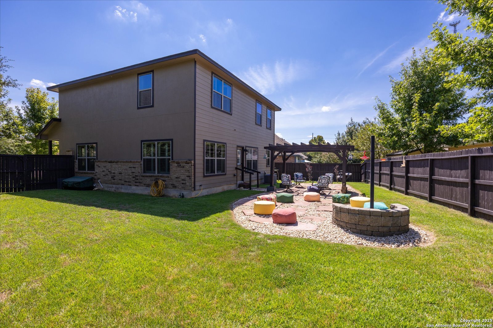 Welcome to this beautifully maintained, spacious home offering the perfect blend of comfort and style. Featuring two generous living areas, this home provides plenty of room to relax, entertain, and create lasting memories. The heart of the home is the gorgeous kitchen, highlighting a striking 7x7 granite island that's perfect for gatherings, cooking, and casual dining. Plantation shutters grace every window, bathing the space in soft, natural light while adding timeless elegance throughout. Stay organized and inspired with two built-in desk areas complete with ample storage-ideal for remote work, homework, or creative projects. Situated on a quiet cul-de-sac, this home offers a serene retreat away from the hustle and bustle. Step outside to a spacious backyard, equipped with a full sprinkler system to keep your lawn lush and green year-round. Whether you're hosting summer barbecues or enjoying peaceful evenings under the stars, unleash your imagination in this highly versatile space. The family-friendly neighborhood features scenic trails and a playground, perfect for kids and nature lovers alike. Enjoy unparalleled convenience with HEB, Walmart and St Peters just under 3 miles away, and Boerne High School only 1 mile from your doorstep. This is more than a house-it's your next chapter.