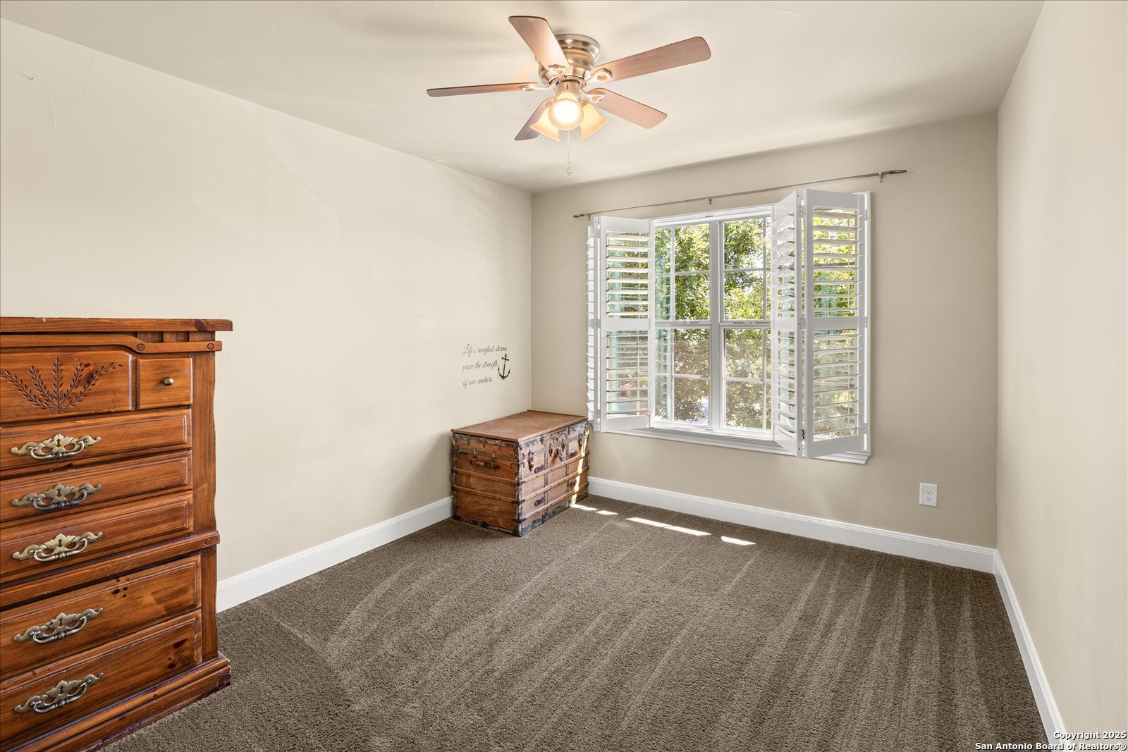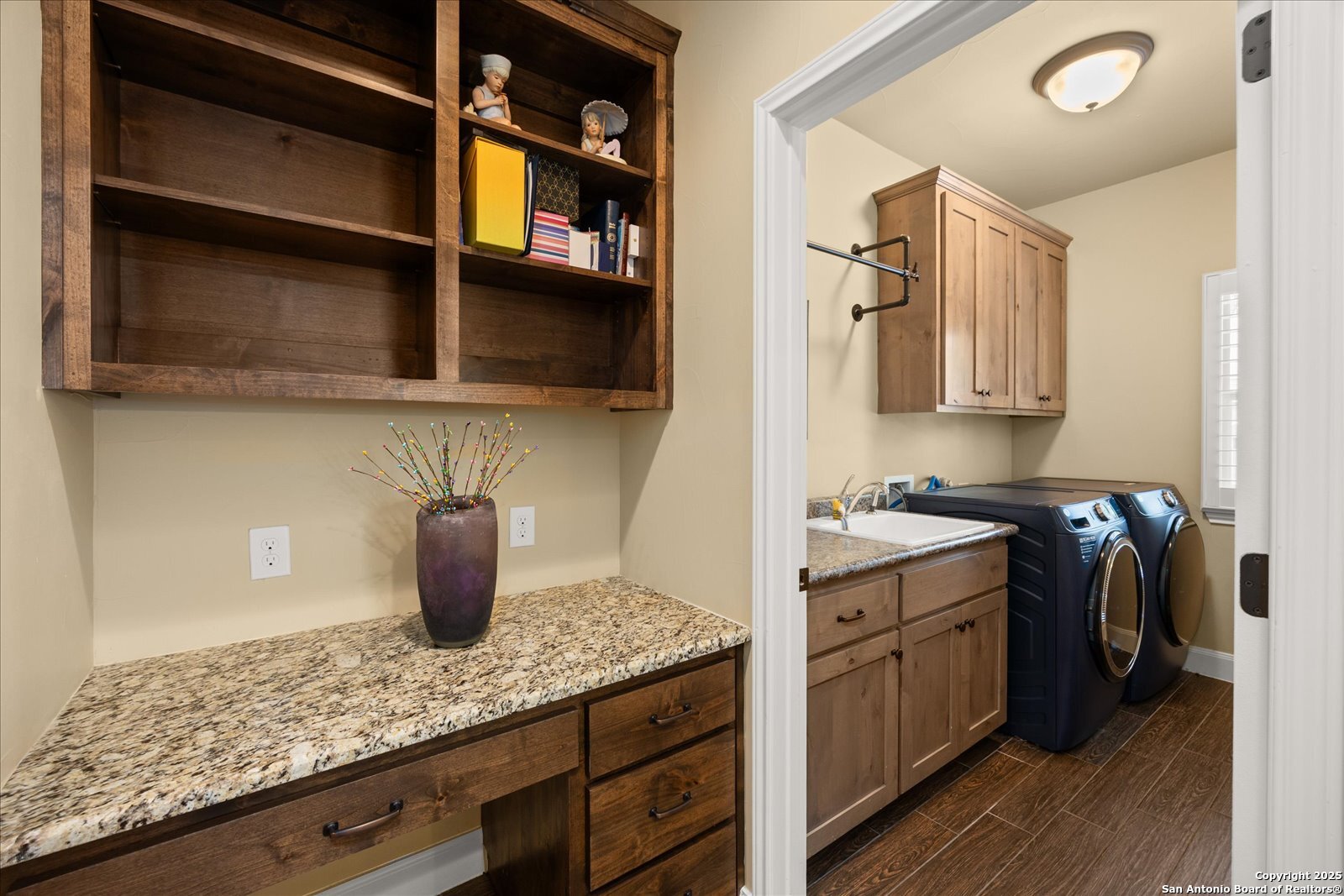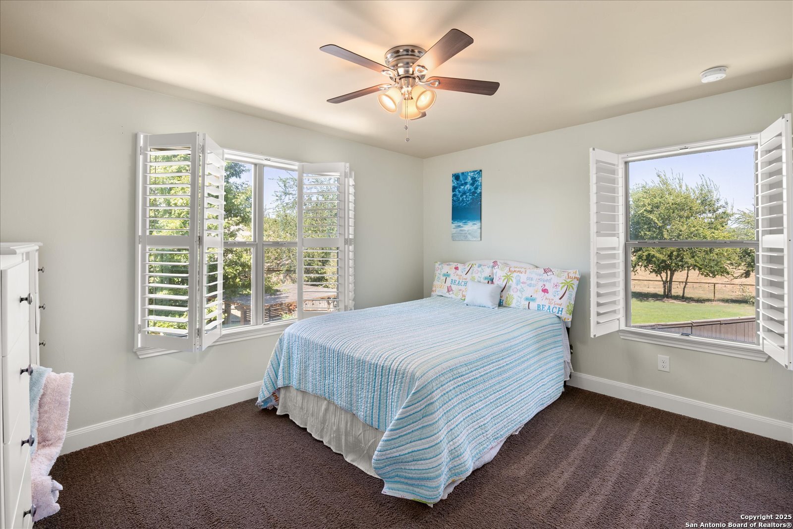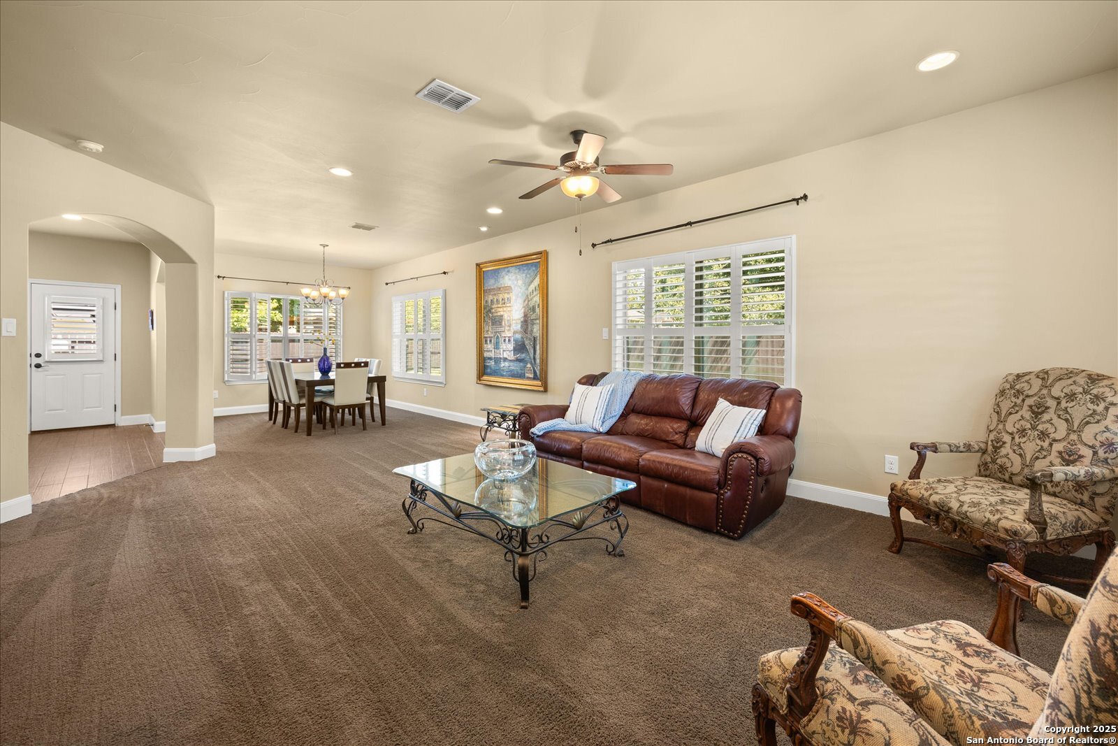 Welcome to this beautifully maintained, spacious home offering the perfect blend of comfort and style. Featuring two generous living areas, this home provides plenty of room to relax, entertain, and create lasting memories. The heart of the home is the gorgeous kitchen, highlighting a striking 7x7 granite island that's perfect for gatherings, cooking, and casual dining. Plantation shutters grace every window, bathing the space in soft, natural light while adding timeless elegance throughout. Stay organized and inspired with two built-in desk areas complete with ample storage-ideal for remote work, homework, or creative projects. Situated on a quiet cul-de-sac, this home offers a serene retreat away from the hustle and bustle. Step outside to a spacious backyard, equipped with a full sprinkler system to keep your lawn lush and green year-round. Whether you're hosting summer barbecues or enjoying peaceful evenings under the stars, unleash your imagination in this highly versatile space. The family-friendly neighborhood features scenic trails and a playground, perfect for kids and nature lovers alike. Enjoy unparalleled convenience with HEB, Walmart and St Peters just under 3 miles away, and Boerne High School only 1 mile from your doorstep. This is more than a house-it's your next chapter.