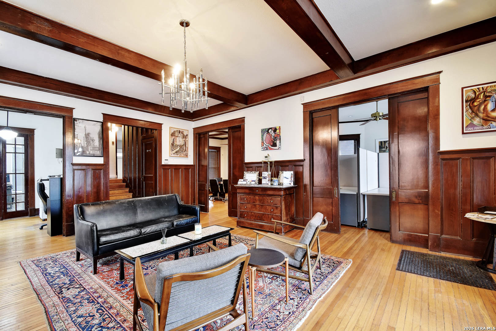 118 E Ashby Pl | San Antonio, TX 78212 Beautifully preserved 1915 property currently operating as a law office, offering timeless character and professional functionality. Features include a welcoming reception area with original fireplace, high ceilings, rich wood trim, and abundant natural light. First floor includes a corner office, impressive conference room, full kitchen, two restrooms, and support spaces. Upstairs offers five private offices, an additional conference room, and two full restrooms. One bedroom apartment in secondary building. Prime central location with convenient access to Downtown and major corridors. Ideal for law firm, professional services, medical, or owner-user.
