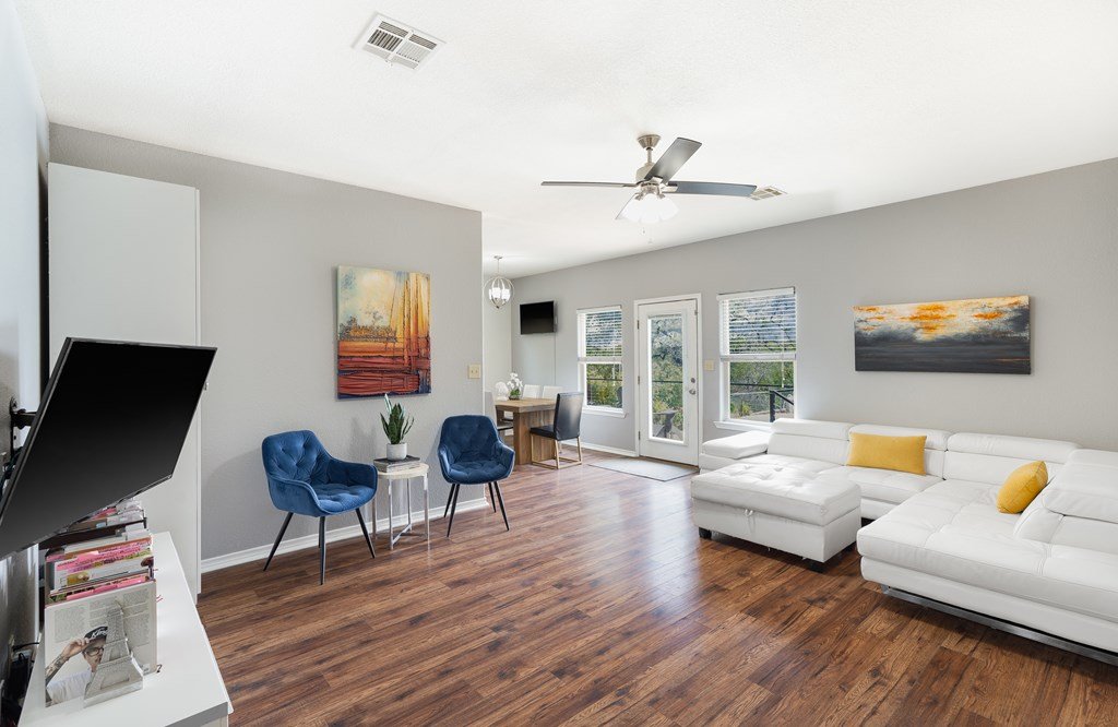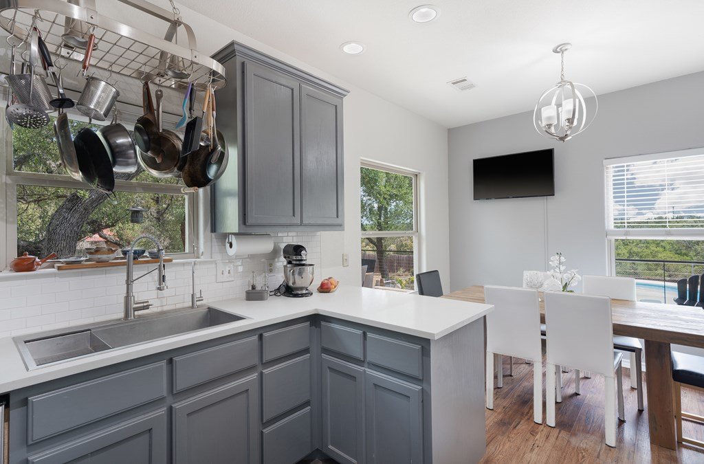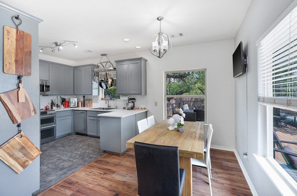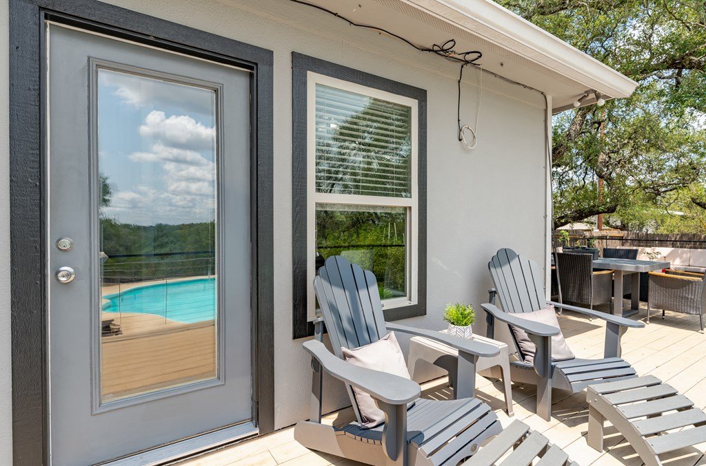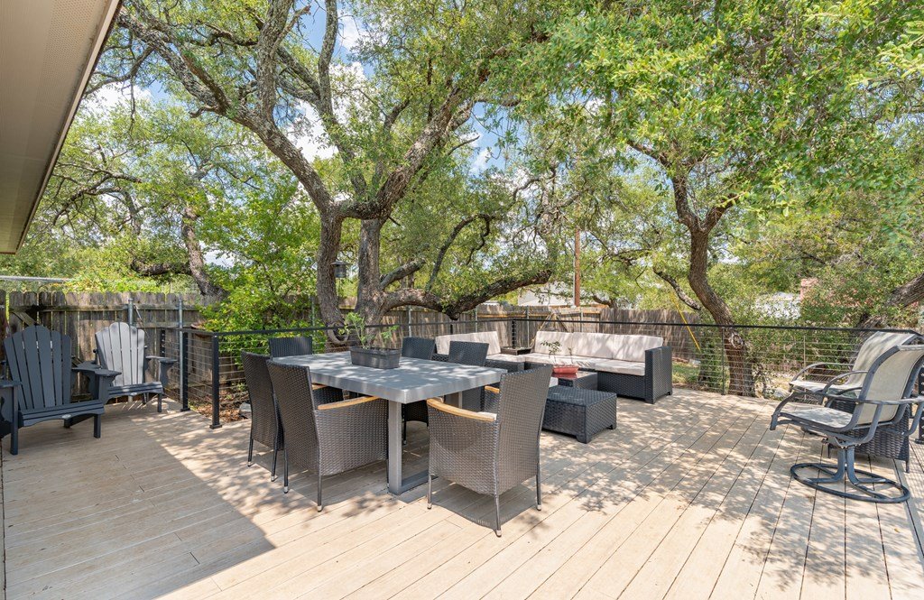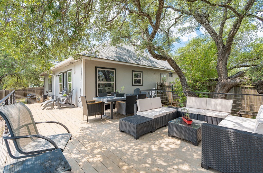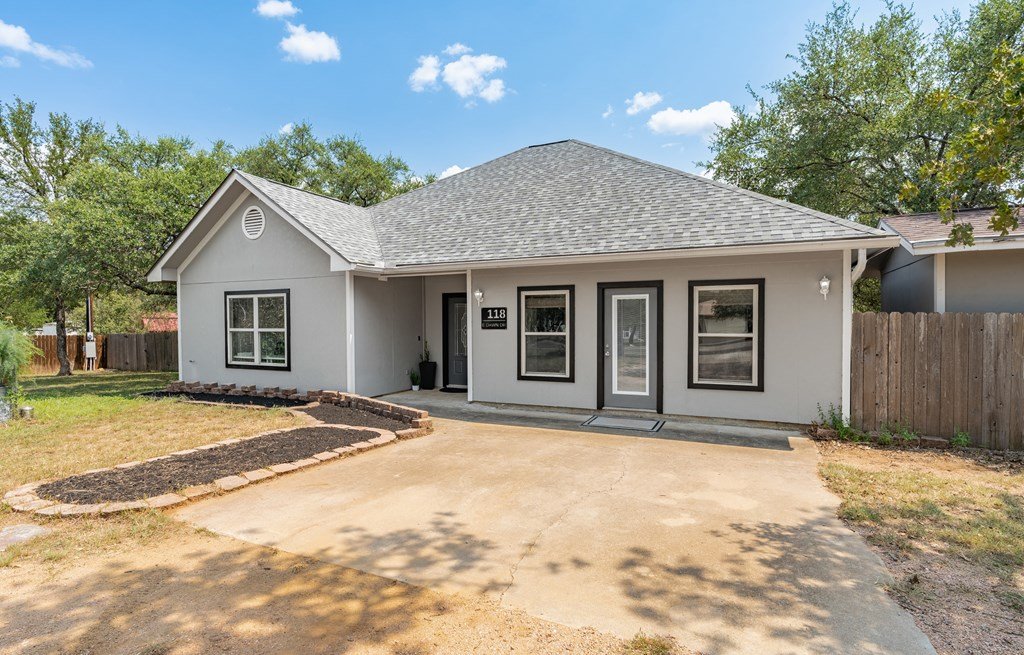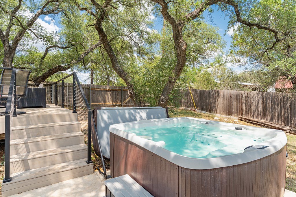Home + Backyard Paradise in Johnson City...Pool, Hot Tub & Modern Comforts on .65 Acres! Discover the perfect blend of comfort, style and outdoor living in this beautifully updated 3 bedroom, 2 bath home located in the heart of Johnson City. Situated on a generous .65 acre lot with mature oaks, this property offers a peaceful setting just minutes from all the Hill Country has to offer. Step inside to an open concept living and kitchen area ideal for entertaining. The kitchen features white quartz counters, stainless steel appliances, a smart induction range with double oven, filtered water spout and ample cabinetry. The split-bedroom layout ensures privacy with the primary suite featuring an en-suite bath and large walk-in closet. Outdoor living takes center stage with a brand new Timbertech low-maintenance deck with architectural railing, in-ground pool with a new variable-speed smart pump and chlorinator, and a hot tub with ozone generator. Raised garden beds with automatic irrigation make it easy to grow your own fresh produce while the privacy-fenced backyard offers plenty of space for gatherings. Recent upgrades provide peace of mind, including a new roof (2023), new AC evaporator coil (2024), new window inserts (2024/2025), washer & dryer (2024), and fiber internet for fast, reliable connectivity. An outdoor storage shed and shade from large oak trees complete the picture. Whether you're looking for a full time residence, vacation home, or investment property, 118 E Dawn offers the ultimate Hill Country lifestyle complete with modern amenities, beautiful views, and an entertainer's backyard.