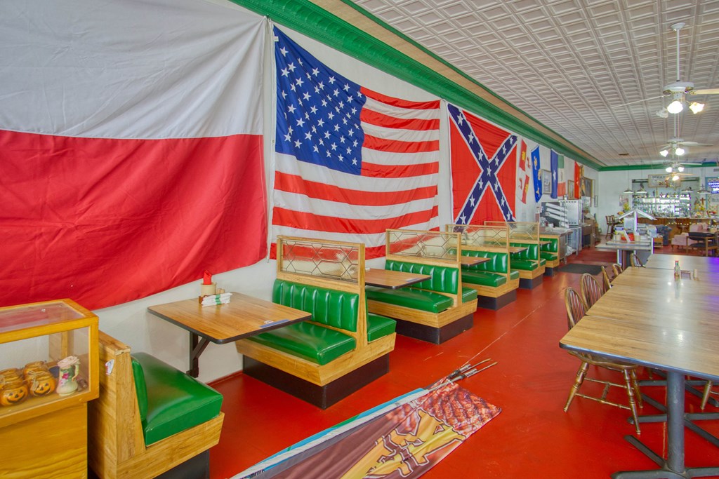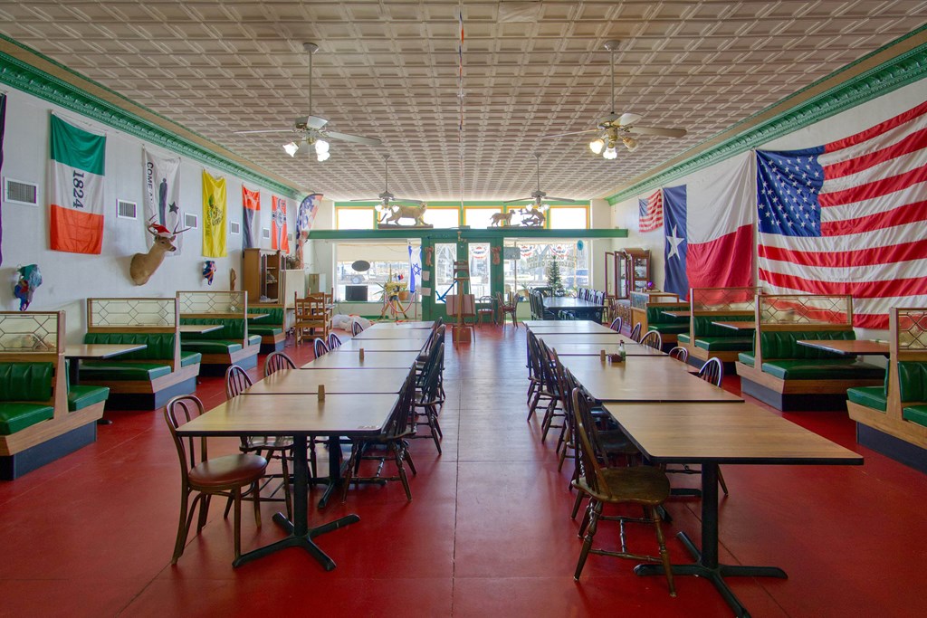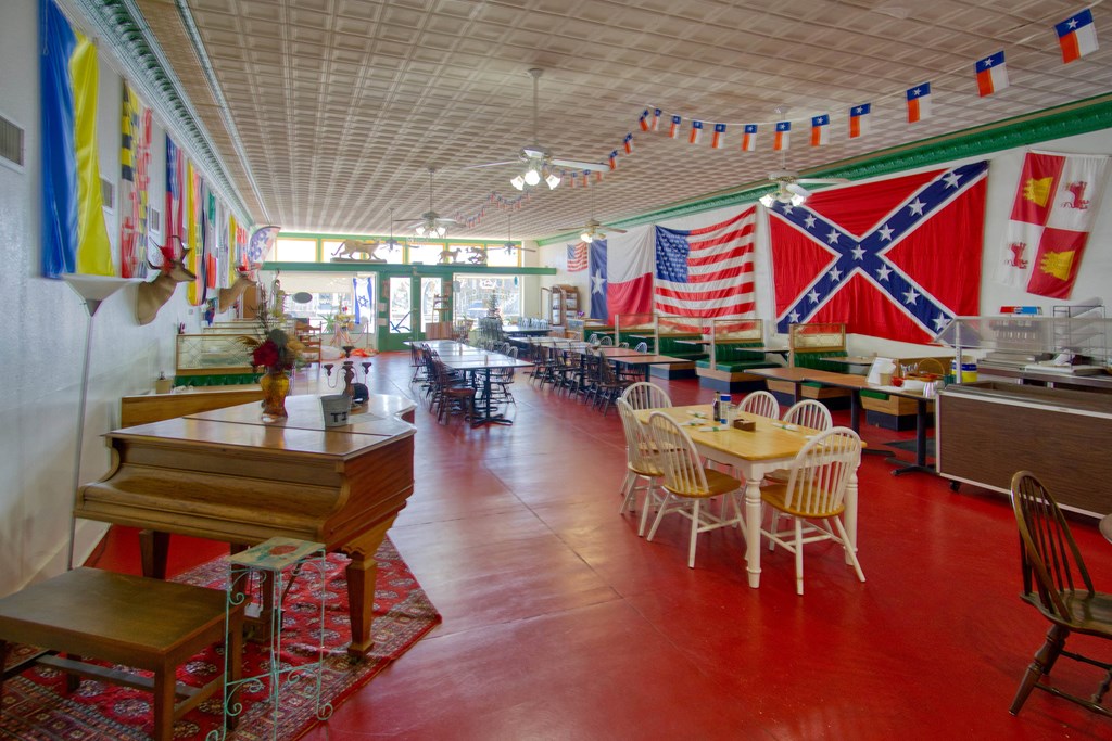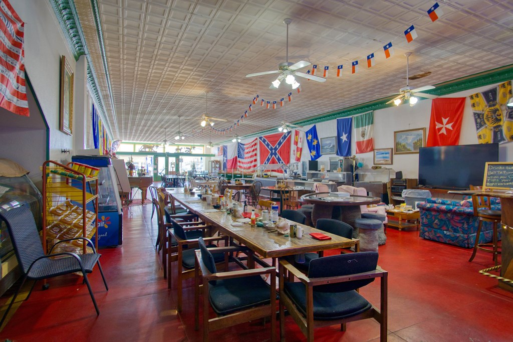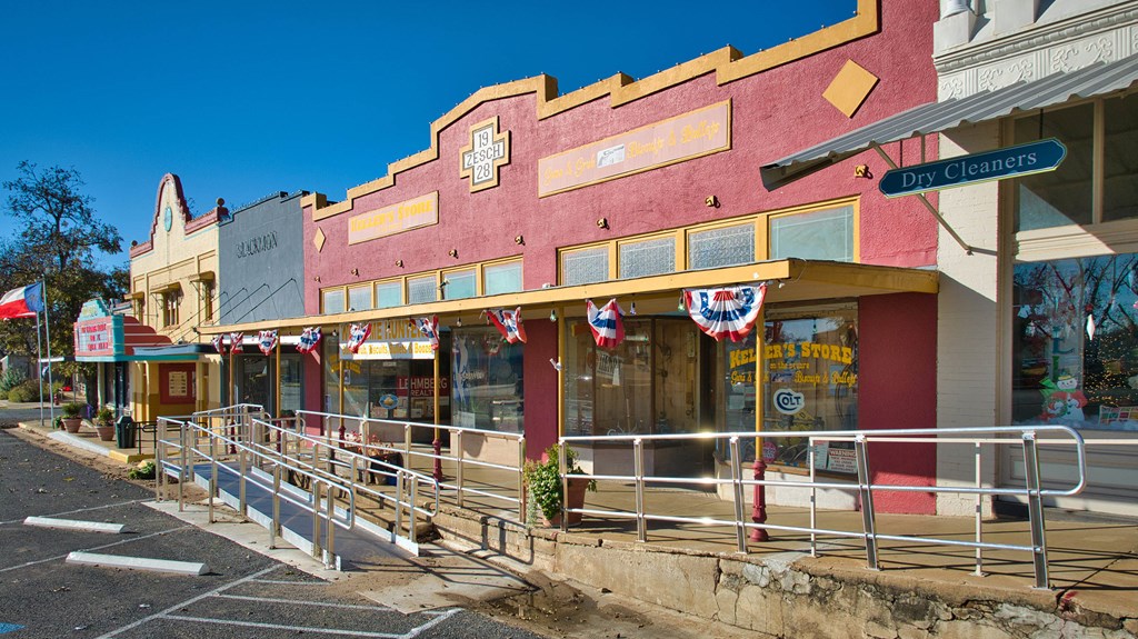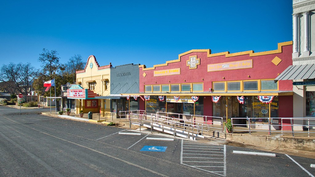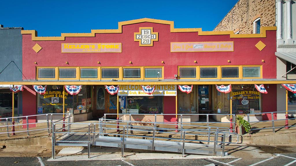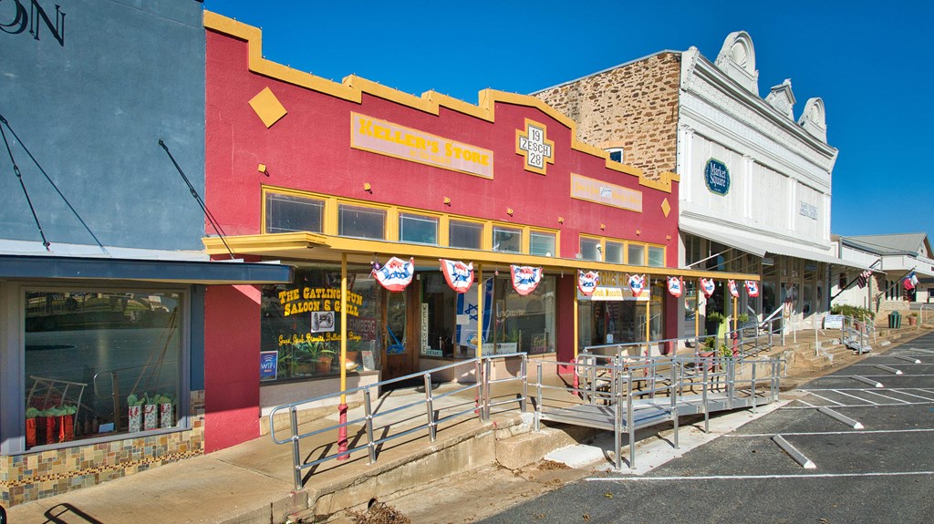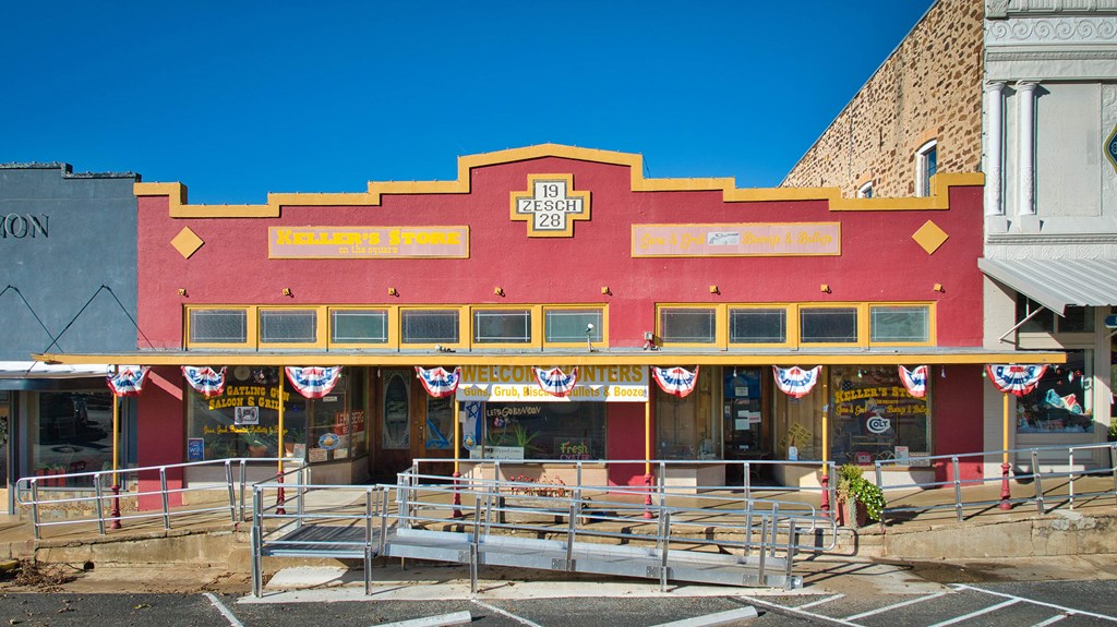 Zesch Building- established in 1928 on the west side of Mason's historic and lively downtown square. One of the largest commercial spaces on the square, this unique building offers 2 adjoining spaces of approx. 3600' sq ft, each with their own entry and most spacious out-front, dual-street parking in town. Situated directly across from main courthouse entrance and next to the Odeon Theater, Blackmon tasting room, Market Square gift store and short walk to Heritage Park- this location has become a hub of high traffic activity. Traditional restaurant side is a huge open space with original high ceilings and ample seating great for groups or private dinners. Great venue potential for events, live music or dance hall with full bar and kitchen, office, 2 bathrooms, food pantry, walk-in coolers and large 2-car garage storage space in back. Retail side of building connects through interior allowing for operation of two businesses or extra lease space. Currently operating as Keller's Store and the Gatling Gun Saloon & Grill. Owner would convey most furnishings and accessories. Make him offer he can't refuse and you might get a Gatling Gun or Cannon thrown in!