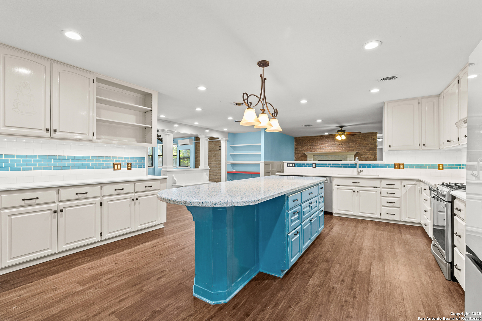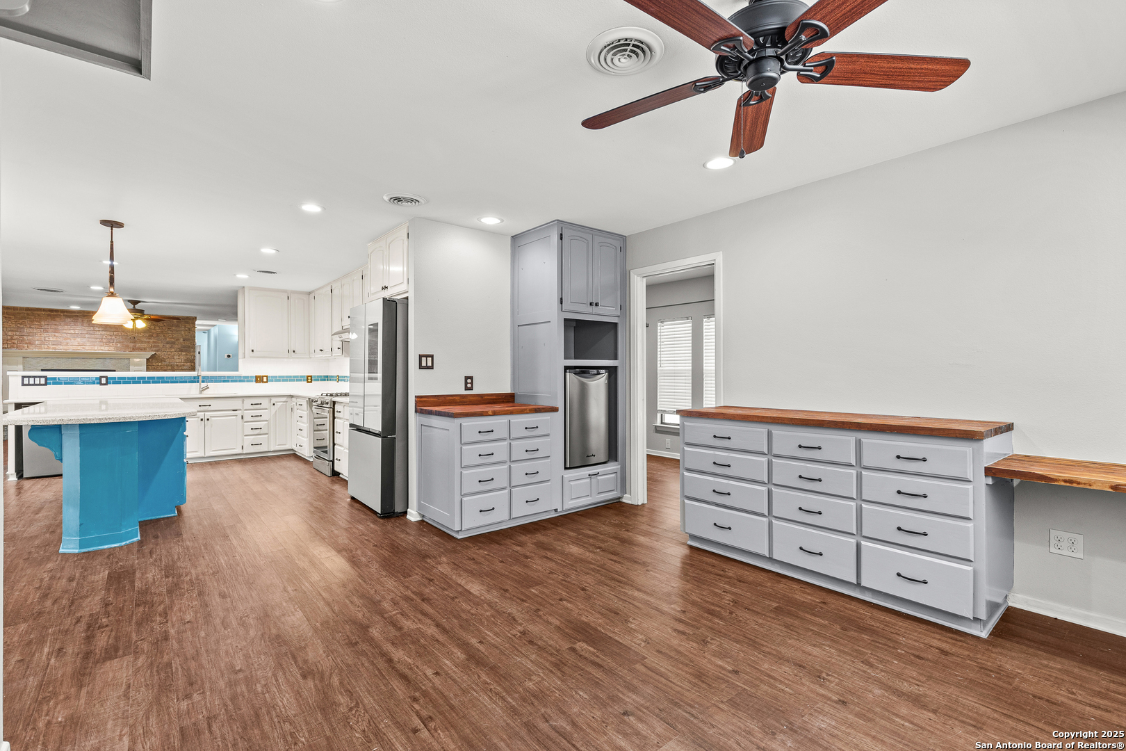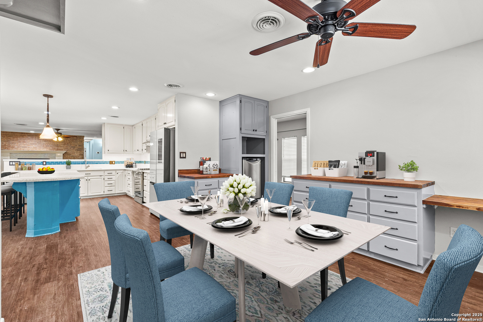 Looking for a home with space for your home office, playroom, yoga studio, workout room, or creative retreat for your hobbies? This approximately 3,400-SF home offers abundant flexibility to enhance every stage of life, as well as an assumable low-rate VA loan. Along with multiple versatile areas, you'll find exceptional storage for crafts, tools, and more, keeping everything organized and within easy reach. The heart of the home is a spacious open-plan living area anchored by the wood-burning fireplace, seamlessly connected to the island kitchen. Here, acres of quartz counters, custom cabinetry, stainless-steel appliances, and under-mount lighting make cooking, entertaining, and everyday living a joy. The dining area, walk-in pantry, utility room, and bright sunroom/family room flow easily from the kitchen, creating a functional and inviting layout. The private bedroom wing includes a serene primary bedroom with en-suite bath, along with comfortable guest bedrooms, all featuring brand-new, plush carpeting. Tucked away from the main living areas, the bedrooms provide peace and quiet when it's time to unwind. Step outside to the fenced back yard shaded by oak trees and with plenty of open space for kids and pets to play. Park your RV on the pad behind the gate and store your gear in the mudroom. The office and workshop have easy-clean formica walls, sinks, and storage cabinets. This home combines generous square footage, thoughtful design, and a warm, welcoming atmosphere, ready to complement your lifestyle. Hollywood Park has its own police and fire departments, and a voluntary homeowners association. There is a clubhouse, a shaded pavilion with outdoor grills, three swimming pools, a splash pad, a playground, two tennis courts, a regulation basketball court, and a volleyball court. Residents also enjoy year-round community events that make it easy to connect with neighbors and kids, such as visits from Santa and Mrs. Claus, safe Halloween outdoor trails, parades, and Easter egg hunts.