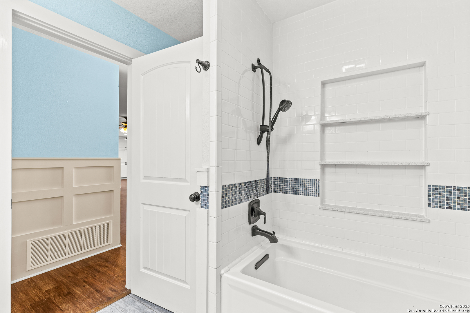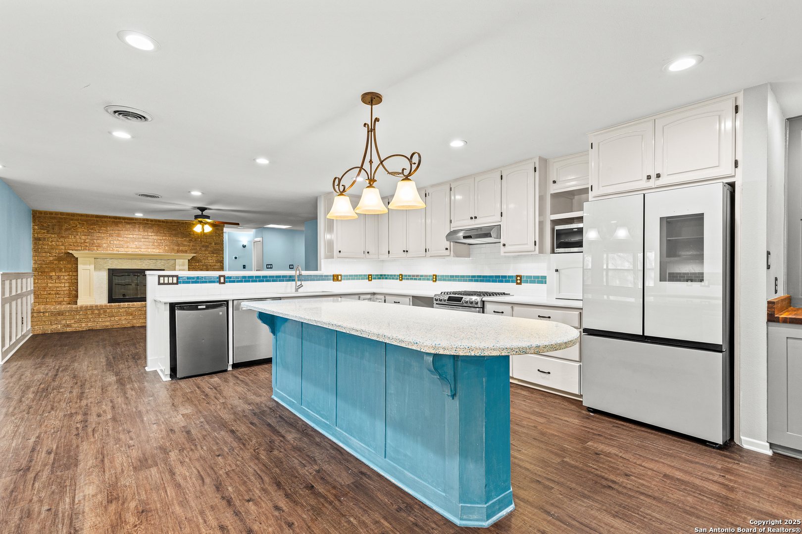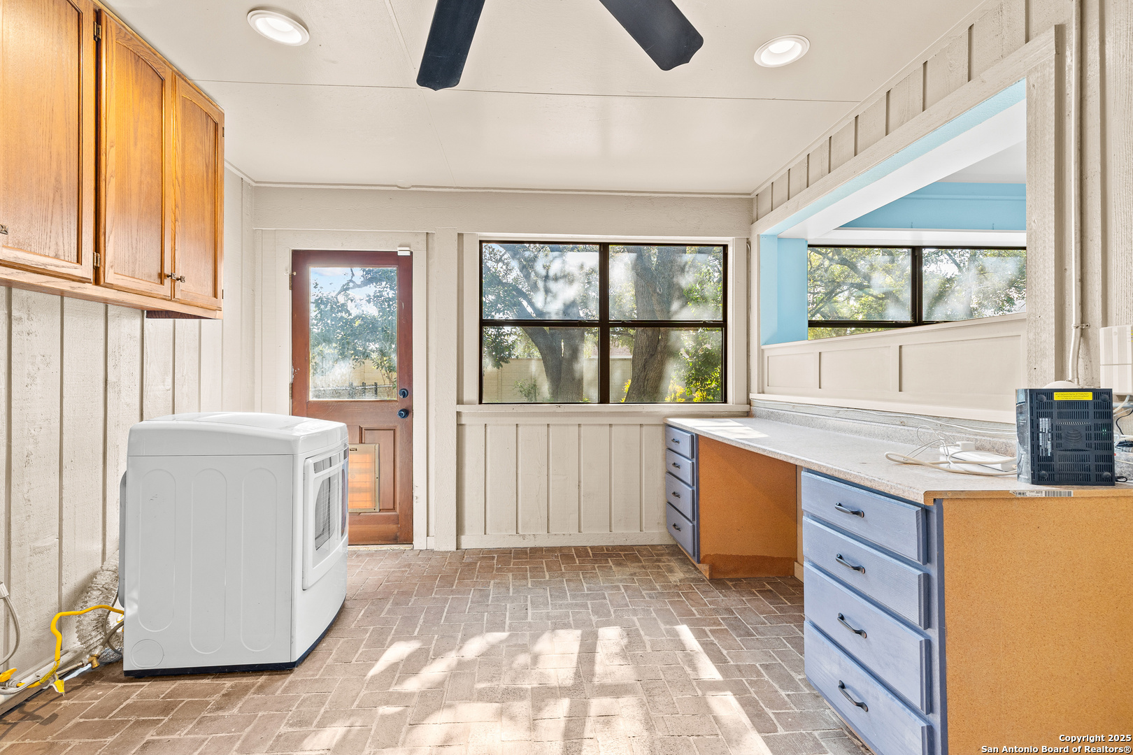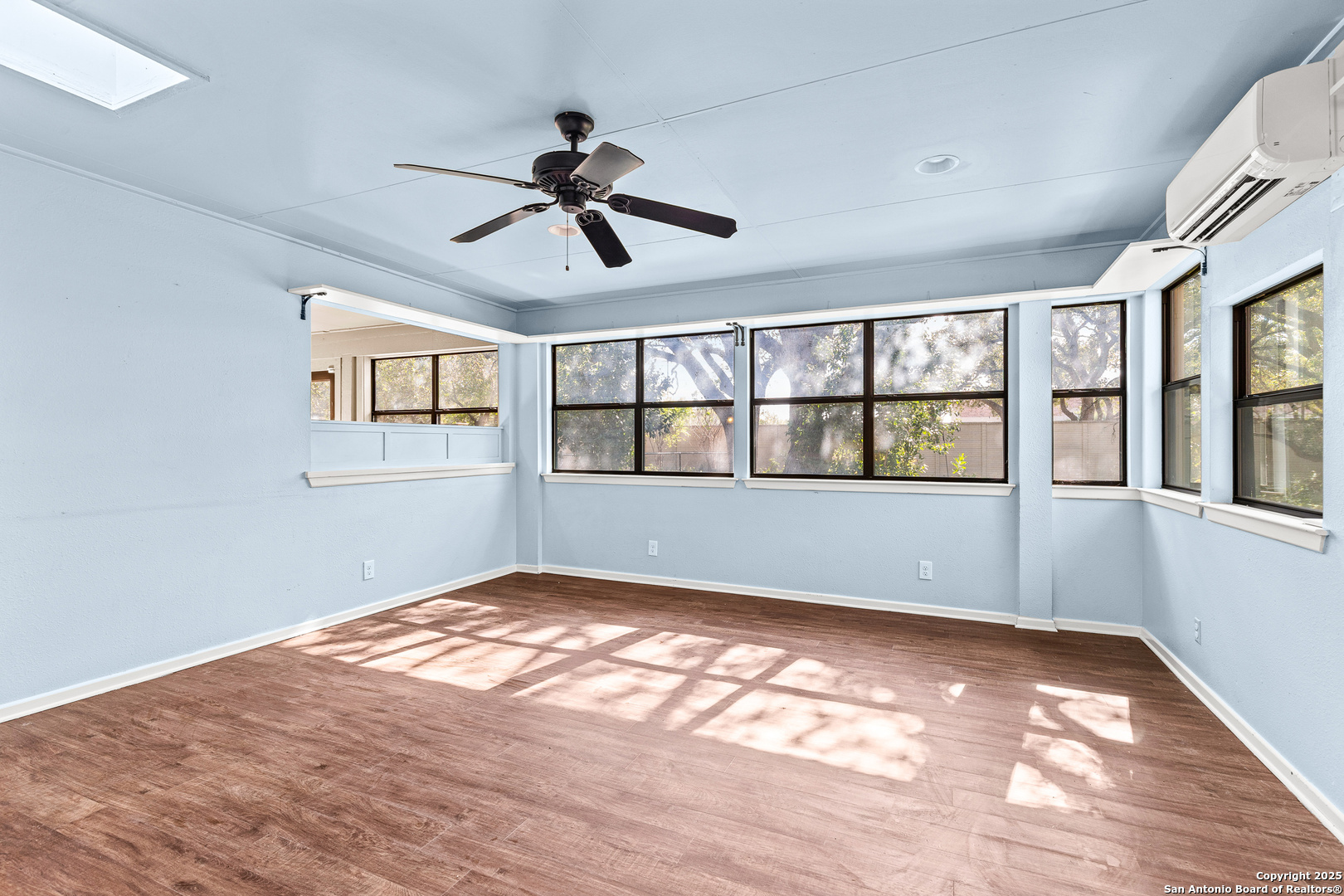 Looking for a home with space for your home office, playroom, yoga studio, workout room, or creative retreat for your hobbies? This approximately 3,400-SF home offers abundant flexibility to enhance every stage of life, as well as an assumable low-rate VA loan. Along with multiple versatile areas, you'll find exceptional storage for crafts, tools, and more, keeping everything organized and within easy reach. The heart of the home is a spacious open-plan living area anchored by the wood-burning fireplace, seamlessly connected to the island kitchen. Here, acres of quartz counters, custom cabinetry, stainless-steel appliances, and under-mount lighting make cooking, entertaining, and everyday living a joy. The dining area, walk-in pantry, utility room, and bright sunroom/family room flow easily from the kitchen, creating a functional and inviting layout. The private bedroom wing includes a serene primary bedroom with en-suite bath, along with comfortable guest bedrooms, all featuring brand-new, plush carpeting. Tucked away from the main living areas, the bedrooms provide peace and quiet when it's time to unwind. Step outside to the fenced back yard shaded by oak trees and with plenty of open space for kids and pets to play. Park your RV on the pad behind the gate and store your gear in the mudroom. The office and workshop have easy-clean formica walls, sinks, and storage cabinets. This home combines generous square footage, thoughtful design, and a warm, welcoming atmosphere, ready to complement your lifestyle. Hollywood Park has its own police and fire departments, and a voluntary homeowners association. There is a clubhouse, a shaded pavilion with outdoor grills, three swimming pools, a splash pad, a playground, two tennis courts, a regulation basketball court, and a volleyball court. Residents also enjoy year-round community events that make it easy to connect with neighbors and kids, such as visits from Santa and Mrs. Claus, safe Halloween outdoor trails, parades, and Easter egg hunts.