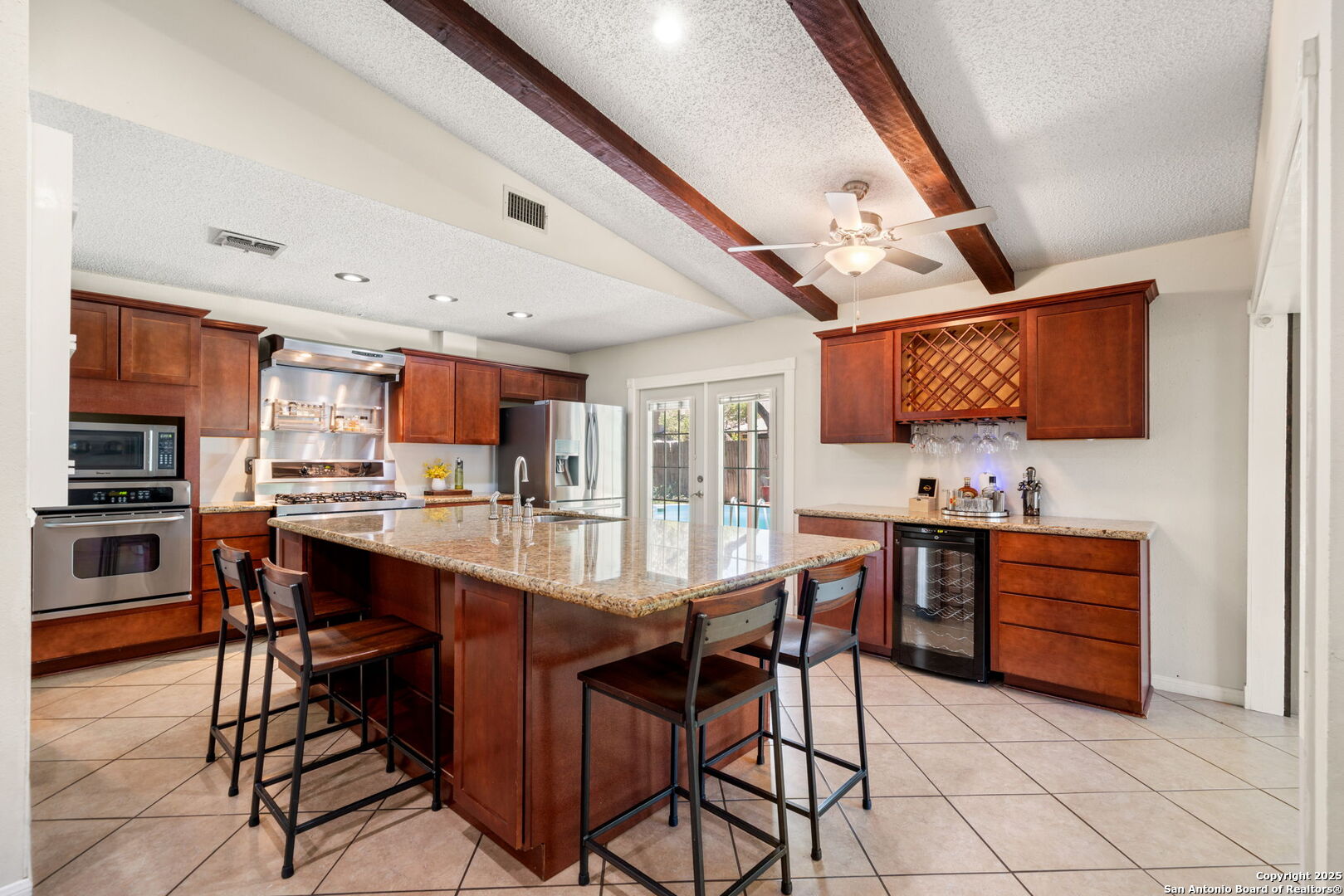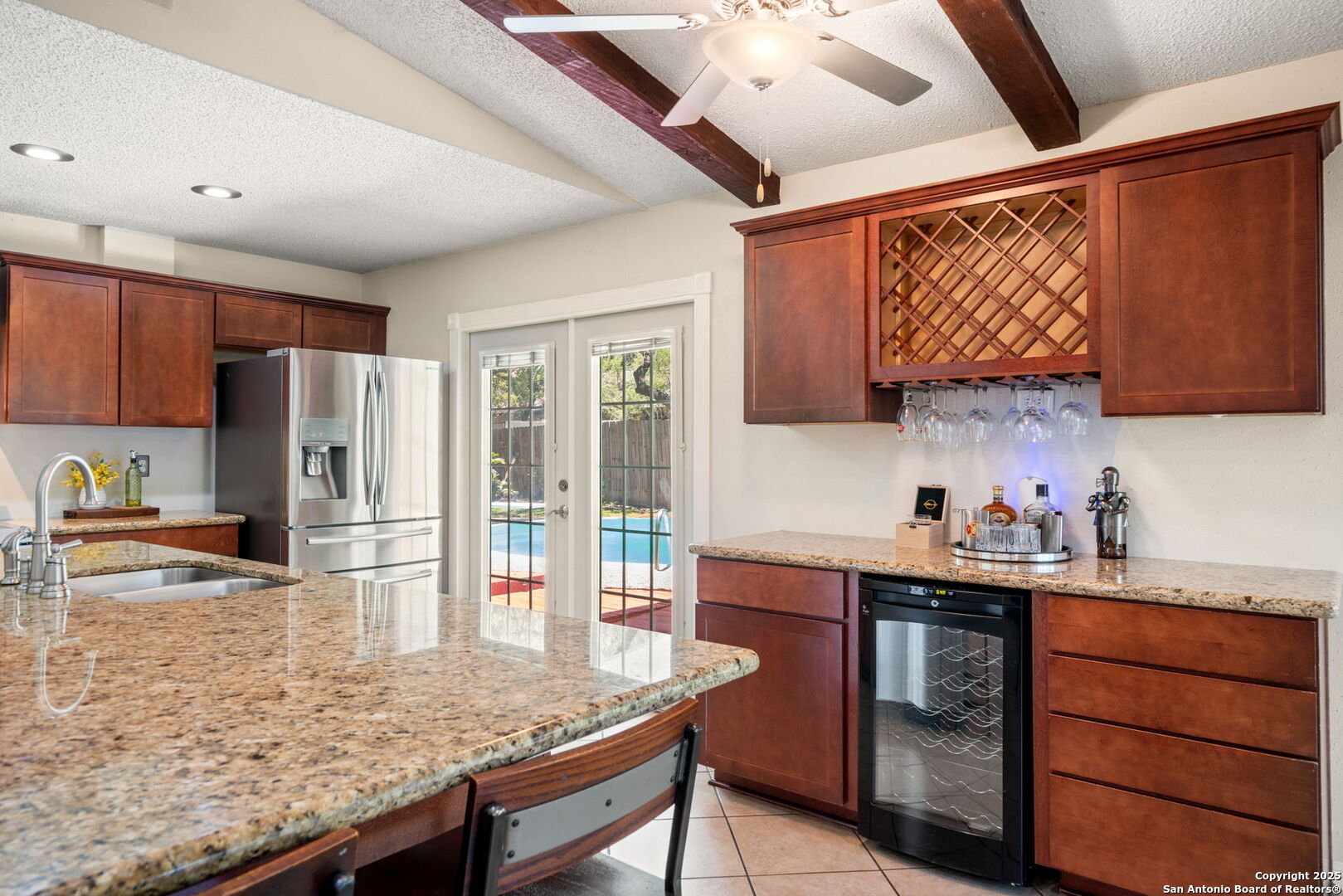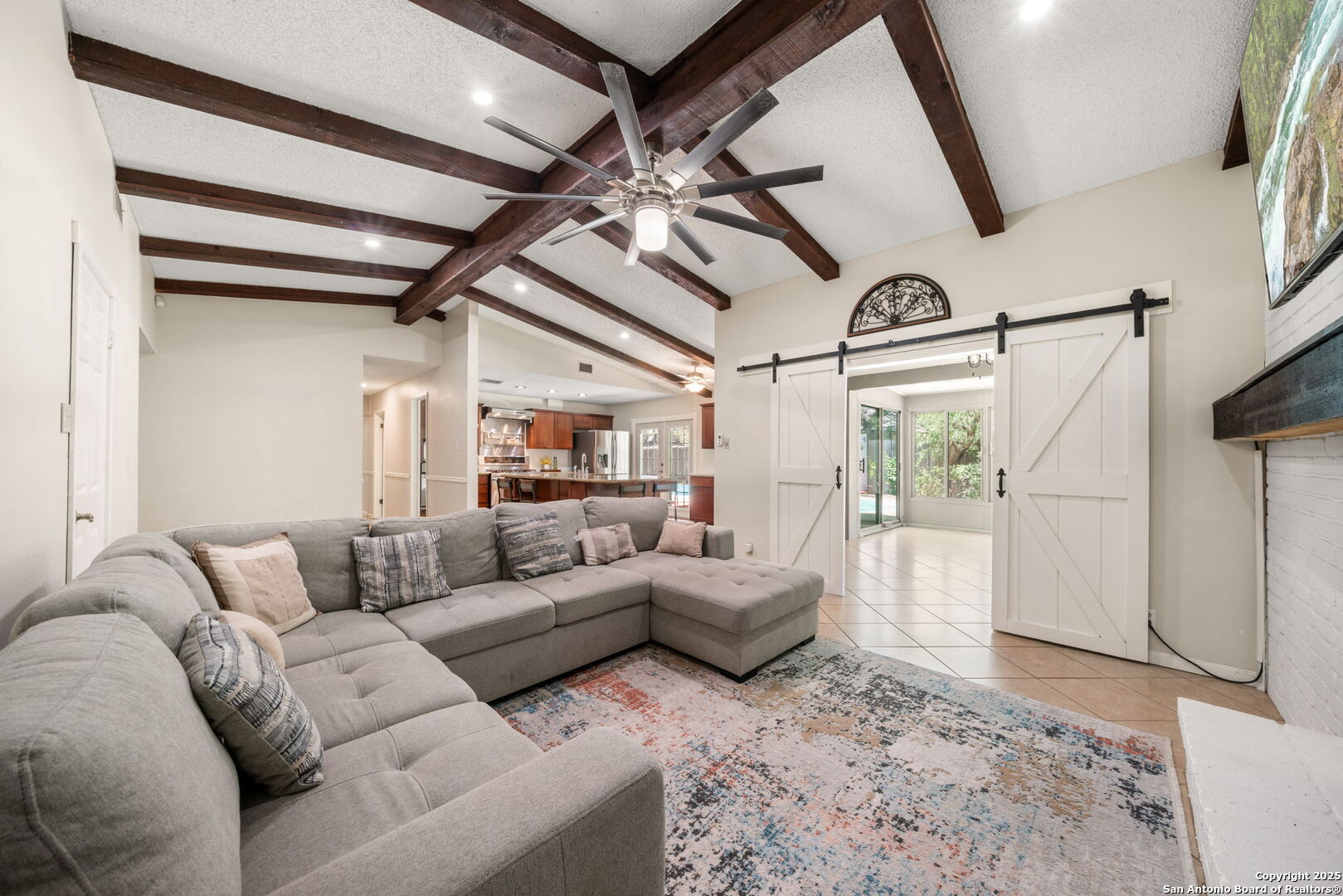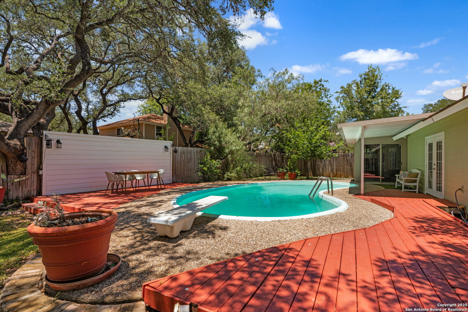 Come tour this beautiful, well maintained home that is tucked away in a culdesac in Tanglewood located off I-10 and De Zavala. Rare find of a 1/4-acre lot that has the perfect blend of charm, space, and convenience. Step inside to find soaring vaulted ceilings with rich wood beams, a large living area with custom barn doors, and a seamless open layout perfect for entertaining. The chef's kitchen is a true showstopper-boasting granite countertops, stainless steel appliances, a gas range, wine fridge, and an oversized island with seating. Whether you're cooking for family or hosting guests, this space delivers. Step outside to your private backyard oasis complete with mature oaks, an expansive deck, and a sparkling in-ground pool-ideal for summer lounging and weekend gatherings. This home offers the rare opportunity to own a spacious, character-filled property with modern touches in one of the most convenient areas of Northwest San Antonio. **ADDITIONAL 200 SF from sunroom not included in BCAD SF**