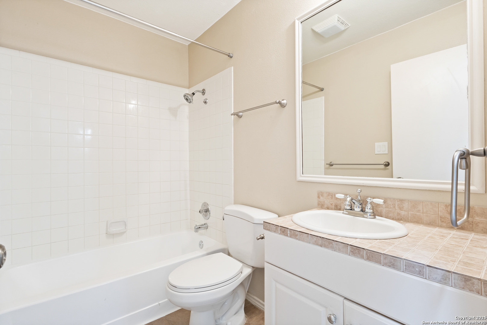 Discover the perfect place to come home to, with this charming 2-bedroom, 2.5-bath townhome, ideally located near the Medical Center, schools, shopping, and entertainment. Enjoy convenient access to I-10, allowing you to reach any destination in San Antonio within approximately 30 minutes. As an end unit, this townhome offers added privacy, not being nestled between two walls. The dining room features a large picture window that fills the space with natural light. The primary bedroom includes a loft, providing ample extra storage. Upstairs, you'll find two full bathrooms-one for each bedroom-a feature that sets this unit apart from many others. The back patio is enclosed with a privacy fence, a unique benefit within this community. Plus, a pool and spa are just a short walk away, perfect for relaxing on warm summer days. Don't miss this opportunity-schedule your tour today!