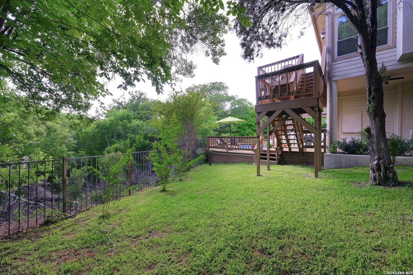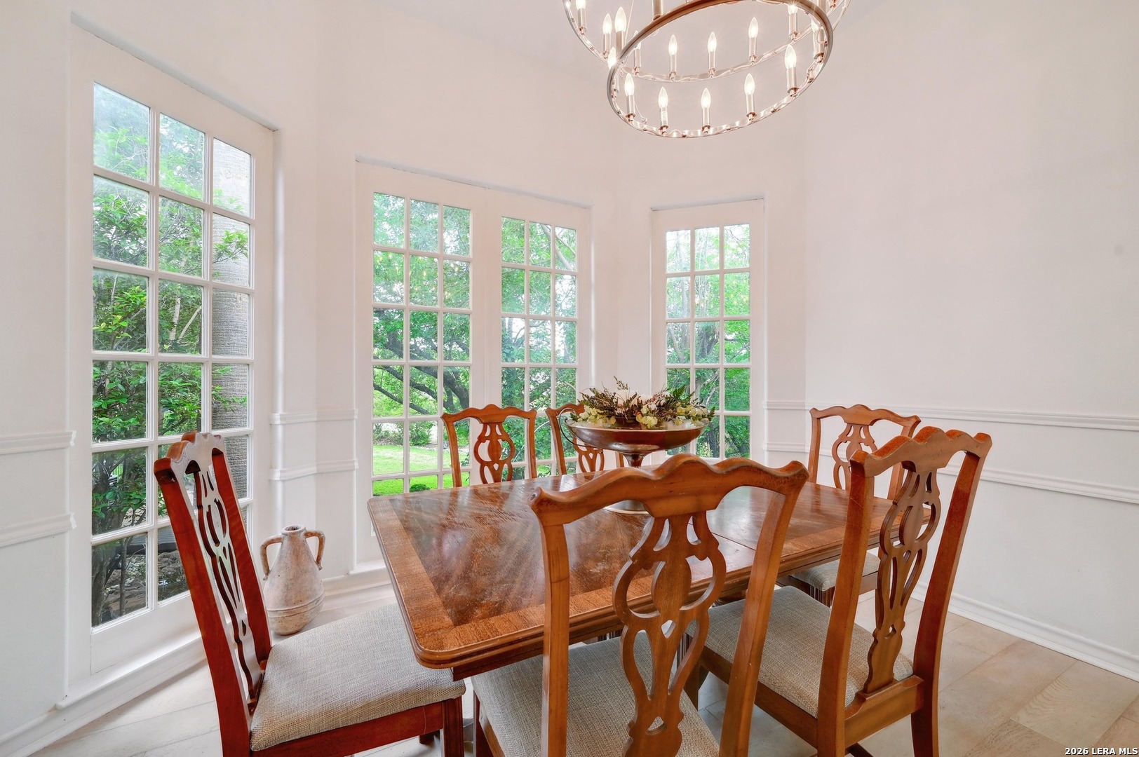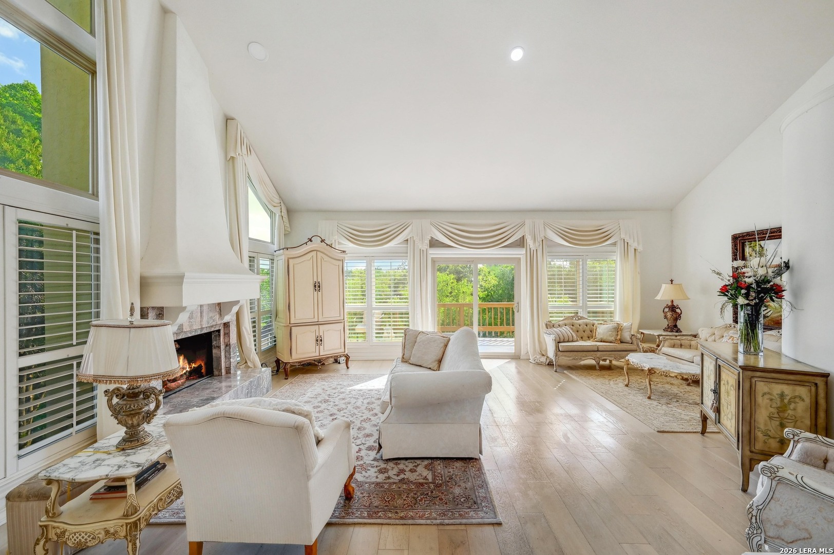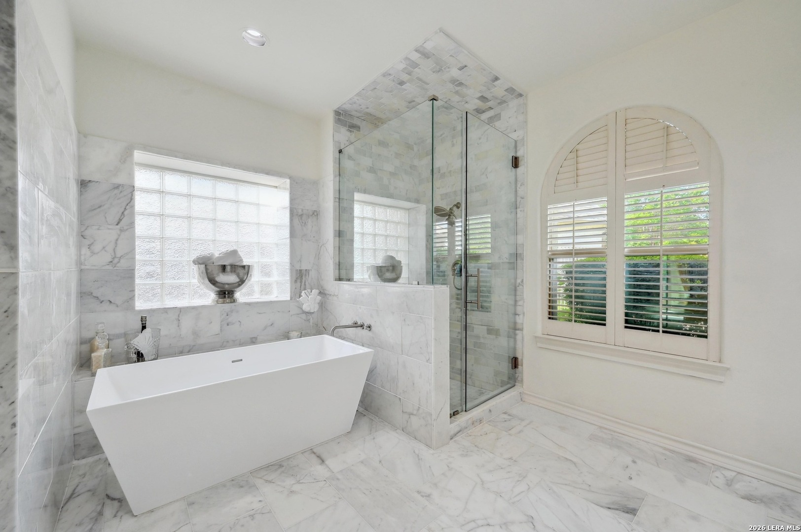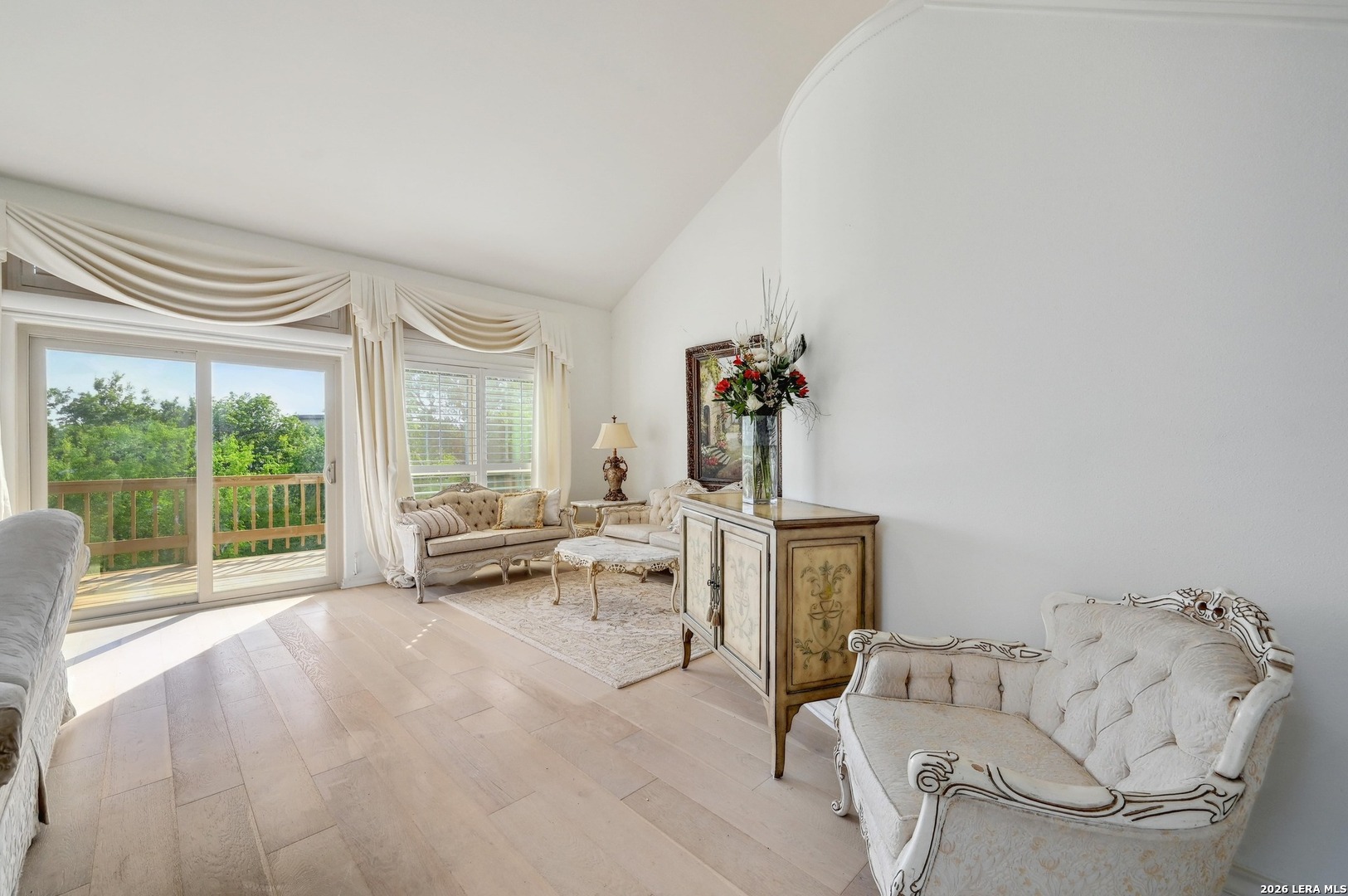 Tucked away on a quiet cul-de-sac in the prestigious Elm Creek community, this beautifully updated residence offers the perfect blend of luxury, privacy, and natural beauty. Situated on a hill and backing to a lush greenbelt, this property provides exceptional privacy-you'll truly feel like you're living in your own secluded retreat. Step inside to discover stunning modern hardwood floors flowing throughout the main level. The formal living and dining areas offer elegant spaces for entertaining, seamlessly connecting to a scenic balcony where you can enjoy peaceful tree-top views and breathtaking sunsets. The chef's kitchen is a true centerpiece, featuring beautiful quartzite countertops, custom cabinetry, and a light-filled breakfast nook surrounded by windows. It's the perfect combination of style and functionality for both everyday living and hosting. The primary suite, conveniently located on the main floor, offers a private escape with direct access to a hot tub and serene views of the sparkling pool and lush surroundings. The fully renovated primary bathroom showcases quartz countertops, custom cabinetry, a modern freestanding soaking tub, and an oversized walk-in shower. Upstairs, you'll find three bedrooms and a versatile loft ideal for a second living area, playroom, or creative workspace. One bedroom, highlighted by rich wood paneling, makes for an exceptional home office. A Jack-and-Jill bathroom connects two of the bedrooms, while both upstairs baths have been thoughtfully updated with granite countertops, new tile, and modern fixtures. The lower level opens to an inviting outdoor living space complete with a pool, outdoor kitchen, and a generously sized pool bath-perfect for effortless entertaining and convenience during warm Texas days. The backyard is truly a private oasis-lush, peaceful, and designed for both relaxation and gatherings. Whether you're enjoying a swim, hosting guests, or unwinding in the hot tub under the stars, this home offers a lifestyle that is both elevated and serene.