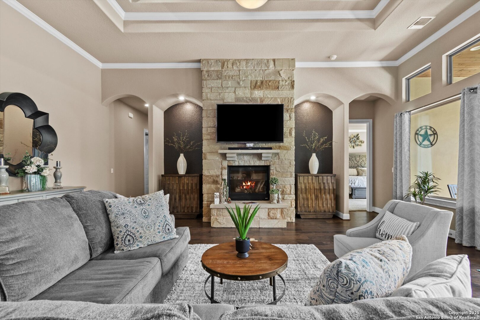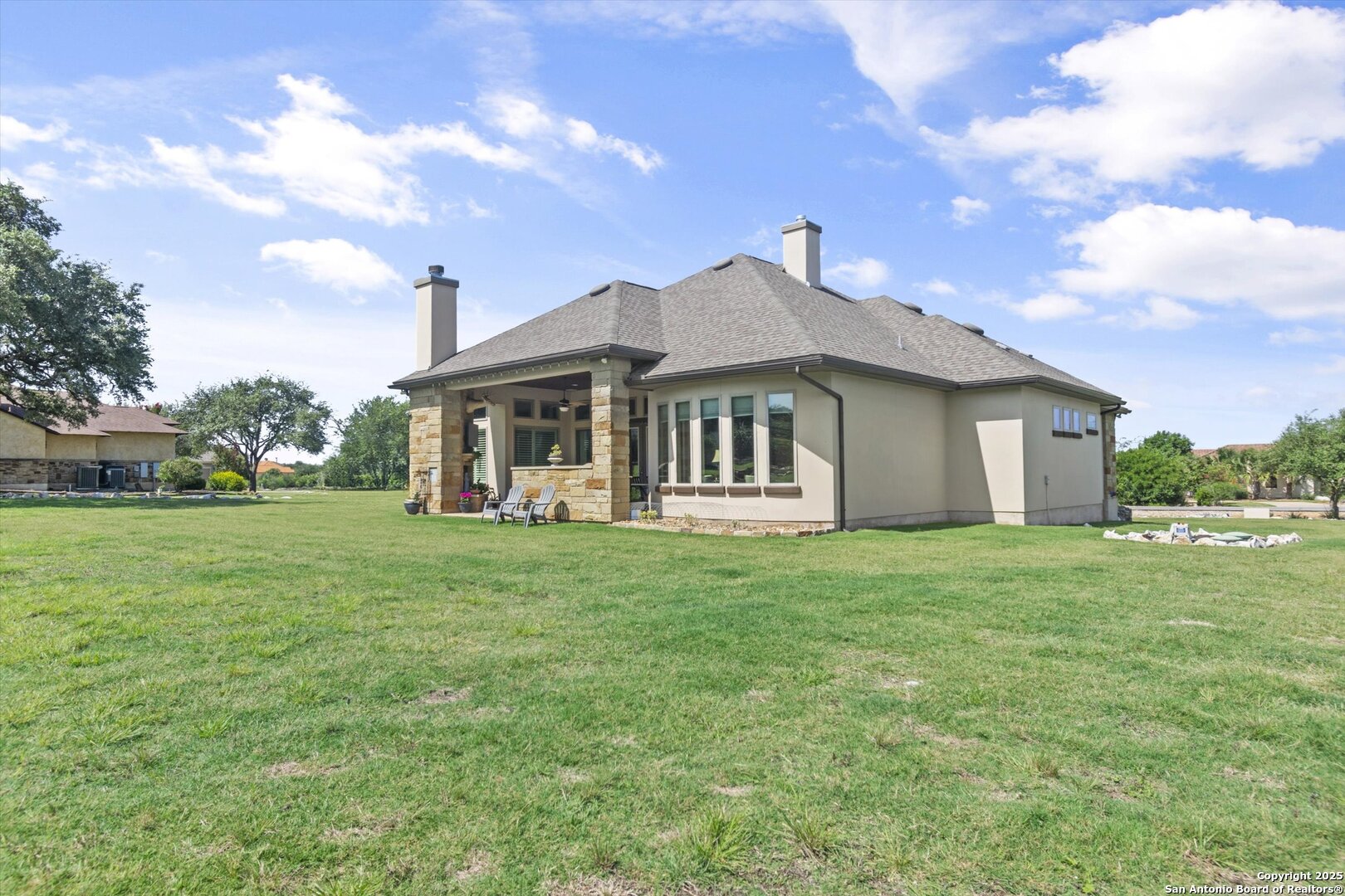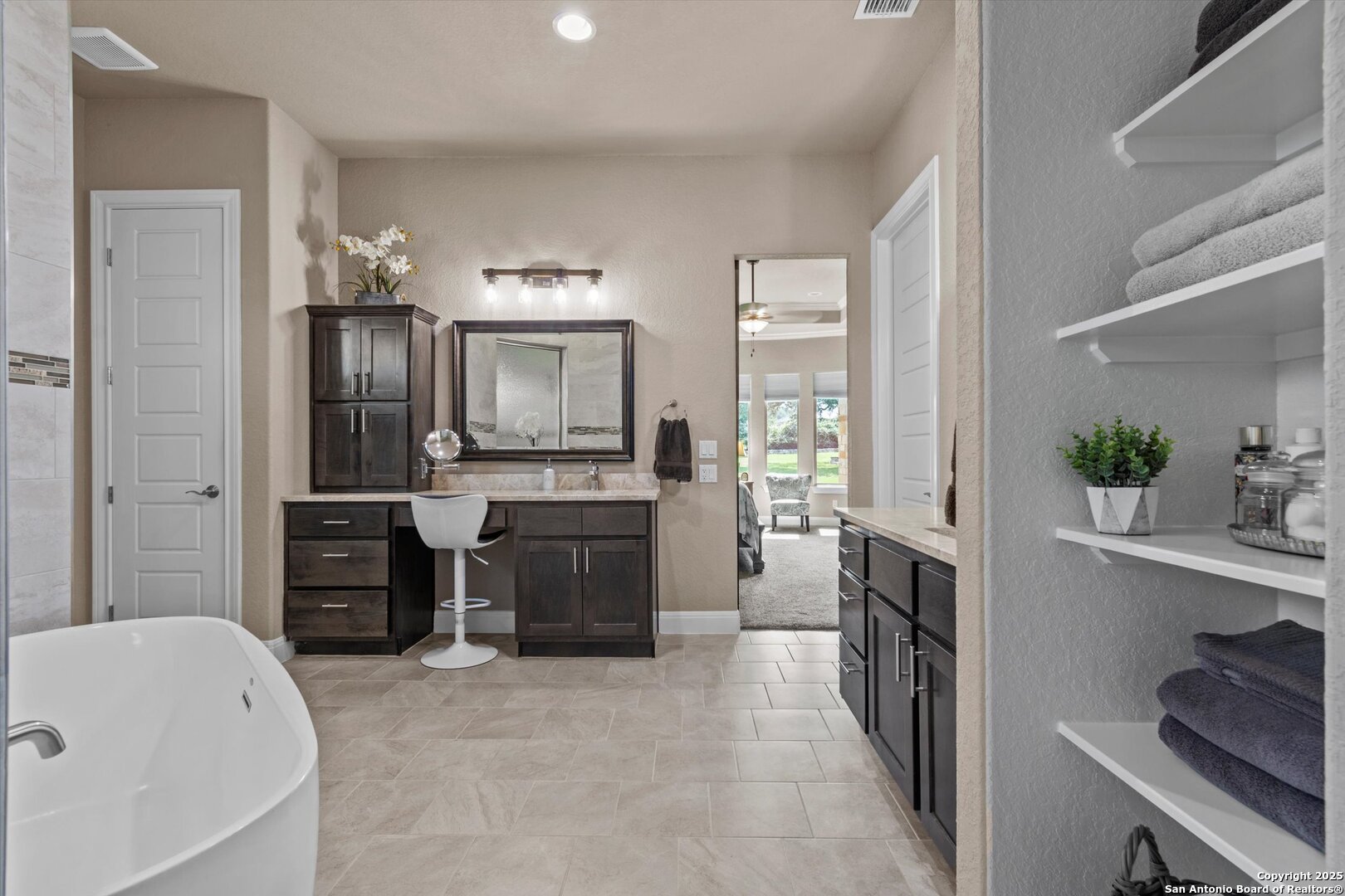 Meticulously cleaned and exceptionally cared for, this home has never housed pets or children, offering a like-new living experience. Step through the elegant foyer to find a private office to your left and a formal dining room to your right-ideal for both productivity and entertaining. The spacious, open-concept living area features soaring ceilings, a cozy breakfast nook, and picturesque views of the professionally landscaped backyard. The kitchen flows effortlessly into the living room, creating a warm, inviting space for gatherings. Two generously sized secondary bedrooms share a full bath, while the oversized primary suite offers a tranquil retreat complete with a garden tub, walk-in shower, and a large walk-in closet. Additional highlights include an owned water softener, a front yard spring irrigation system, and a backyard drip system. The kitchen is currently equipped with an electric stove but is prepped for gas conversion, with a connection to a 500-gallon buried propane tank. Elegant wood shutters are featured throughout the home, except in the primary suite. Backing to scenic walking trails, the backyard offers both privacy and a peaceful outdoor escape. Residents of Vintage Oaks enjoy resort-style amenities including newly installed pickleball courts, two pools, a lazy river, a state-of-the-art fitness center, playground, and more.