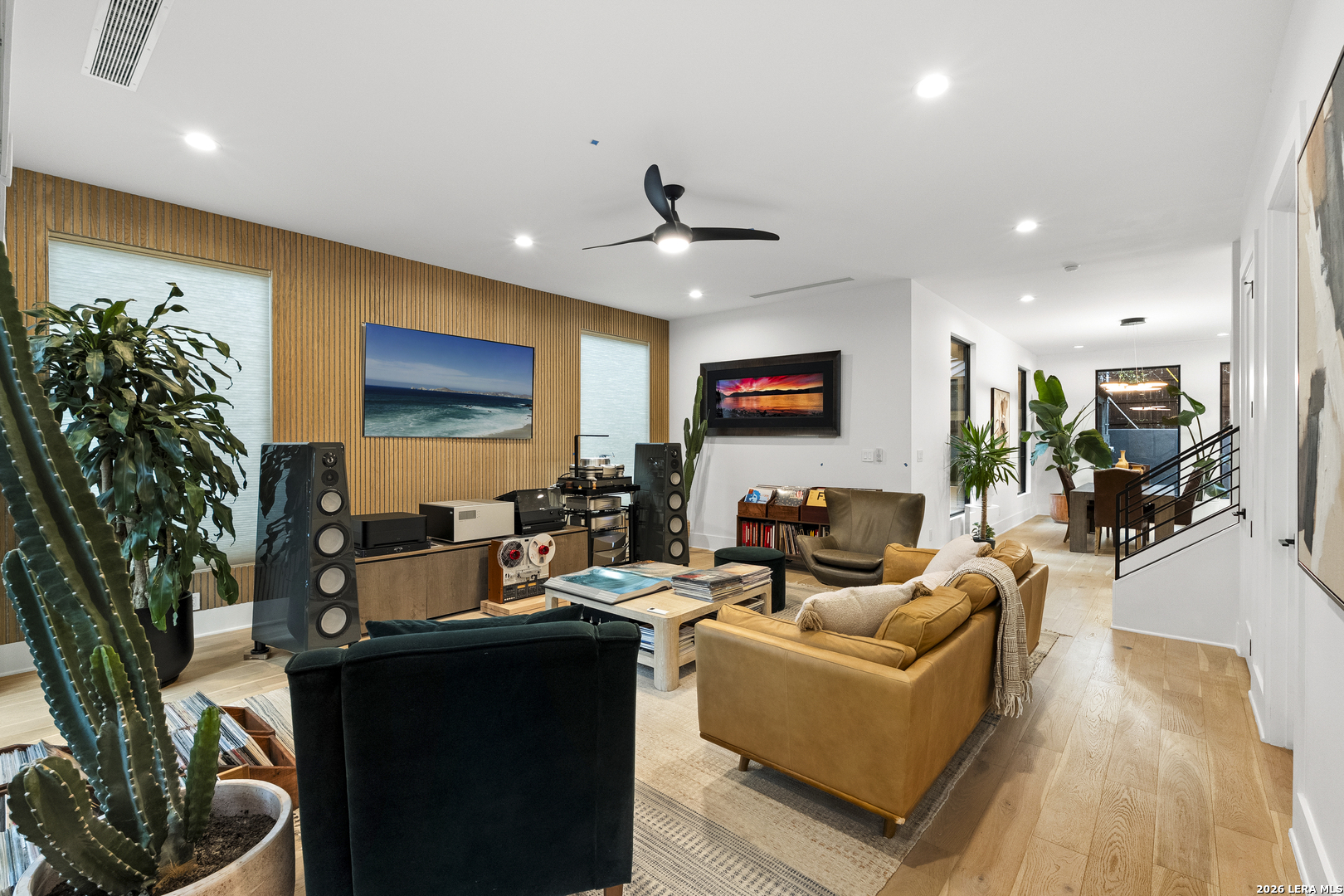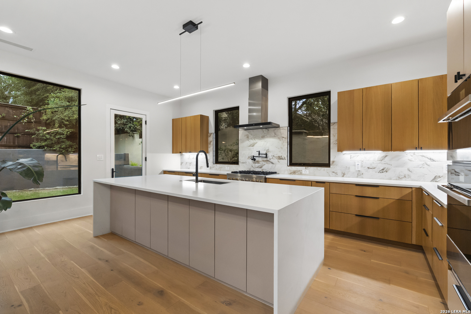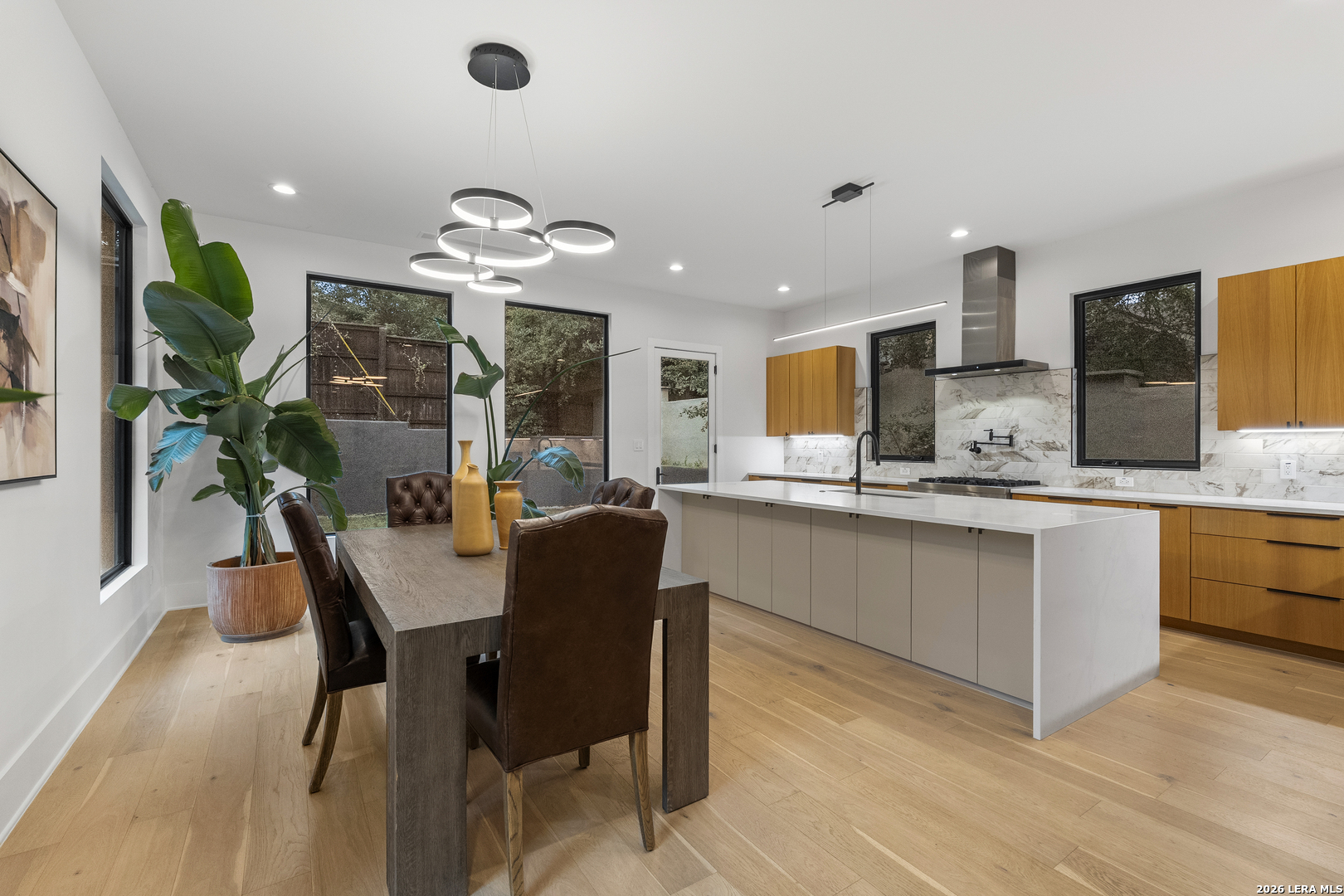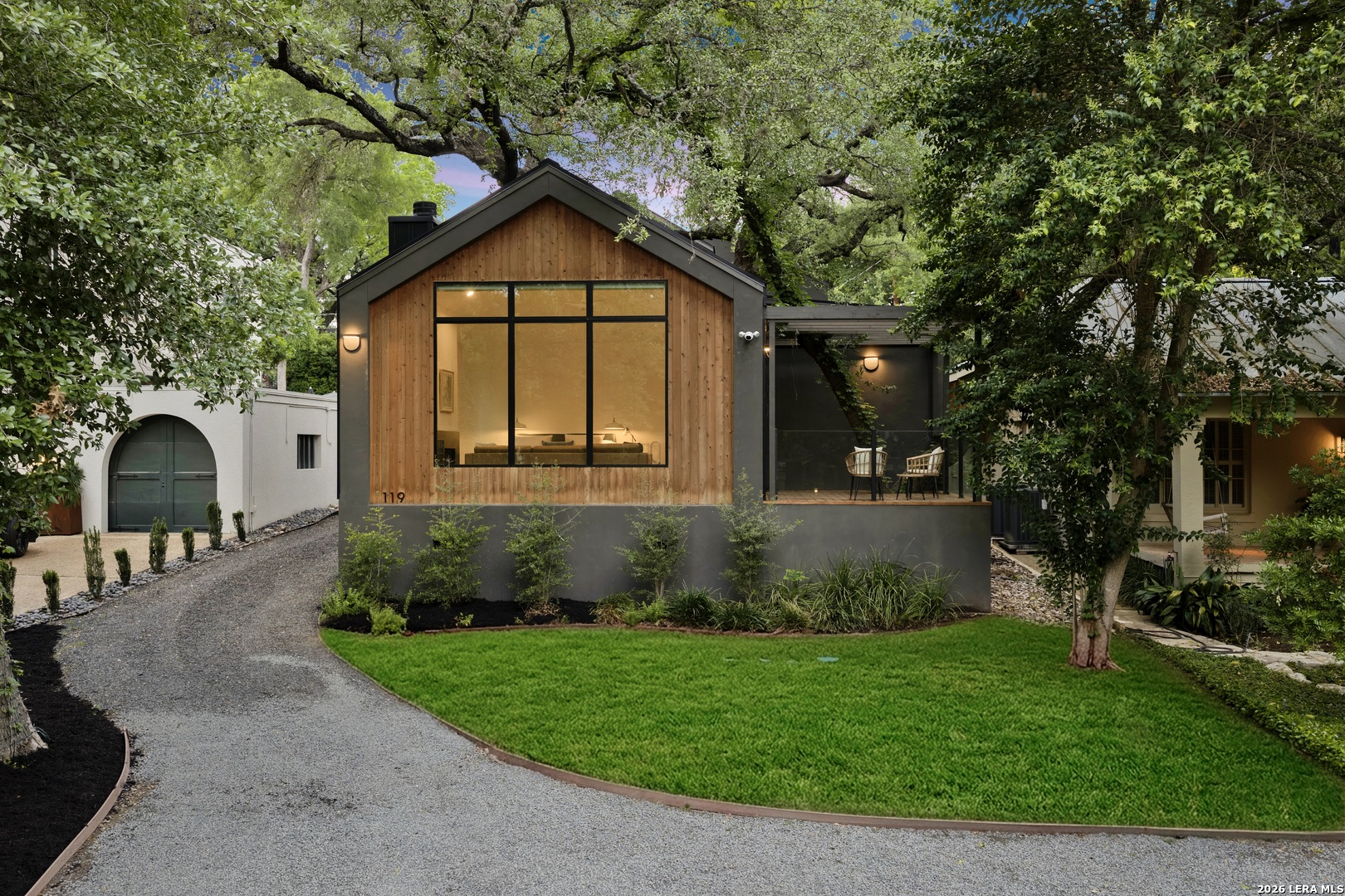 119 Grant Ave - Alamo Heights Nordic in spirit. Restrained, deliberate, and built around light. Set among mature oaks, the home presents a clean, modern composition where architecture and landscape move as one - open, grounded, and quietly precise. Lines are simple. Materials are honest. The focus remains on livability. The main living space unfolds as a single, continuous volume. Light carries through it without interruption, connecting seamlessly to a chef's kitchen defined by custom cabinetry, premium stainless appliances, and an oversized island designed for both gathering and daily use. The primary suite is positioned on the main level - elevated ceilings, a fireplace, and a bath that reads as a private retreat. A soaking tub, walk-in shower, and dual vanities arranged with clarity and intention. A secondary first-floor suite introduces flexibility - guest room, office, or studio - without disrupting the flow of the home. Upstairs, a generous game room opens to treetop views. Two additional bedrooms follow, including one with a private bath, maintaining separation without excess. Material choices remain disciplined - stucco and wood, anchored by a striking metal roof and strong, contemporary lines. Nothing unnecessary. Nothing overstated.