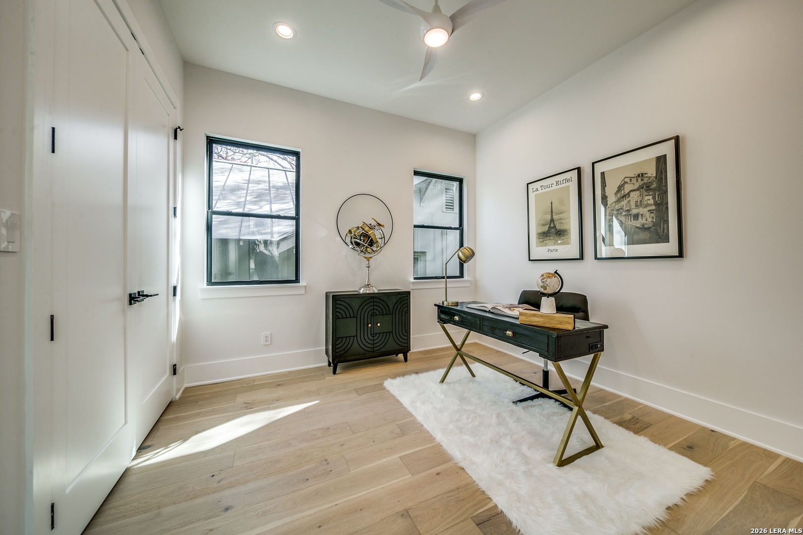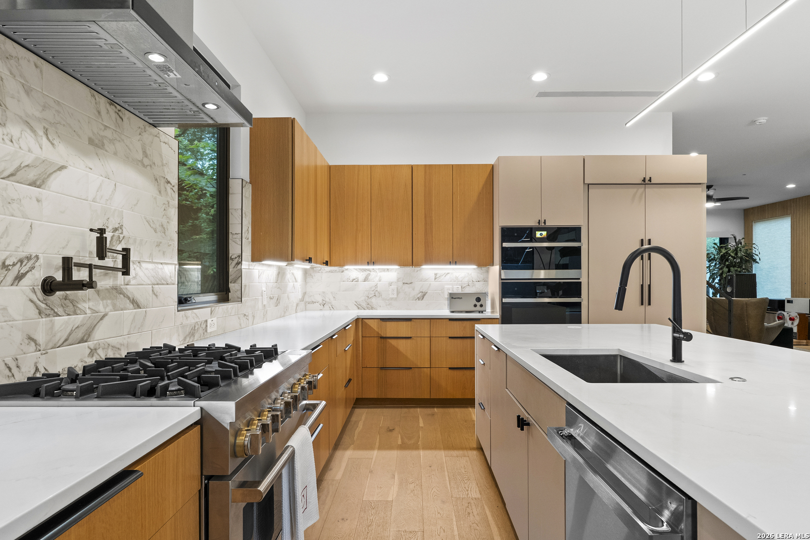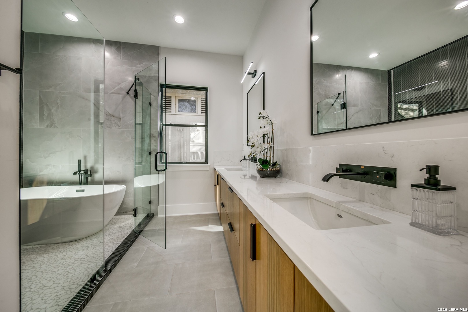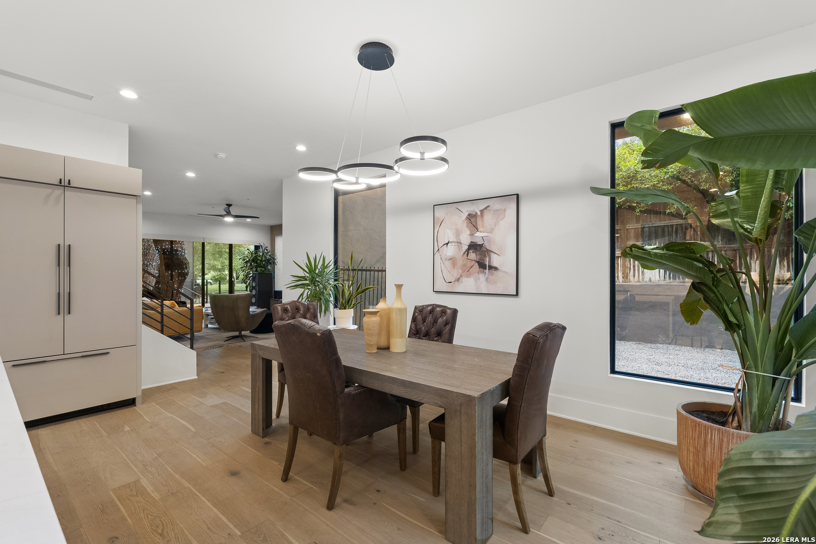 119 Grant Ave - Alamo Heights Nordic in spirit. Restrained, deliberate, and built around light. Set among mature oaks, the home presents a clean, modern composition where architecture and landscape move as one - open, grounded, and quietly precise. Lines are simple. Materials are honest. The focus remains on livability. The main living space unfolds as a single, continuous volume. Light carries through it without interruption, connecting seamlessly to a chef's kitchen defined by custom cabinetry, premium stainless appliances, and an oversized island designed for both gathering and daily use. The primary suite is positioned on the main level - elevated ceilings, a fireplace, and a bath that reads as a private retreat. A soaking tub, walk-in shower, and dual vanities arranged with clarity and intention. A secondary first-floor suite introduces flexibility - guest room, office, or studio - without disrupting the flow of the home. Upstairs, a generous game room opens to treetop views. Two additional bedrooms follow, including one with a private bath, maintaining separation without excess. Material choices remain disciplined - stucco and wood, anchored by a striking metal roof and strong, contemporary lines. Nothing unnecessary. Nothing overstated.