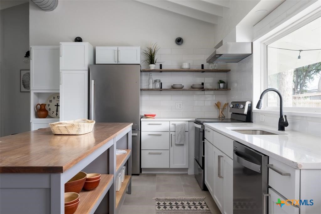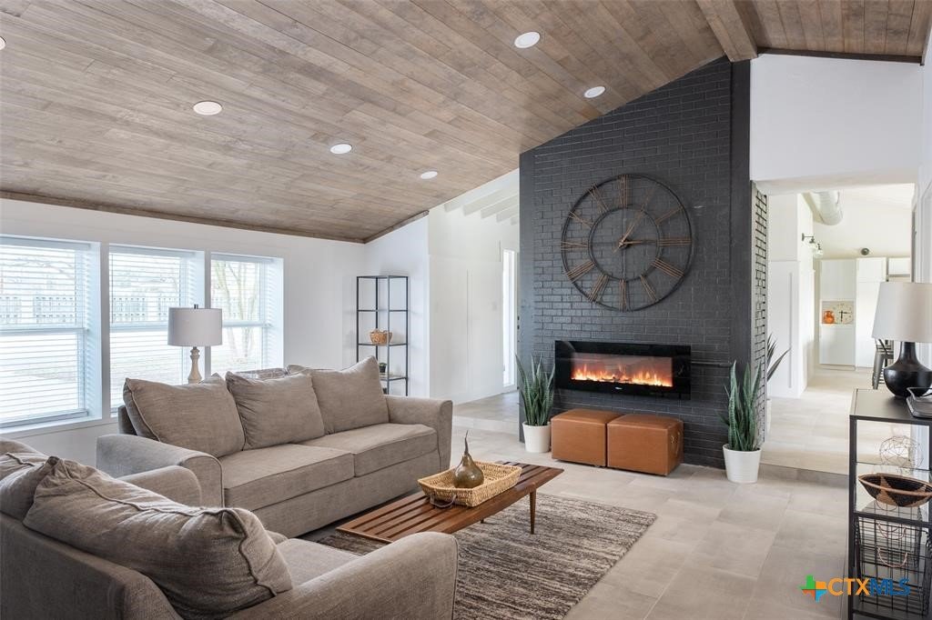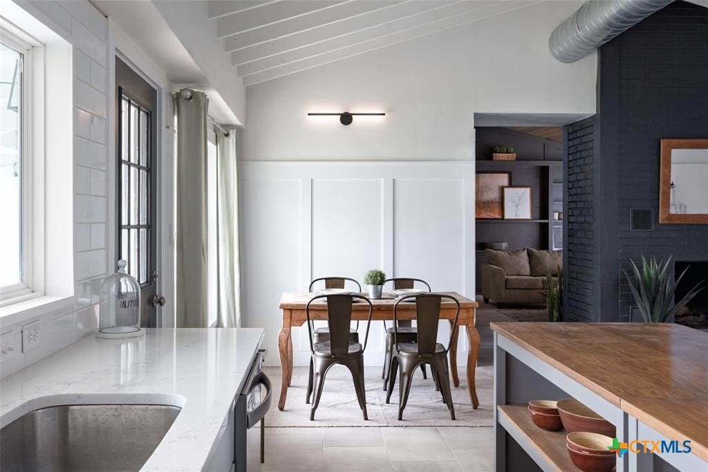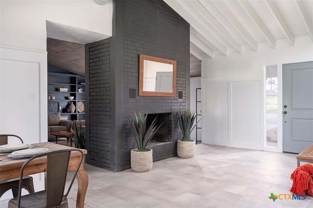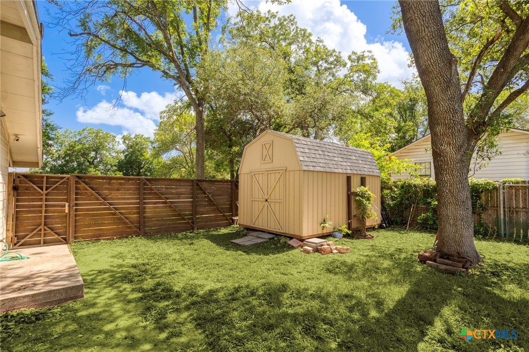 Step into style and comfort with this stunningly remodeled 3-bedroom, 2-bath home in the heart of Luling, Texas. Thoughtfully updated in 2022 with top-notch, modern finishes, this 1,826 sq ft home sits on a spacious 0.36-acre lot with dual road frontage and convenient back-alley access—providing both flexibility and curb appeal. As you enter, you're welcomed by a cozy fireplace in the foyer. The living room features a sleek electric fireplace—perfect for relaxing evenings or entertaining guests. Soaring vaulted ceilings with ample windows throughout the home create a bright, open feel while designer selected lighting adds a warm and modern touch. The kitchen is a true showstopper, designed with contemporary style and everyday convenience in mind. Whether you're a seasoned cook or love to host, this space is sure to impress. The oversized backyard is a blank canvas ready for your entertaining dreams—barbecues, fire pits, or even a future pool. A storage shed adds extra functionality for outdoor tools and gear. Located within walking distance to Luling schools and charming downtown Luling, this home blends convenience, space, and style in one incredible package. Don't miss your chance to own this modern gem with classic Texas charm!