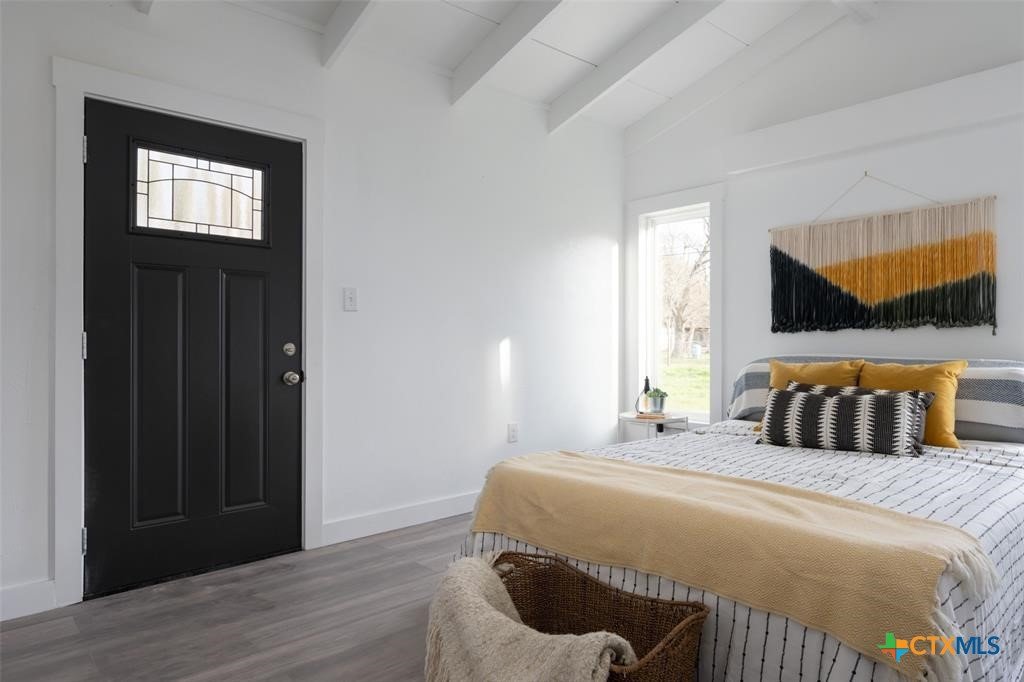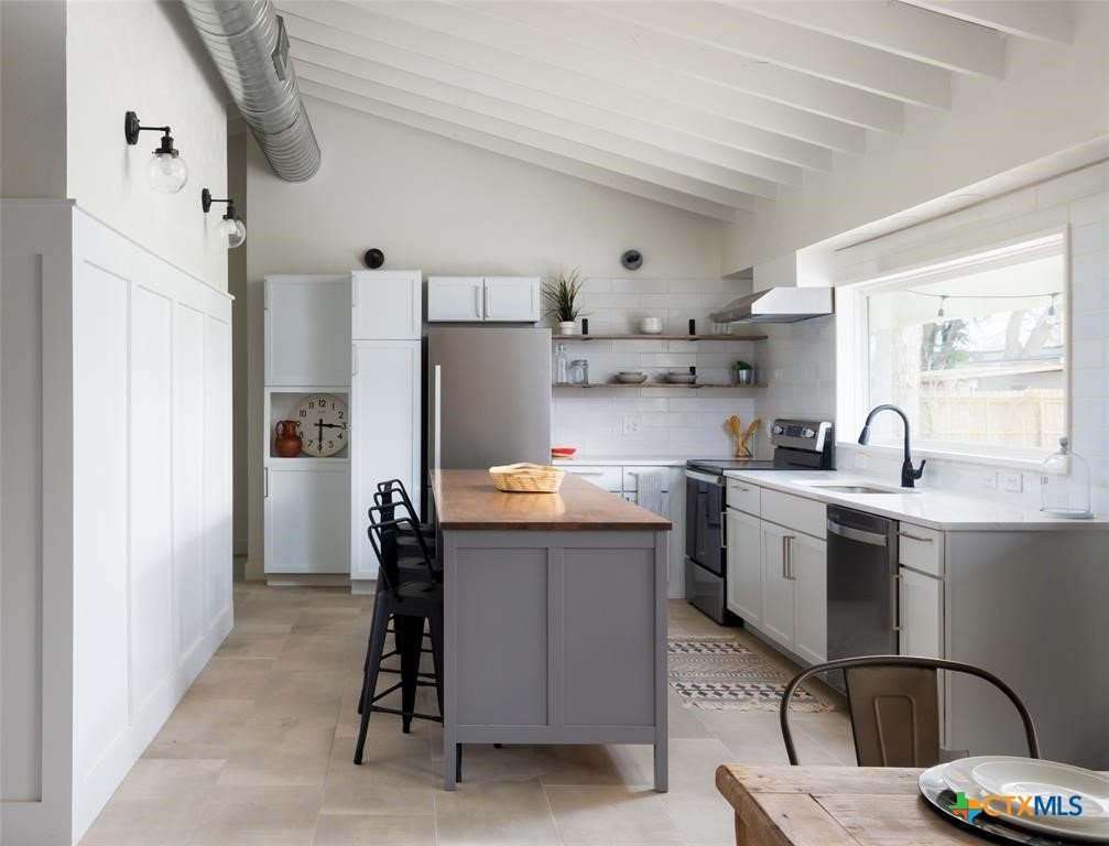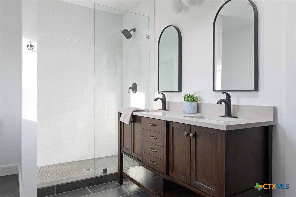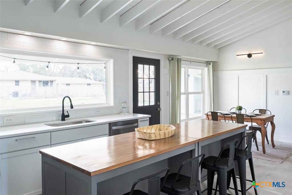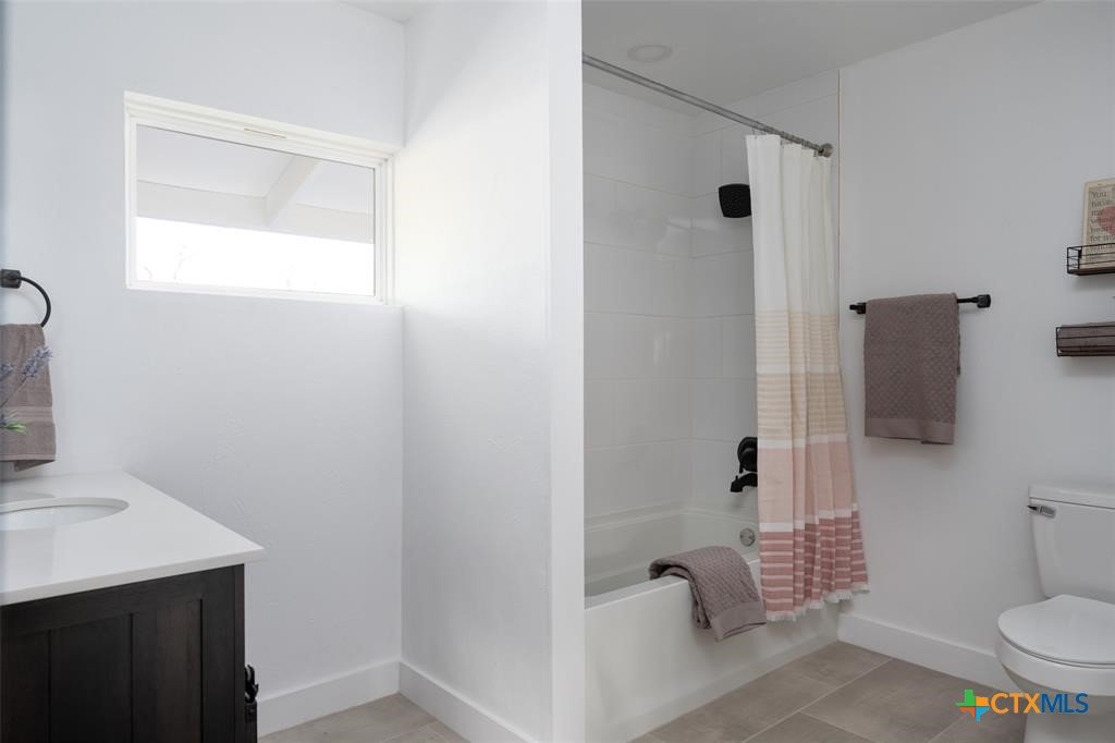 Step into style and comfort with this stunningly remodeled 3-bedroom, 2-bath home in the heart of Luling, Texas. Thoughtfully updated in 2022 with top-notch, modern finishes, this 1,826 sq ft home sits on a spacious 0.36-acre lot with dual road frontage and convenient back-alley access—providing both flexibility and curb appeal. As you enter, you're welcomed by a cozy fireplace in the foyer. The living room features a sleek electric fireplace—perfect for relaxing evenings or entertaining guests. Soaring vaulted ceilings with ample windows throughout the home create a bright, open feel while designer selected lighting adds a warm and modern touch. The kitchen is a true showstopper, designed with contemporary style and everyday convenience in mind. Whether you're a seasoned cook or love to host, this space is sure to impress. The oversized backyard is a blank canvas ready for your entertaining dreams—barbecues, fire pits, or even a future pool. A storage shed adds extra functionality for outdoor tools and gear. Located within walking distance to Luling schools and charming downtown Luling, this home blends convenience, space, and style in one incredible package. Don't miss your chance to own this modern gem with classic Texas charm!