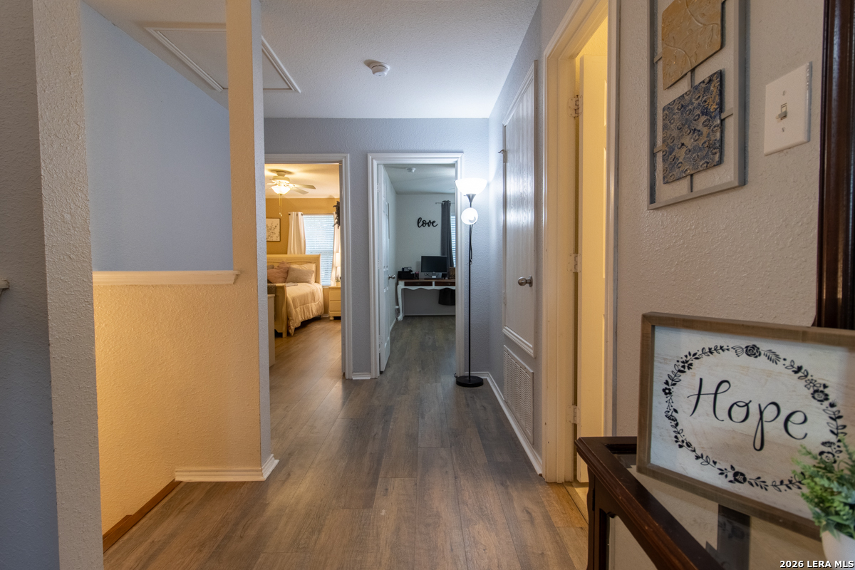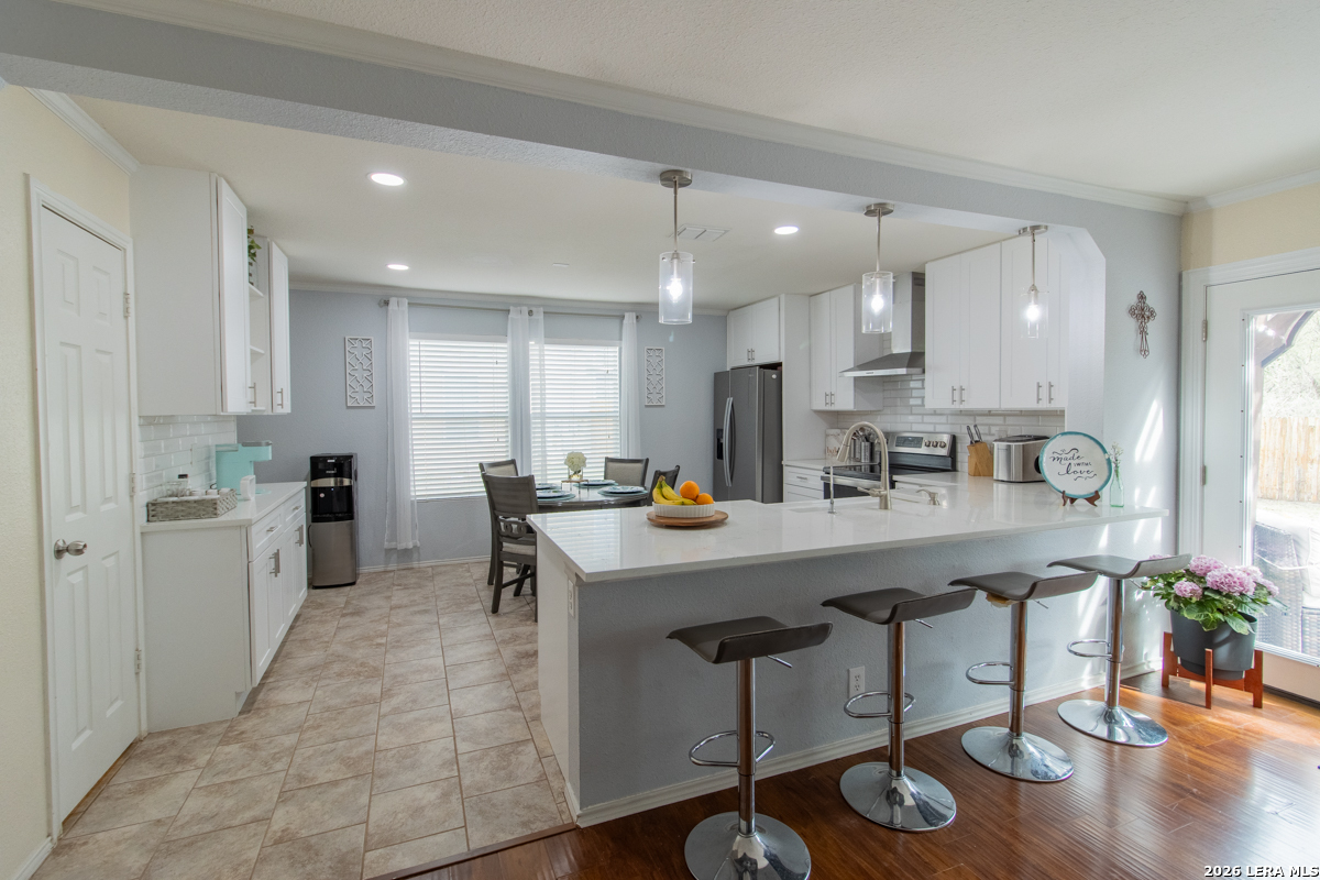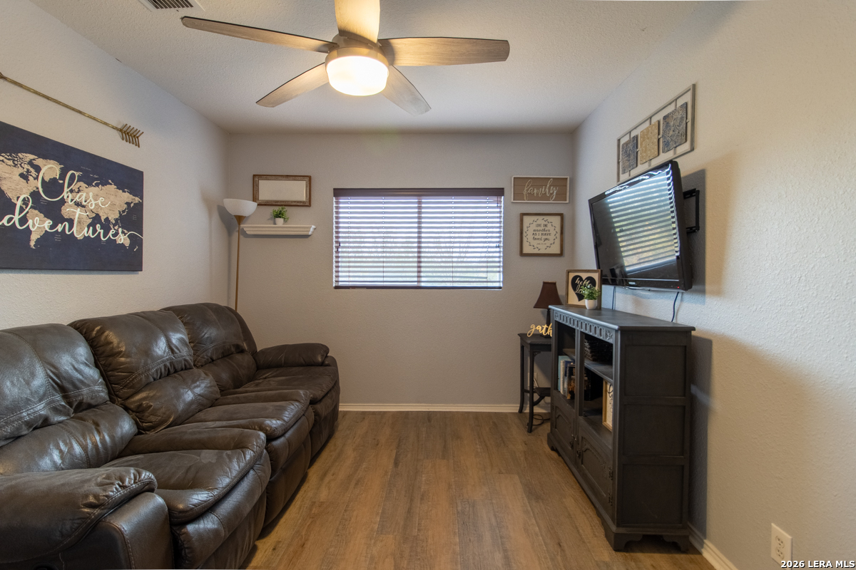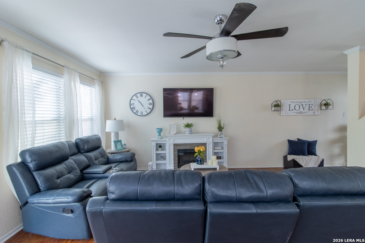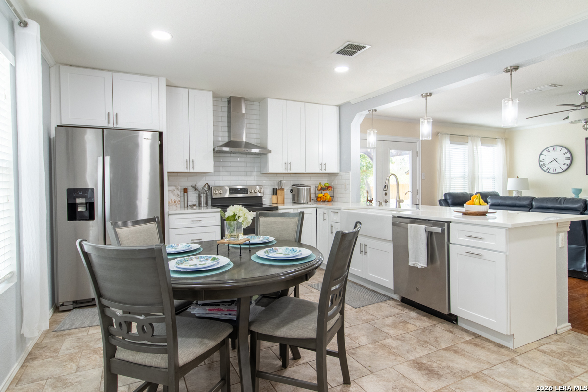 Honey, STOP the car! This stunning, tastefully updated home backs to a GREENBELT and delivers the modern upgrades buyers have been waiting for in Silver Oaks. Step inside to a fully refreshed interior featuring laminate and tile flooring, fresh designer paint, updated plumbing fixtures, crown molding, and new lighting throughout. The heart of the home is a true showpiece kitchen with white shaker cabinets, quartz countertops, tile backsplash, stainless steel appliances, porcelain farmhouse sink, tile flooring, and a custom breakfast & coffee bar that elevates your morning routine. Both bathrooms have been upgraded with new vanities, flooring, sinks, faucets, and toilets, giving the home a clean, modern feel from top to bottom. The bright, open layout offers comfortable living spaces perfect for entertaining or relaxing. Step outside thru your French doors to your private backyard oasis - no rear neighbors, just peaceful greenbelt views. Enjoy evenings on your composite deck with pergola, ideal for grilling, gatherings, or quiet unwinding. Attractive front yard landscaping and shade trees add curb appeal from the moment you arrive. Located near top-rated schools, shopping, Government Canyon State Park, and major commuter routes, this home delivers the upgrades buyers want at a value that's hard to beat. Homes with these extra finishing touches do not last. Schedule your showing today! Thank you for looking!