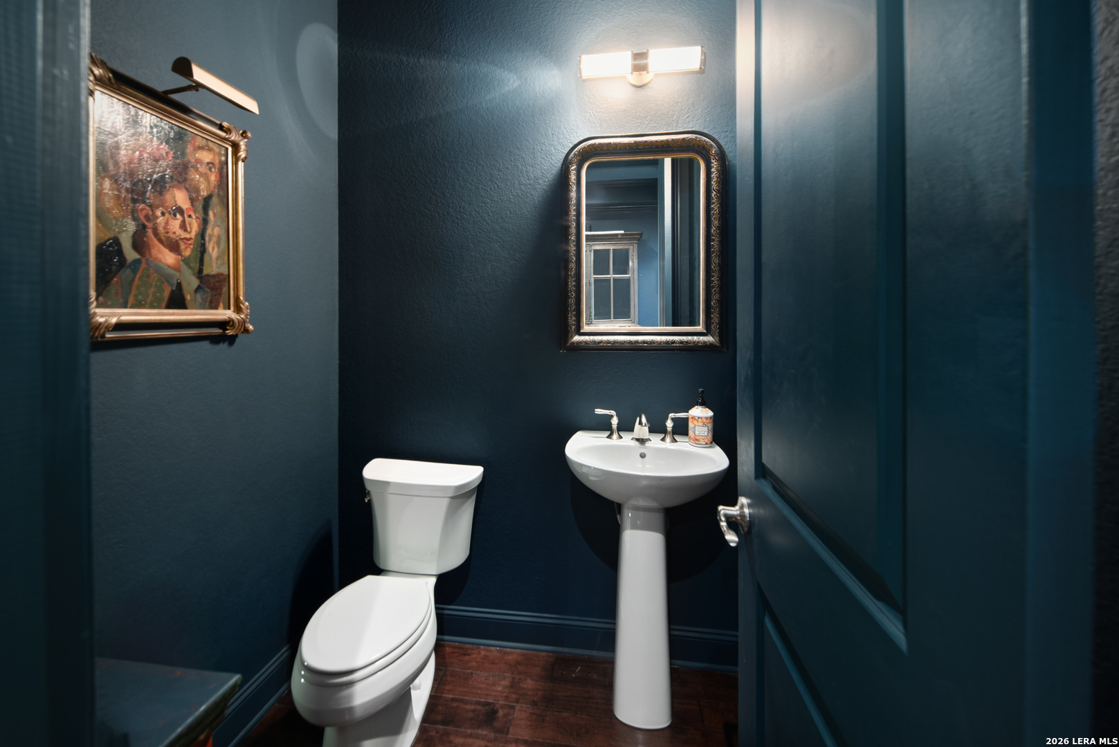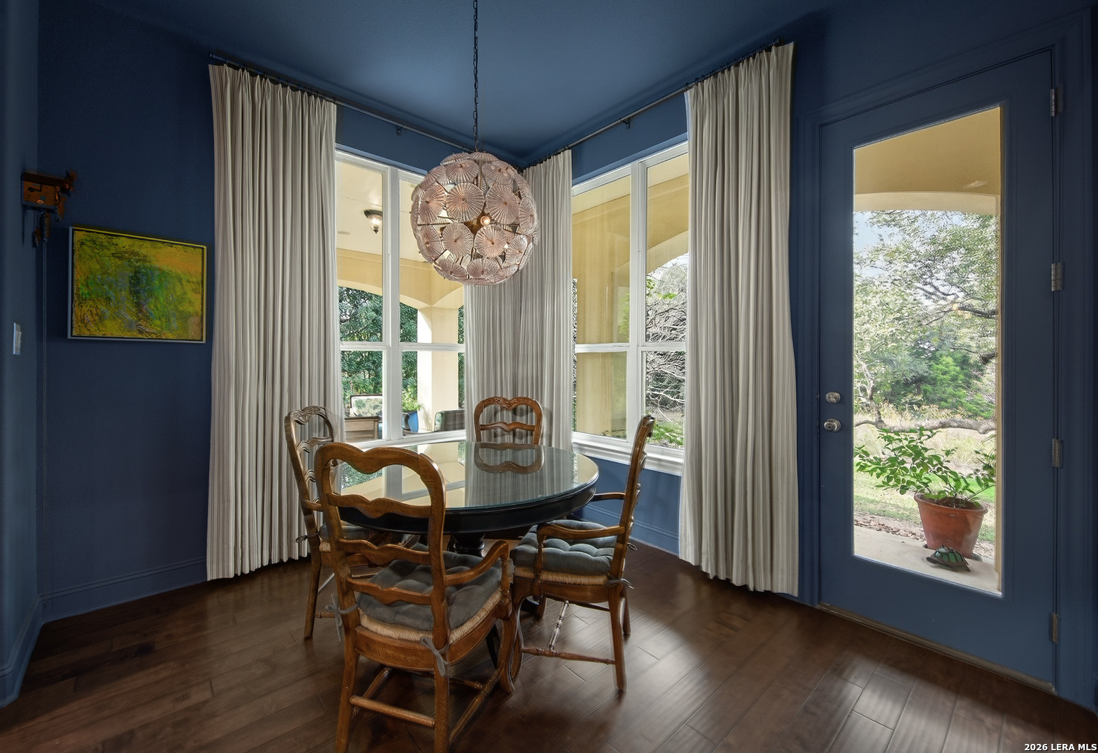 Beautifully sited on a lush cul-de-sac, greenbelt lot in the exclusive gated community of Estates of Alon, this home is stylishly elevated for sophisticated living. A true entertainer's home, the curb appeal is accentuated by lush plantings, verdant climbing ivy and mature trees. Elegant interior touches include a bold color palette, rich wood floors, custom art lighting, soaring ceilings, designer curated fixtures, a focal-point gas fireplace and a sweeping staircase to the second level. The well-equipped epicurean kitchen adjoins the formal dining by way of a spacious butler's pantry and features generous hard surface counter space, a huge island, gas cooking, imported backsplash details and a stainless appliance suite. A master retreat on the main level showcases a sizable walk-in closet, marble counters, tile and marble mosaic tile floors. The functional, open layout continues to the second level with a large game/media room, gorgeous guest suites and ample extra storage space. Enhancing the sophisticated feel of the home, the living areas effortlessly flow to the serene back covered patio, laden with mature greenery, massive oak trees and unrestricted views of the private space behind the home. This picturesque neighborhood has paved, shaded paths perfect for walking, running, and biking and offers a secluded park-like atmosphere. There is convenient access to the neighborhood for homeowners by two gates - one tucked away off Wurzbach Parkway and another for residents-only off NW Military Hwy. Don't miss the private pedestrian path and gate to the wonderful Alon Town Centre shopping center with HEB, Myron's Steakhouse, El Mirasol and more! Hardberger Park is across the street, which includes playgrounds, basketball courts, fields, a dog park, and paths for walking, hiking, and biking. The central location is highly coveted due to its proximity to Medical Center, Wurzbach Parkway, I-10,1604, great shopping and culinary destinations!