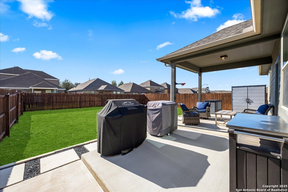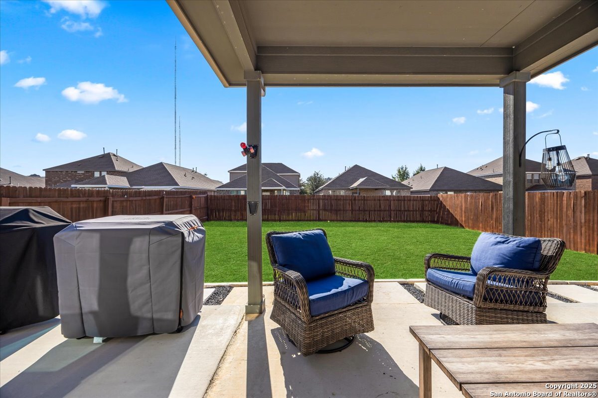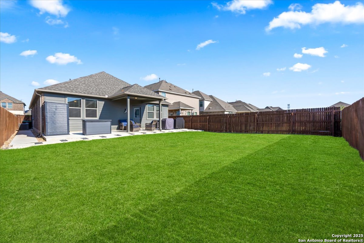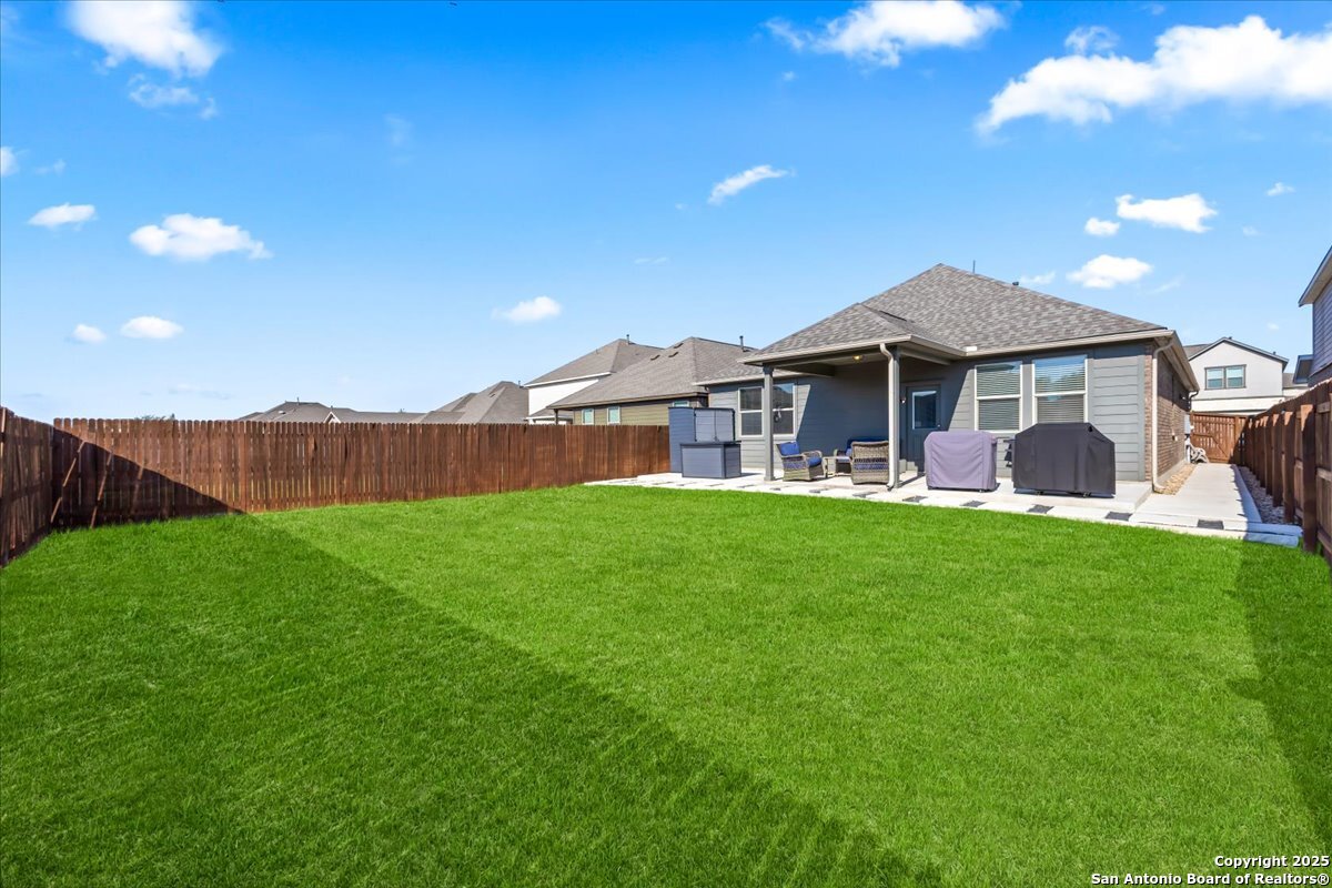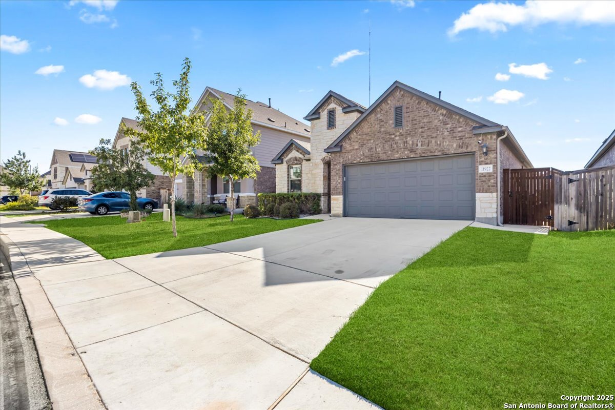 Welcome to 11922 Double Barrel, a charming 3-bedroom, 2-bathroom home located in the highly desirable Stillwater Ranch community. This thoughtfully designed 1,721 sq. ft. residence offers an open-concept layout where the spacious living area flows seamlessly into the kitchen and dining space. The kitchen boasts a large island with a single-basin sink, 42" upper cabinets with crown molding, quartz countertops, stainless steel appliances, and recessed lighting-perfect for everyday living and entertaining. The primary suite features a walk-in shower, generous closet space, and a bright, relaxing atmosphere. Updates include a brand-new roof (2024), as well as a $15,000 backyard transformation featuring an extended concrete patio with concrete walkways on both sides, and lush Tahoma 31 Bermuda grass that enhances the outdoor living space. Stillwater Ranch residents enjoy resort-style amenities including a pool, park, playground, tennis and basketball courts, and miles of walking trails-all just minutes from shopping, dining, and entertainment. Don't miss your chance to make this upgraded and move-in ready home yours!