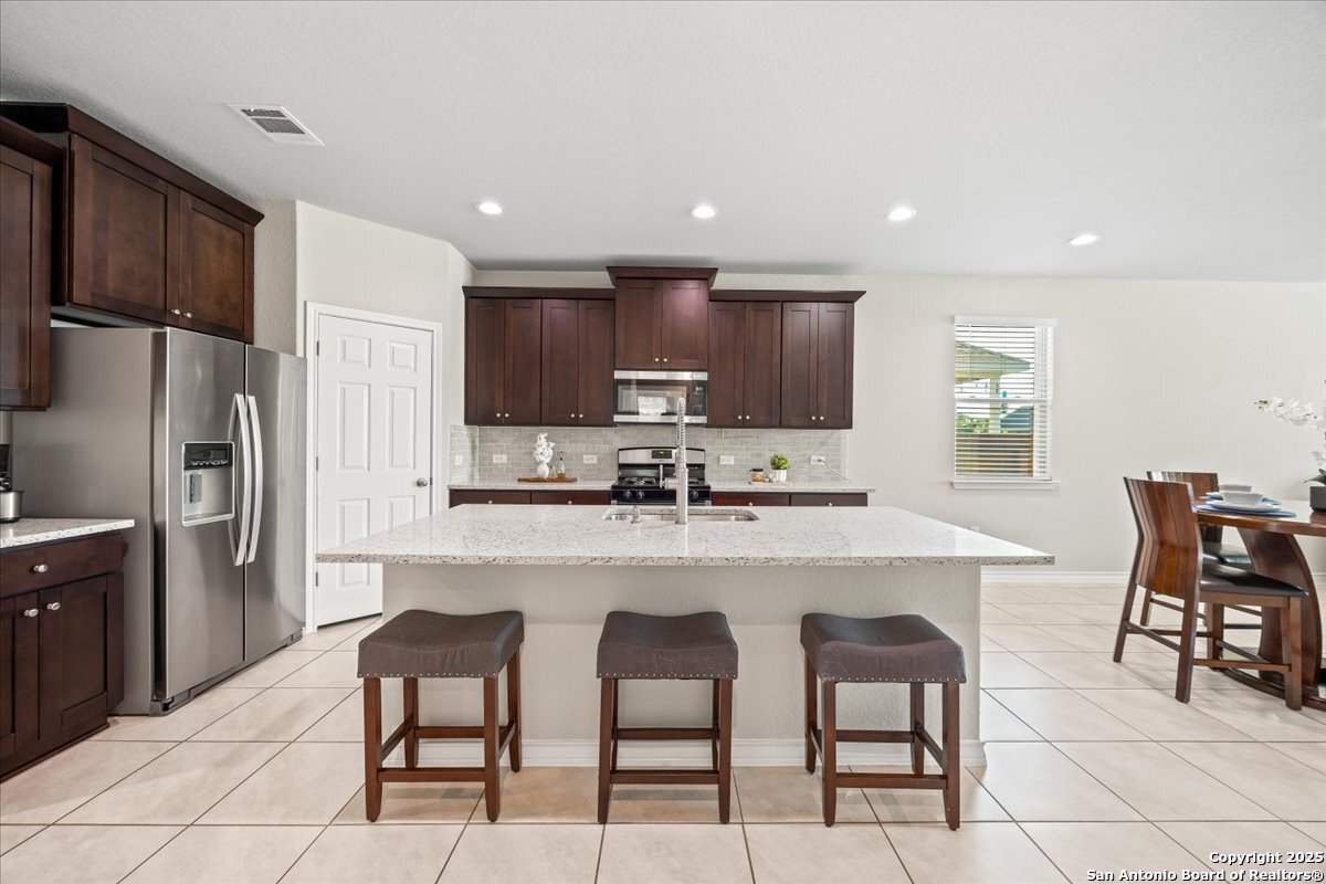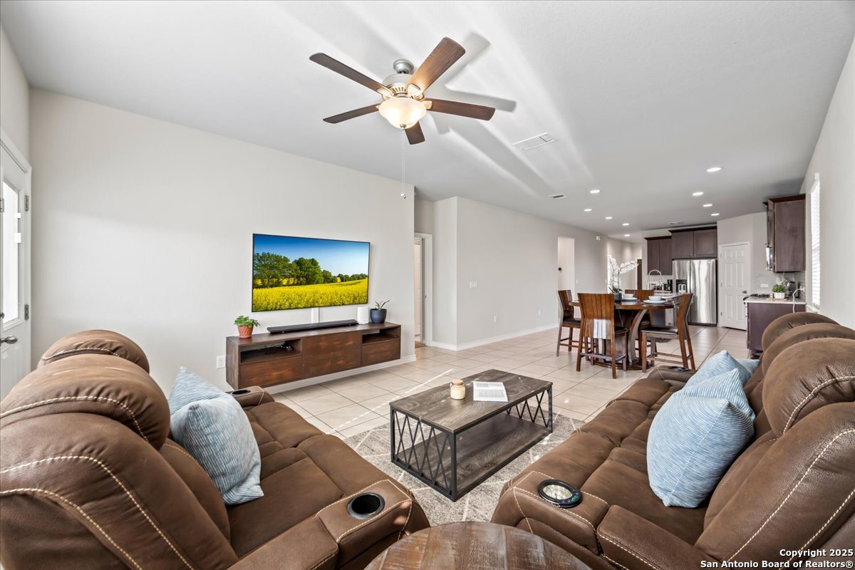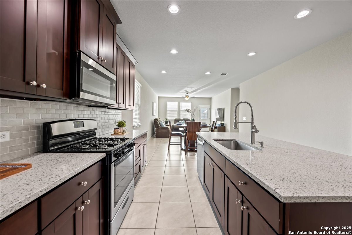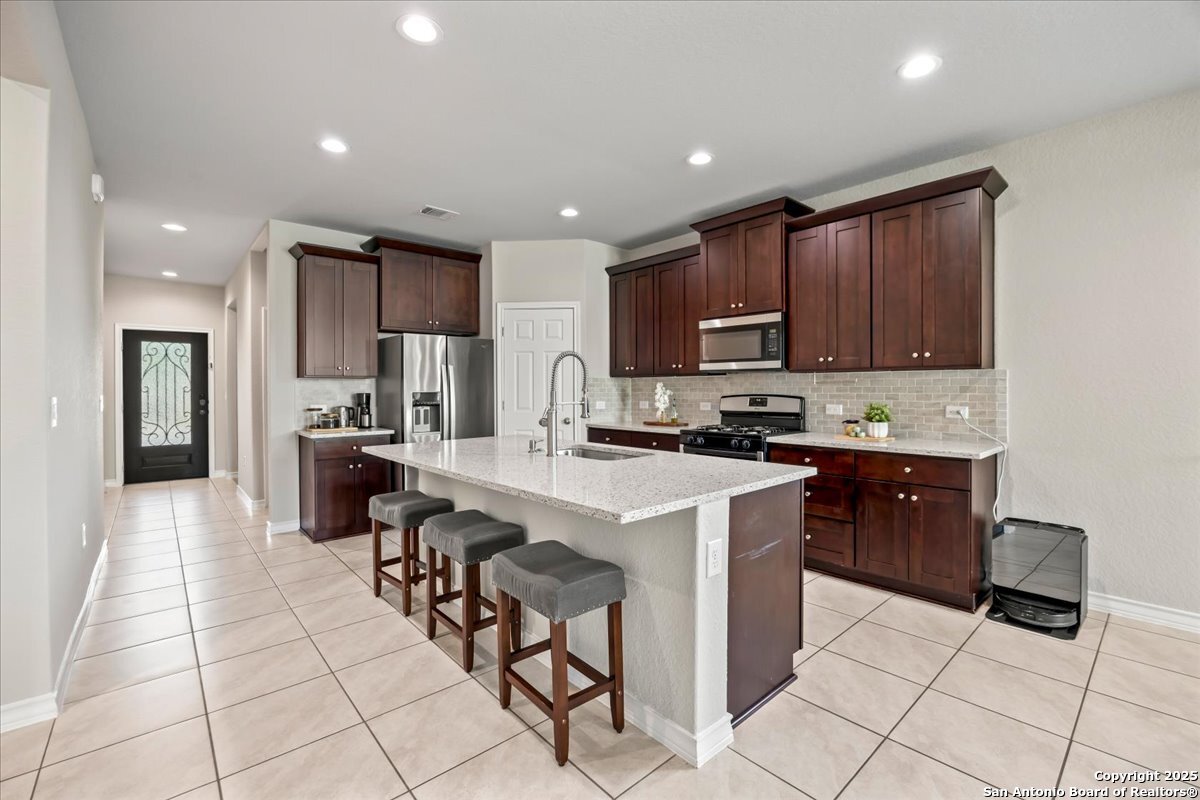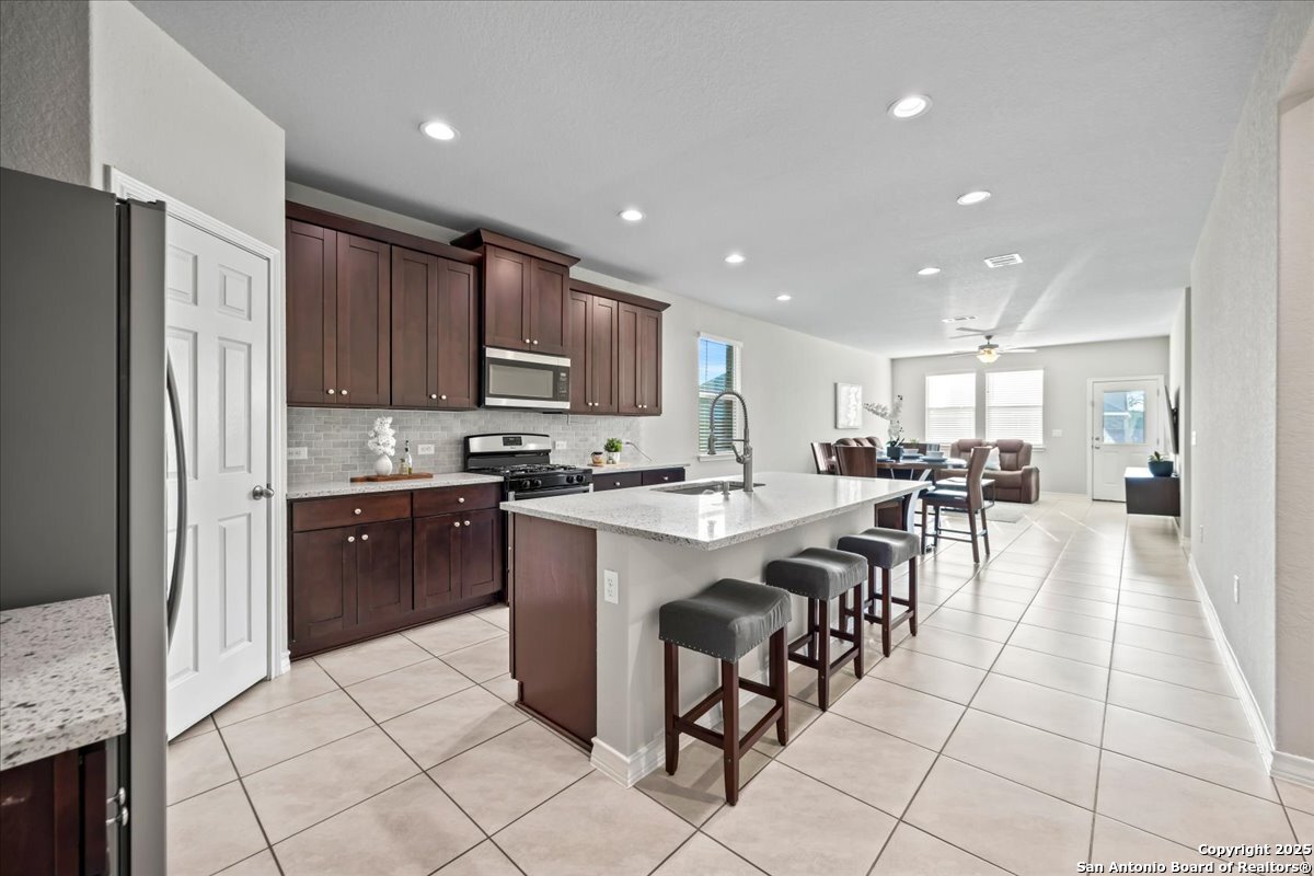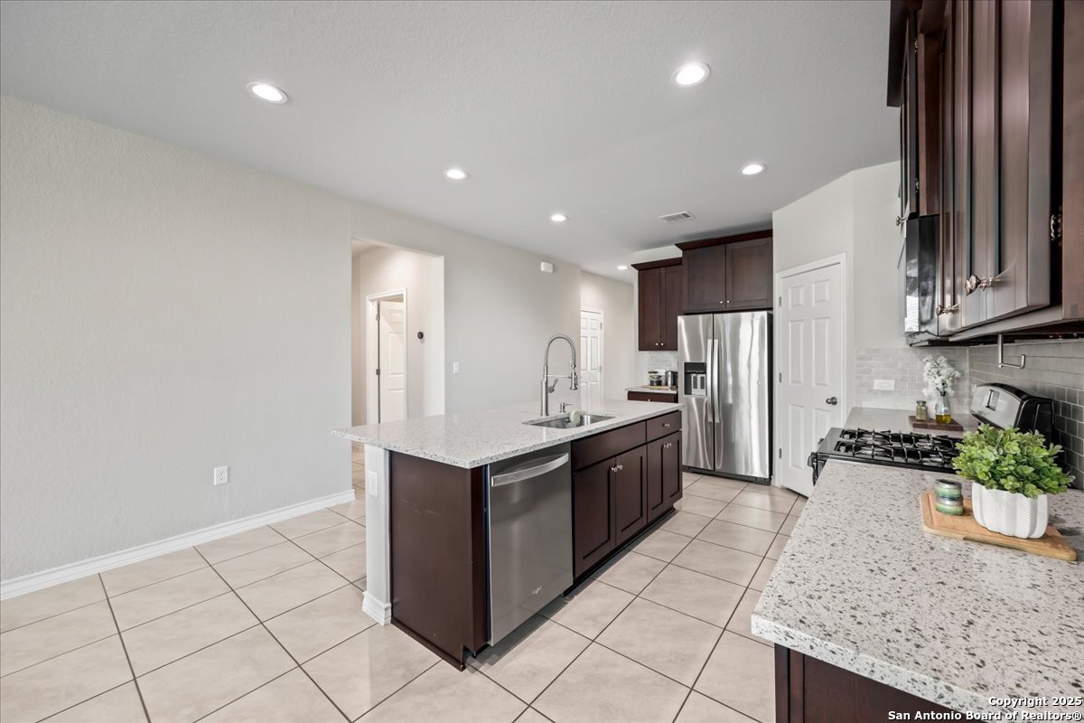 Welcome to 11922 Double Barrel, a charming 3-bedroom, 2-bathroom home located in the highly desirable Stillwater Ranch community. This thoughtfully designed 1,721 sq. ft. residence offers an open-concept layout where the spacious living area flows seamlessly into the kitchen and dining space. The kitchen boasts a large island with a single-basin sink, 42" upper cabinets with crown molding, quartz countertops, stainless steel appliances, and recessed lighting-perfect for everyday living and entertaining. The primary suite features a walk-in shower, generous closet space, and a bright, relaxing atmosphere. Updates include a brand-new roof (2024), as well as a $15,000 backyard transformation featuring an extended concrete patio with concrete walkways on both sides, and lush Tahoma 31 Bermuda grass that enhances the outdoor living space. Stillwater Ranch residents enjoy resort-style amenities including a pool, park, playground, tennis and basketball courts, and miles of walking trails-all just minutes from shopping, dining, and entertainment. Don't miss your chance to make this upgraded and move-in ready home yours!