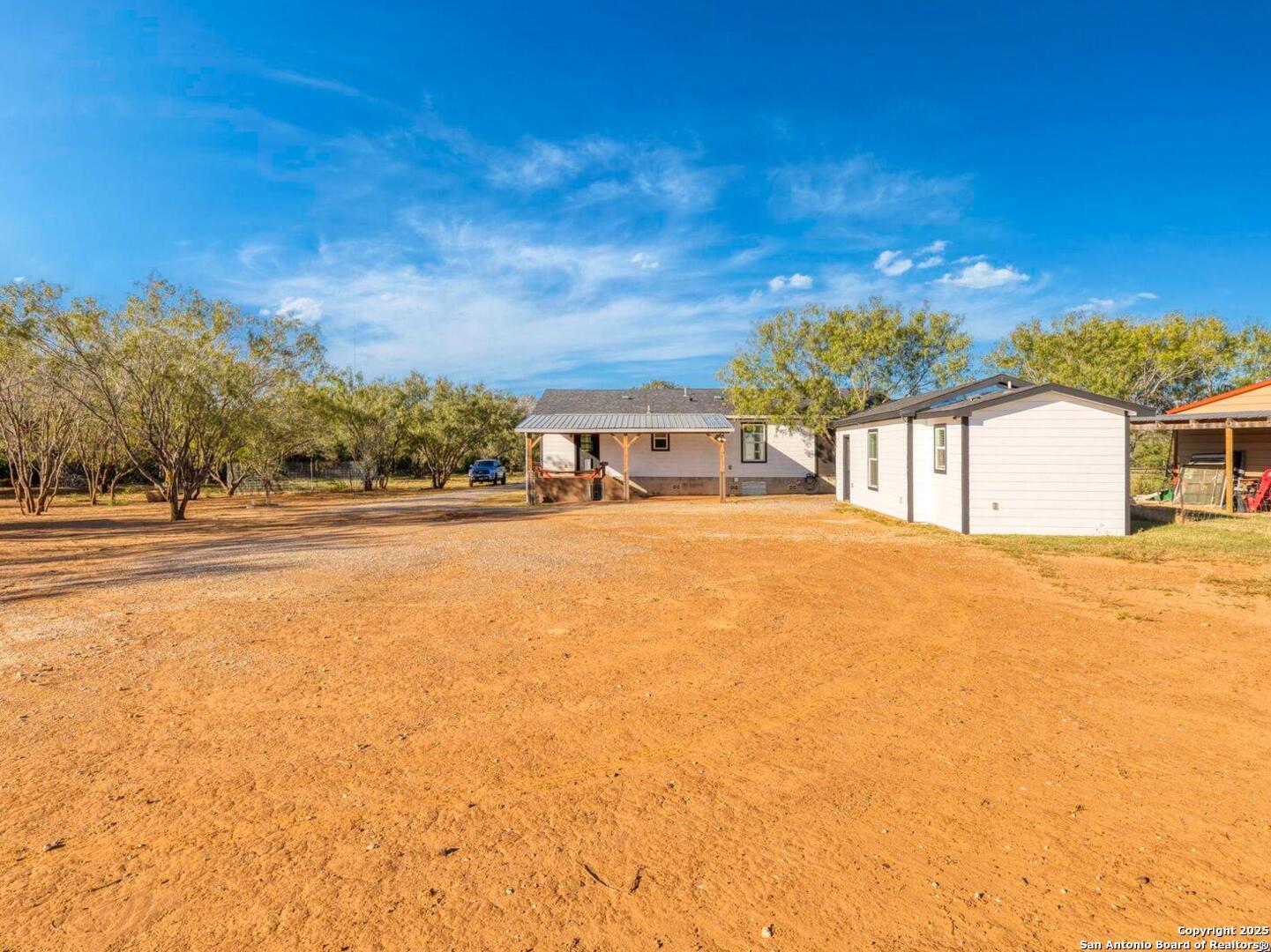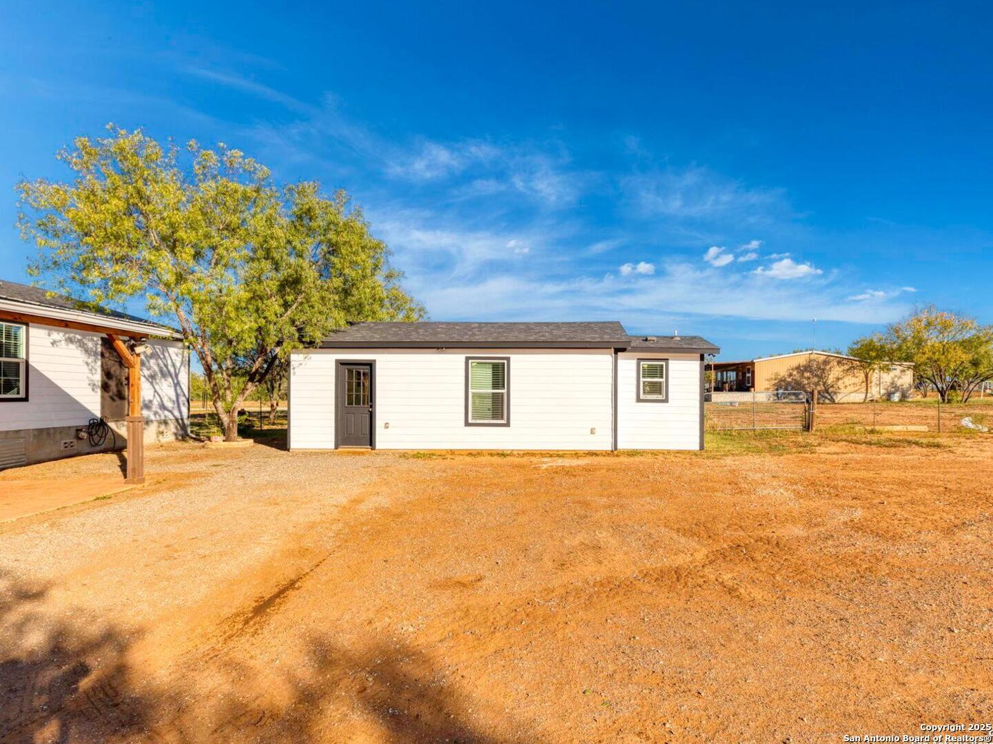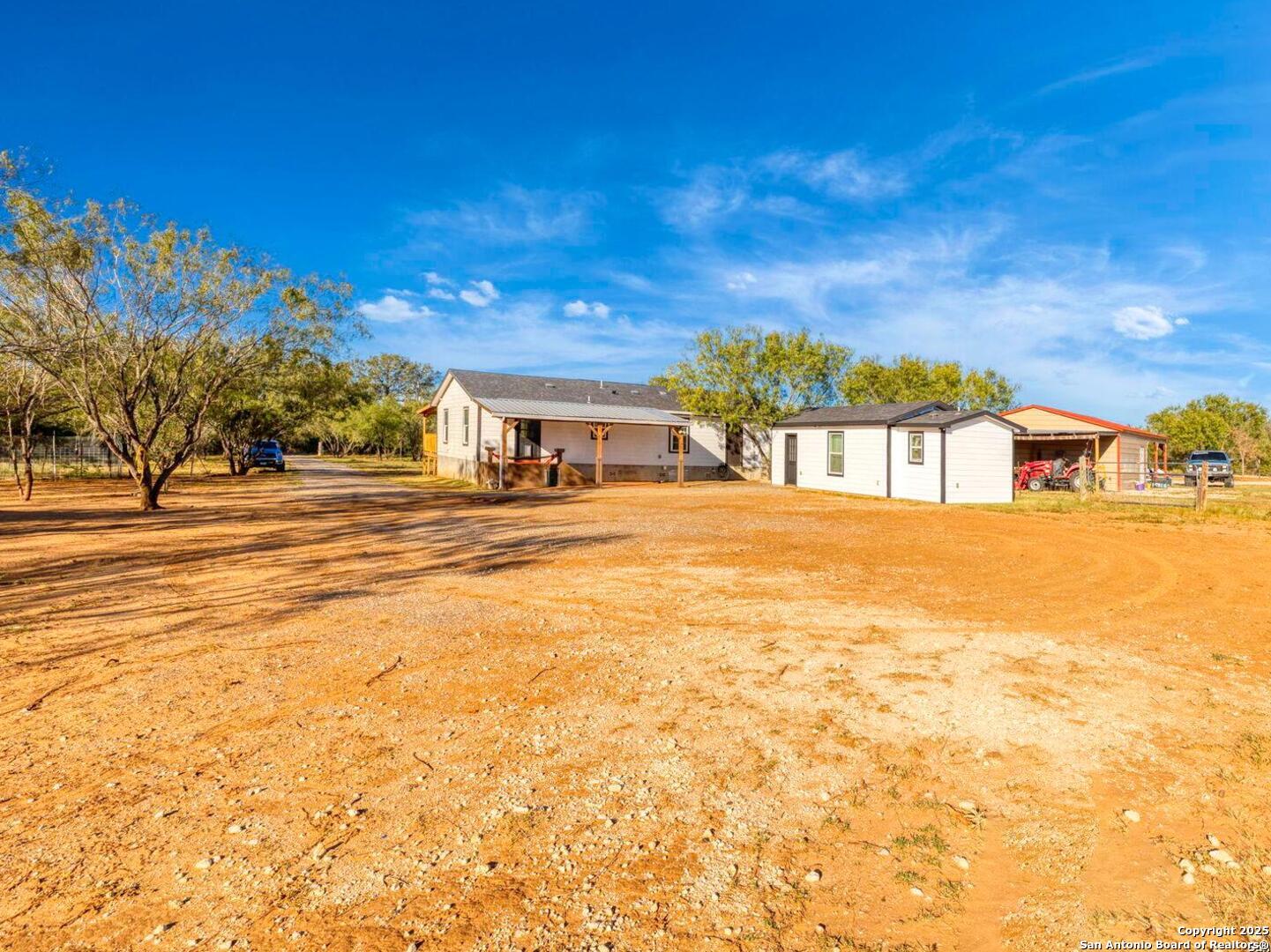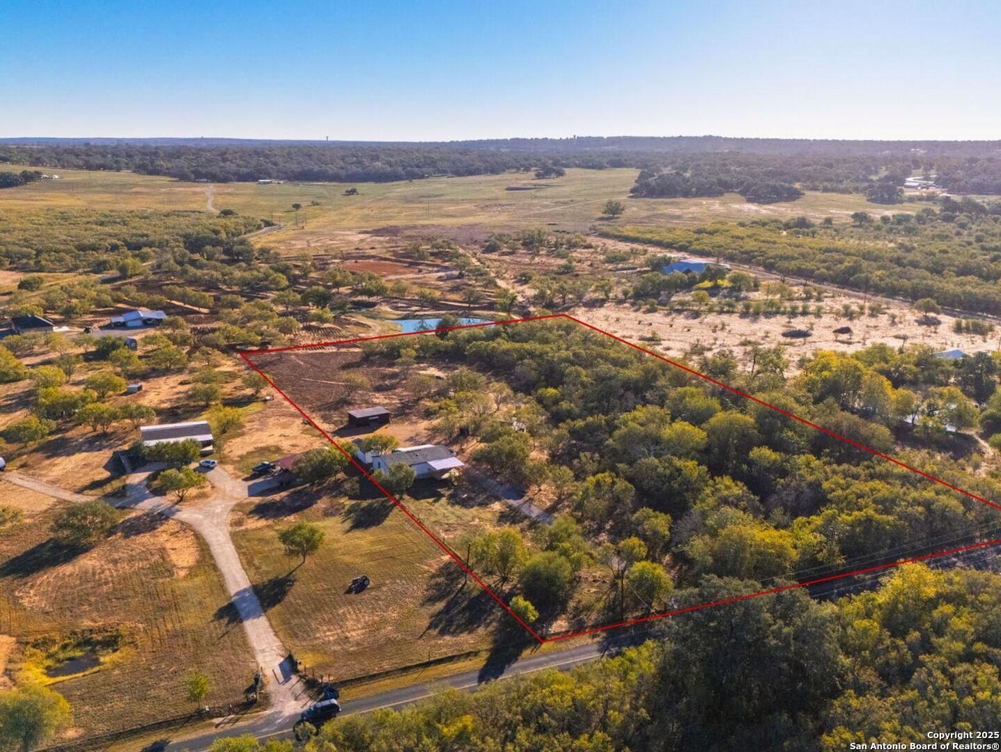 6+ACRES NO RESTRICTIONS! **OPEN HOUSE NOVEMBER 15TH 12-2PM**Discover peaceful Hill Country living just 30 minutes from downtown San Antonio. This fully fenced 6.22-acre property offers endless possibilities with no HOA or restrictions, so bring your animals, projects, and ideas. A gated entrance welcomes you to a serene setting featuring a seasonal creek, open pasture, mature trees, and multiple outbuildings. The main home is approximately 1,500 square feet and offers an inviting open floor plan with central A/C, spray foam insulation including foundation, and a beautiful kitchen with island seating, custom cabinetry, and an updated backsplash. Enjoy a new oversized covered patio in front plus a covered back patio perfect for entertaining or relaxing outdoors.The detached guest house is approximately 400 square feet and includes a kitchen, full bath, epoxy floors, and mini split A/C, ideal for guests, extended family, or rental income. Additional improvements include a 480 square foot workshop with electricity, a 256 square foot storage shed, and a chicken coop. The property features a 2021 septic system that has been recently serviced, new gutters on the main home, and a well with a separate water meter through Essential Utilities. According to the county, there is approval to add up to two additional homes in the future, each with its own electric meter, giving you flexibility for future expansion or investment potential. Conveniently located near Calaveras Lake and an easy drive to major highways, experience Hill Country living at its finest.