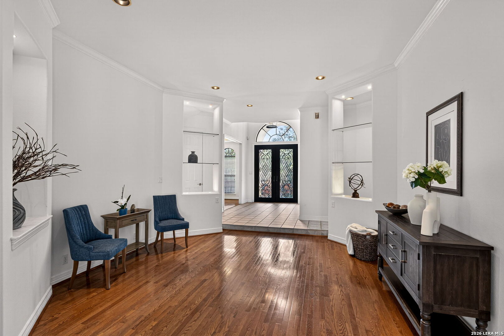 This gorgeous home in beautiful Inwood is waiting just for you! From the circular drive facing the impressive metal double front doors to the wooded backyard, there is nothing not to love about this stunning 3-bedroom, 3.5-bath home with a 3-car garage. The high ceilings, exquisite finishes, and spacious rooms make this custom home a place to call home. This home features a Sub-Zero refrigerator, two fireplaces, a wet bar, a beautiful private office, and a huge family room that has plenty of windows, giving you a relaxing view of the greenbelt in the back. The family room connects to the large, open kitchen with custom cabinets and lots of cabinet space. Enjoy your mornings and evenings on the balcony overlooking the greenbelt. This is a guarded community, conveniently located two minutes from 1604, shopping, entertainment, and schools. Don't let this gem pass you by. Make an appointment to make it your own today! Pst, pst...Check out the video.