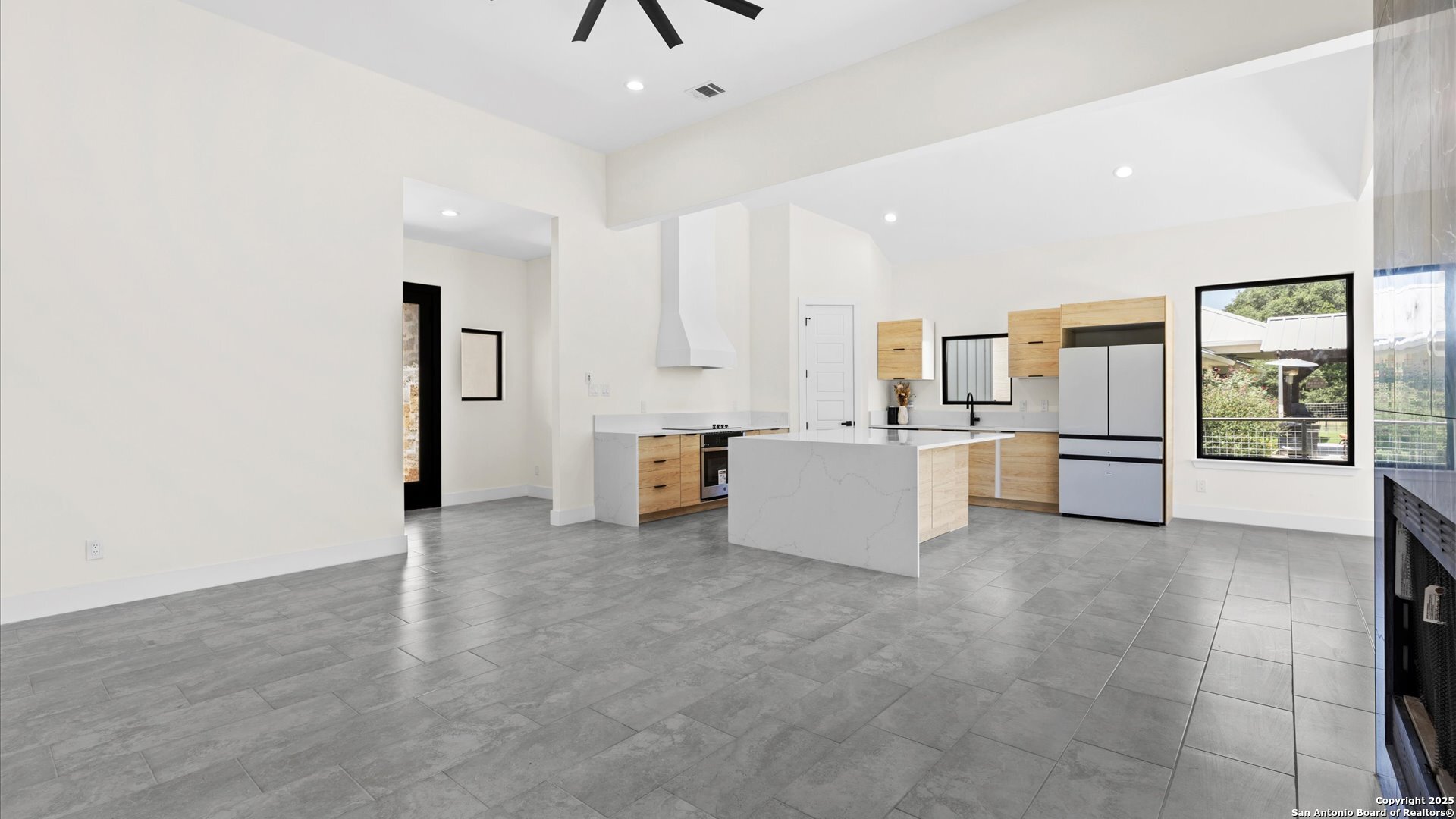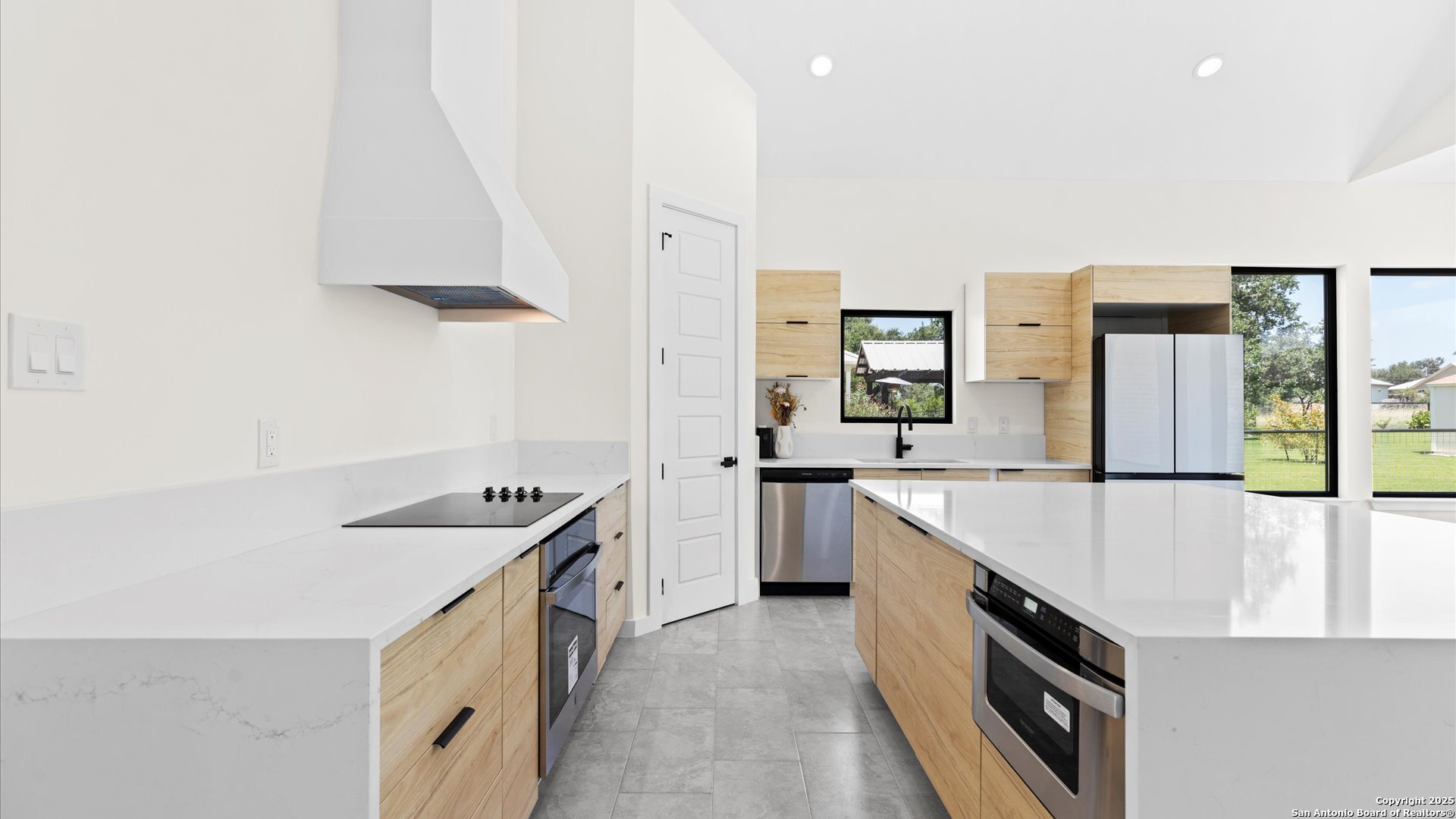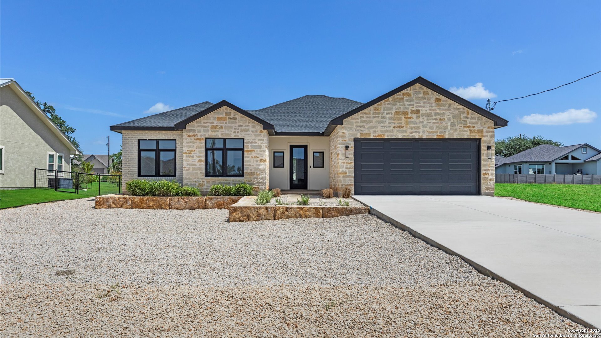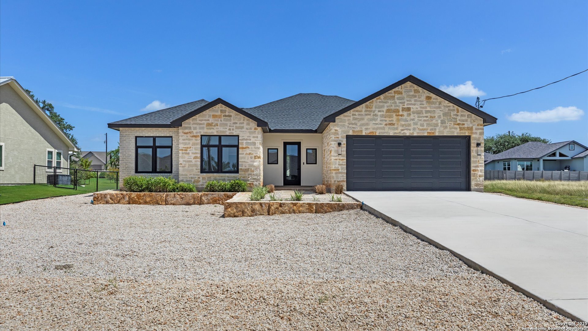 Modern Hill Country Living for the Golf Enthusiast Welcome to your dream retreat in the heart of the Texas Hill Country, perfectly designed for the mature golf lover. This elegant single-story 3-bedroom, 2-bath home includes a spacious 2-car garage plus a dedicated golf cart garage with a separate door and EV charging station-tailored for your active lifestyle. Located in the highly desirable Vaaler Creek Golf Club community, this brand-new construction blends refined comfort with modern design. The open-concept, split floor plan features a grand living area with soaring 12' ceilings, a cozy wood-burning fireplace, and a seamless flow into the gourmet kitchen-complete with granite countertops, custom cabinetry, stainless steel appliances, and a large central island perfect for entertaining. Enjoy the timeless elegance of Level 5 smooth-textured walls, 8' solid core doors, and argon gas tilt-and-turn European-style bedroom windows for maximum natural light and energy efficiency. Throughout the rest of the home, 10' ceilings enhance the sense of space and luxury. The primary suite is a peaceful sanctuary with high ceilings, a spa-like bathroom featuring a walk-in tiled shower with bench, dual vanities, and a safe room built into the expansive walk-in closet-a thoughtful touch for peace of mind. Additional highlights include: Golf cart garage with separate 8' door & opener Keyless entry system EV-ready garage setup Modern finishes and functional luxury throughout Perfectly situated just minutes from the course, this home offers the ease, comfort, and sophistication today's golf-loving homeowner expects. Move in, tee up, and start enjoying the lifestyle you've earned.