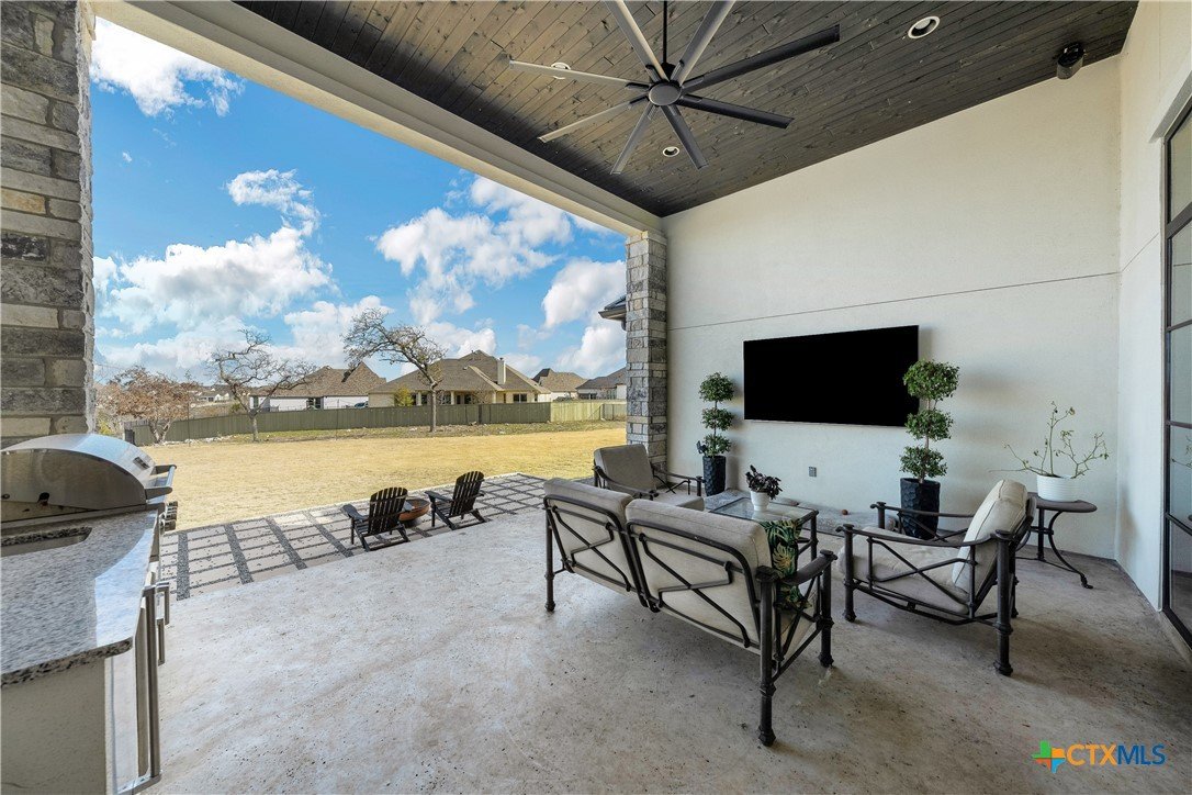 Ask about Seller contribution to buyer for- Buy Down Rate or Closing Cost Contribution! Loaded with Builder & Owner upgrades! La Ventana Drive in Santa Rita Ranch is regarded as one of the most sought after streets to live on in this community. With a sprawling 105 ft wide lot on just over 1/2 an acre and is adorned with a small vineyard, many fruit trees, a stunning view and is enclosed with end to end wrought iron fencing. At just over 4500 sqft (per/wcad) all 4 bedrooms each have their own bathroom and walk-in closets! There is a game room, flex room and casita with kitchenette. Open floor plan, entertainers kitchen, full bar, butlers pantry, outdoor kitchen, three car garage, master bedroom closet built-ins, upgraded light fixtures, flat screen TV’s in most rooms, surround sound system in the living room and back patio are just a FEW of the amazing upgrades this home has to offer. Elementary & Middle Schools located in the community as well as a gym and 3 community pools with slides and splash pads. Welcome home to luxury living at its finest. Call for an appt and call 120 La Ventana Drive your home!
