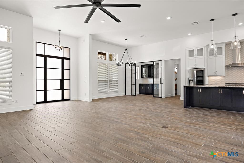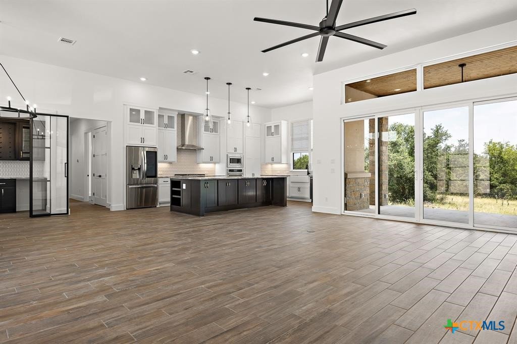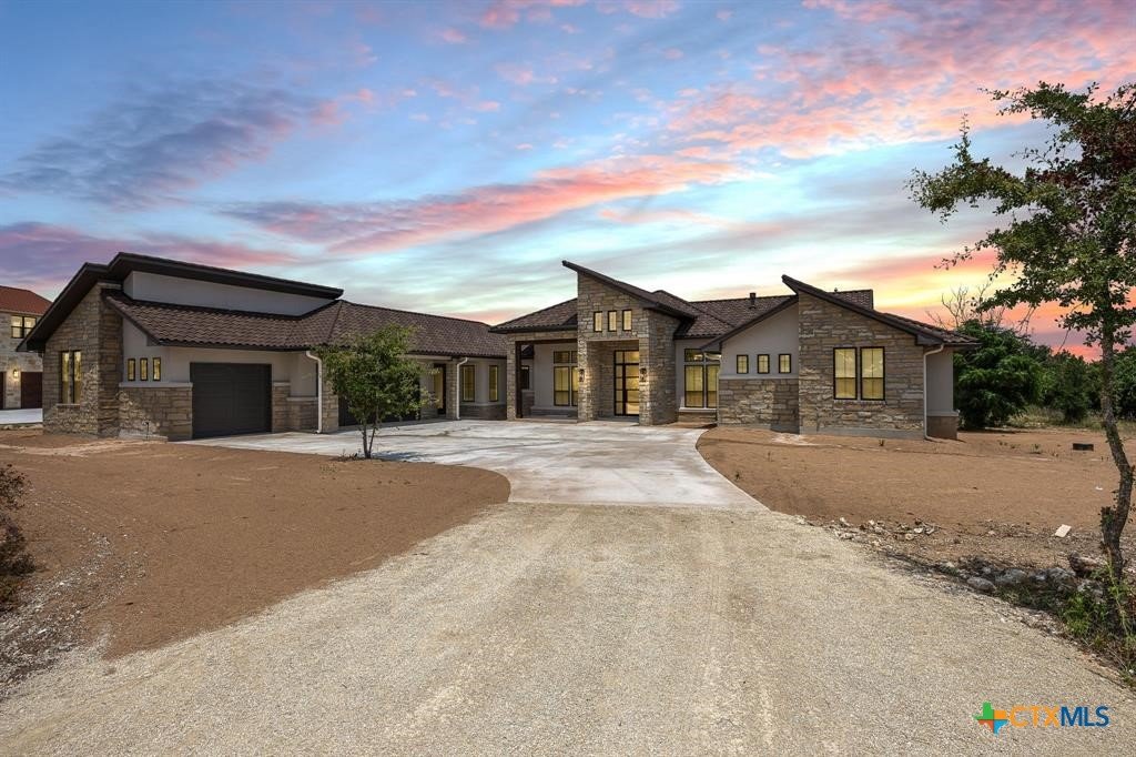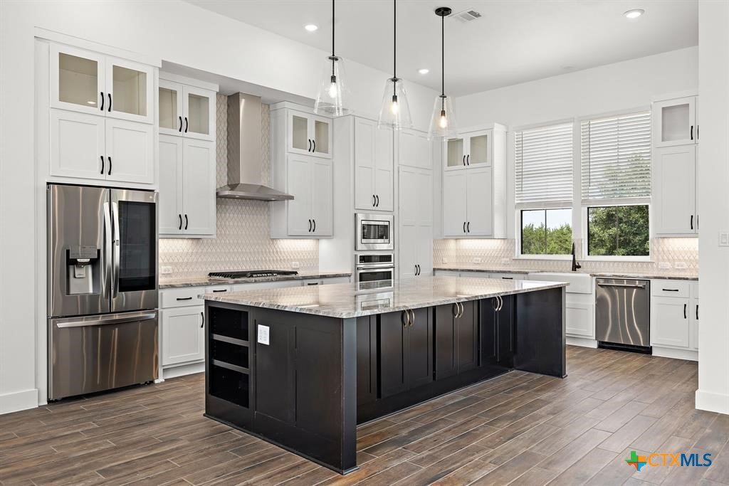 Just Completed stunning 2800 plus footage Home. Open floor plan with Kitchen dine and living, High ceilings and many windows to see hill country. Stainless appliances and huge center island . Gas fire place in living and sep. office off living Master bedroom large and roomy . Master bath with sep tub and walk in shower and walkin closets. Double vanity in Master bath and hall bath and has a half bath as well. Mud room off of 3 car garage , Coverd patio overlooking green belt and open pasture area