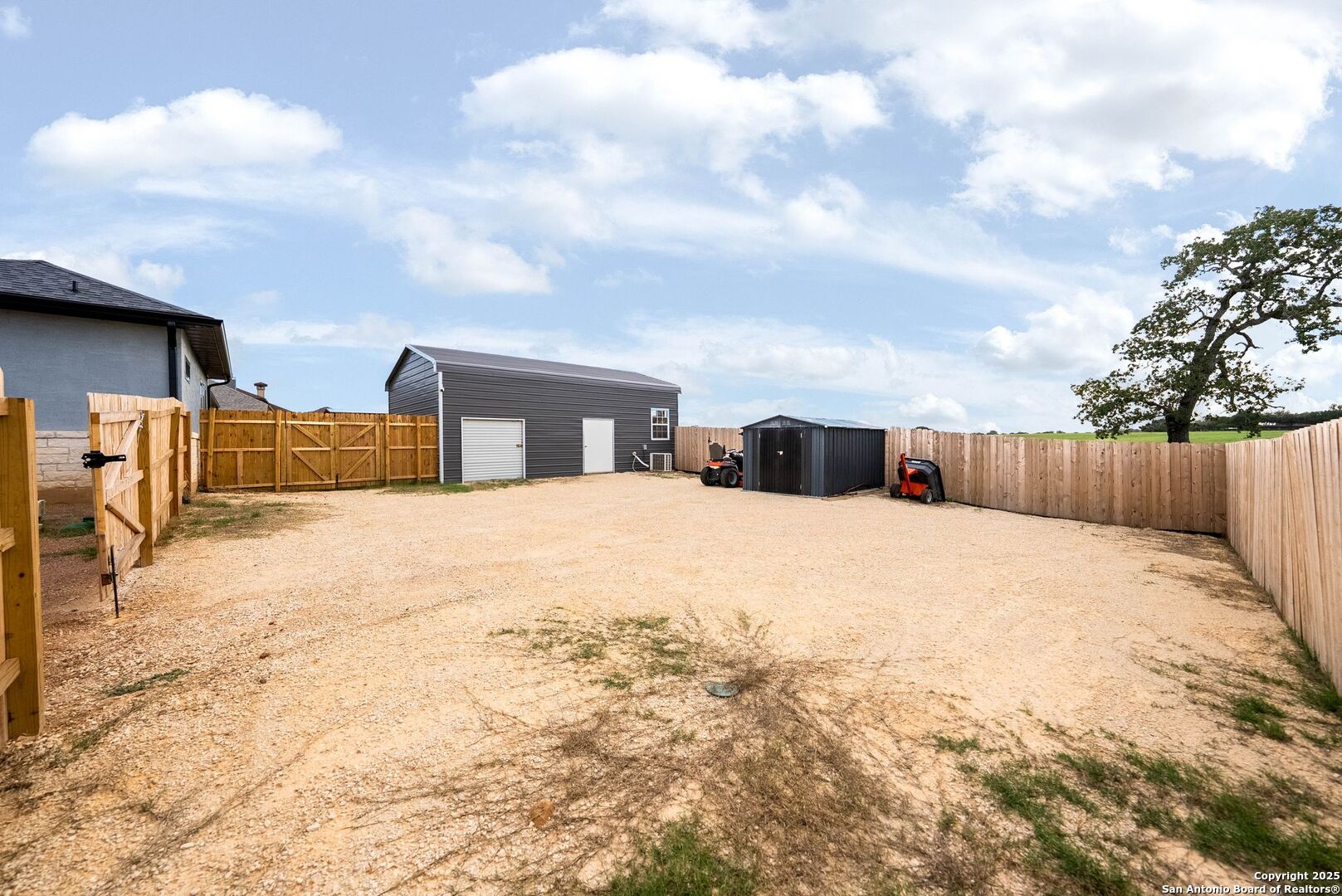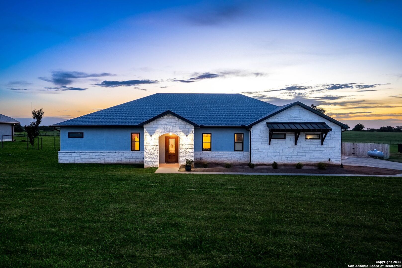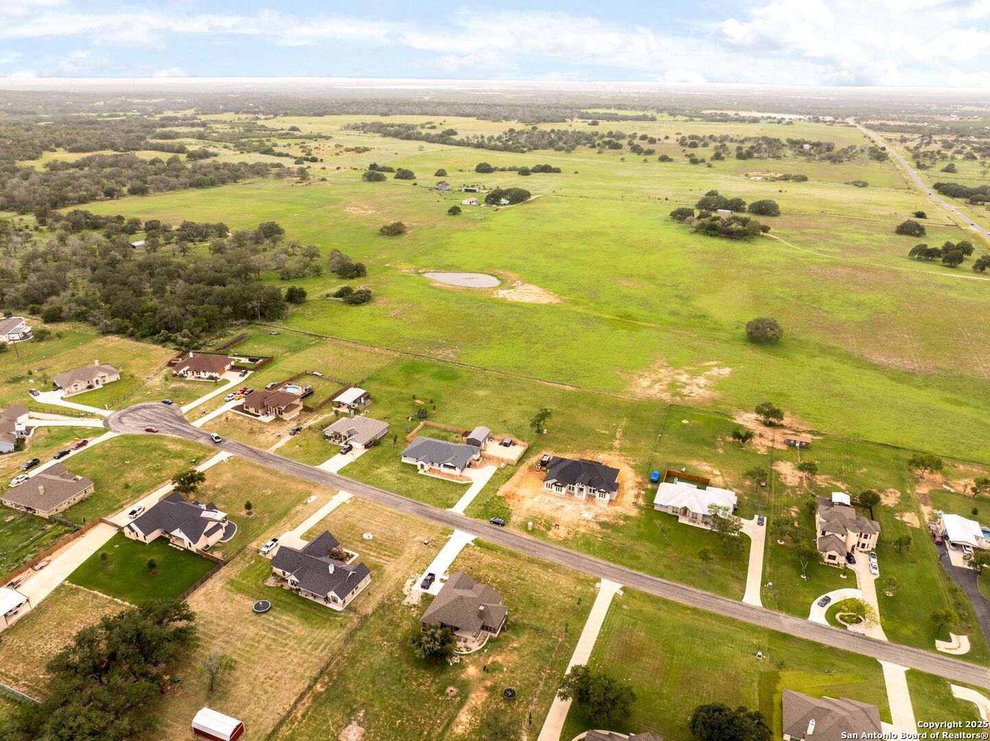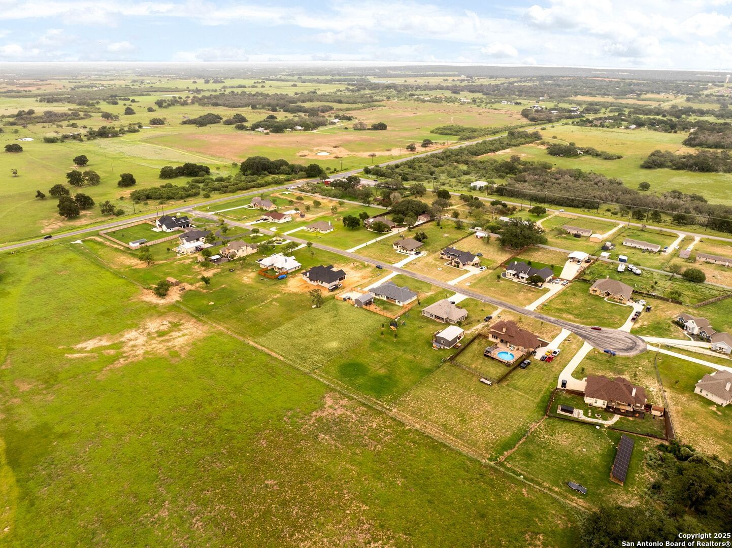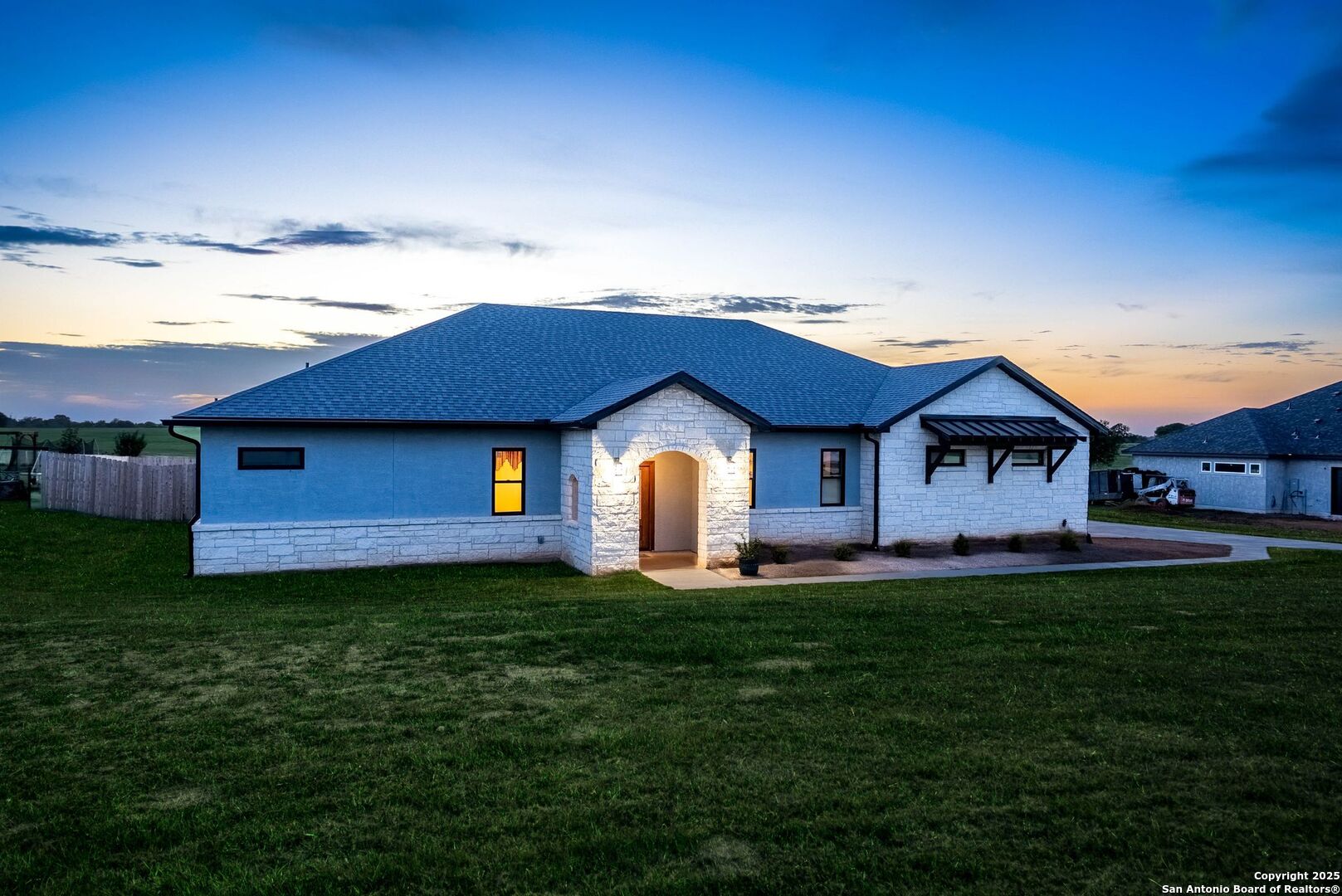 This stunning single-story custom home offers 4 bedrooms, 3.5 bathrooms, and sits on a spacious 1.11-acre lot with no city taxes. Thoughtfully designed, each bedroom includes its own private bathroom, ensuring comfort and privacy for all. The open floor plan is filled with natural light and showcases exceptional craftsmanship, featuring solid walnut custom cabinetry, quartz countertops, and a chef's kitchen tailored for culinary enthusiasts. Warm wood flooring flows throughout the living spaces, adding timeless charm. The home is built with 2x6 studs and spray foam insulation for superior energy efficiency. A gas fireplace brings cozy ambiance to the living area. The 600-square-foot climate-controlled shop includes its own bathroom, making it perfect for a gym, workshop, or creative studio. Additional features include a water softener and iron filter system. While the main roof is a heavy composition material rated for durability, a metal shed-style roof provides architectural interest and shade over the front windows. With 2,700 square feet of living space and high-performance finishes, this fully custom home offers refined South Texas living with lasting quality and comfort.