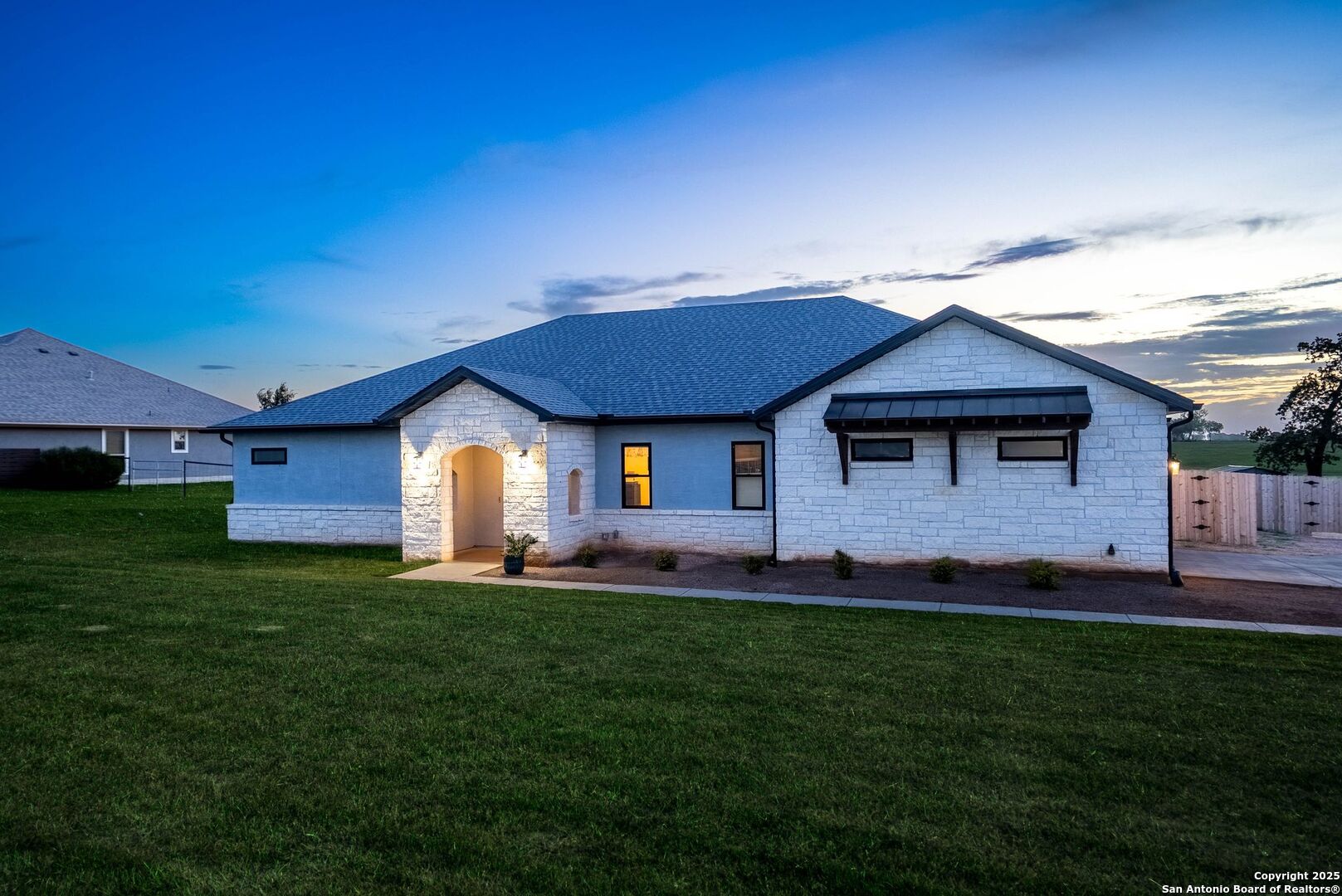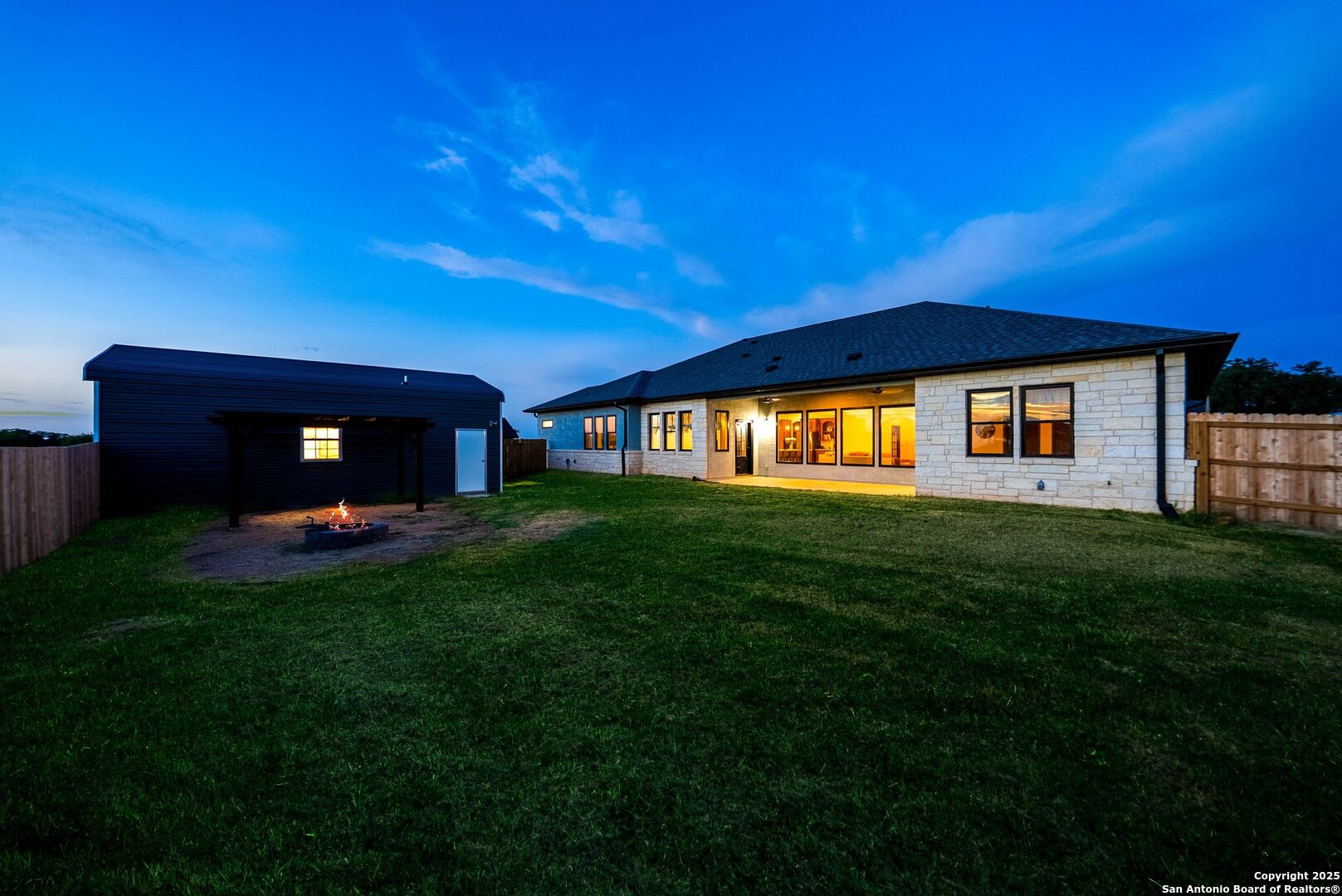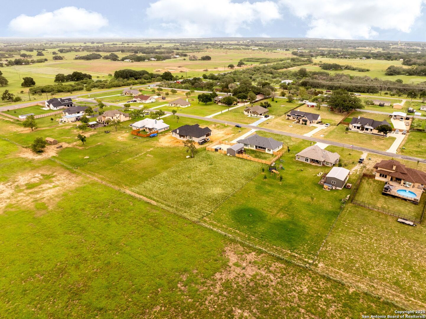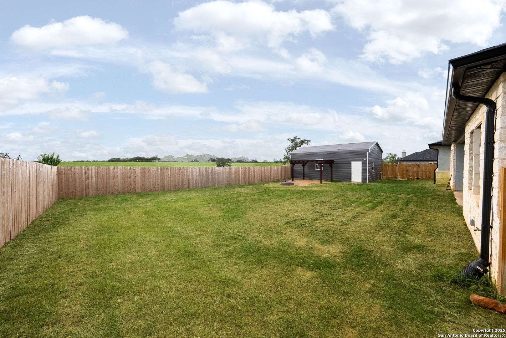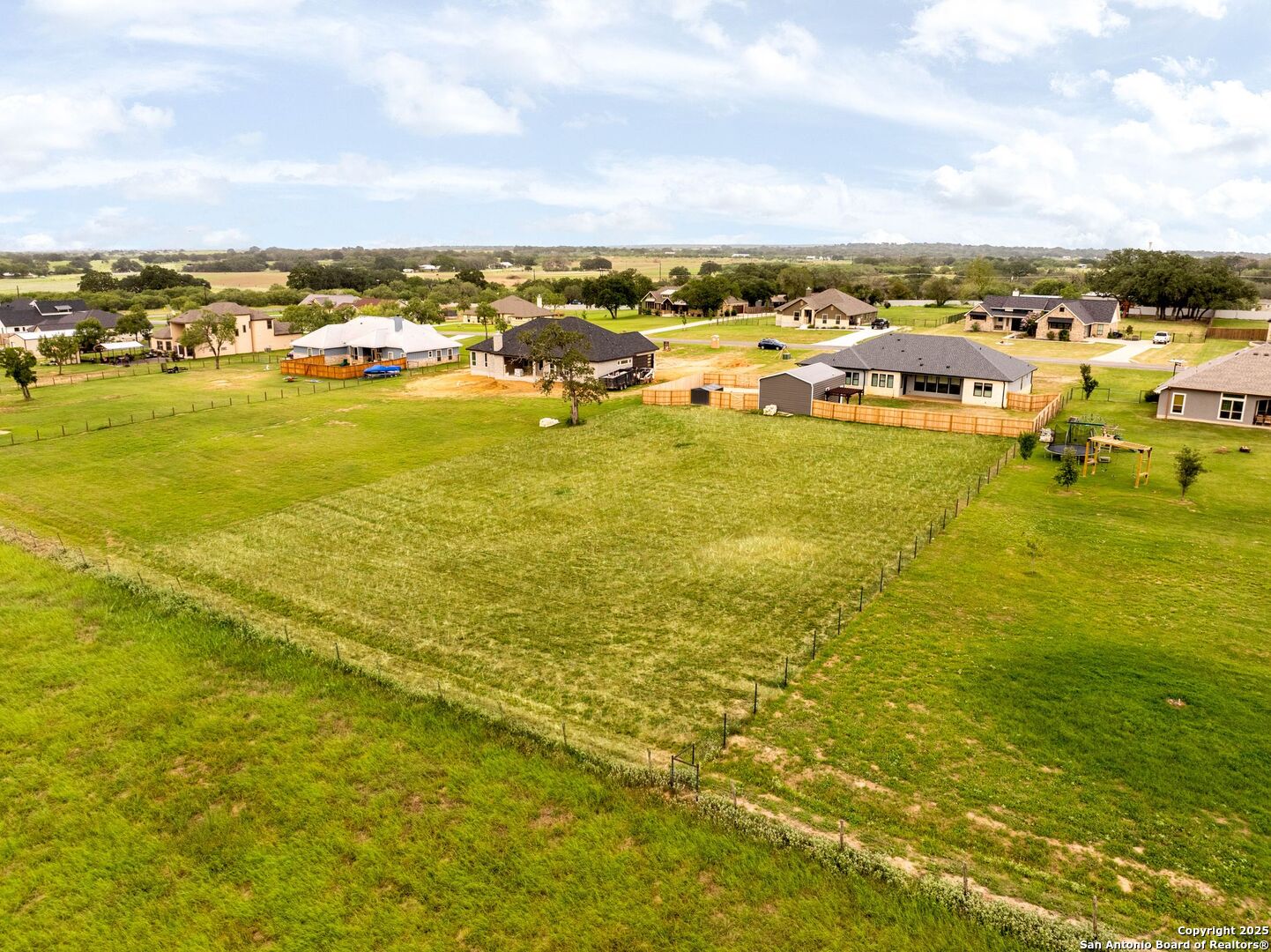 This stunning single-story custom home offers 4 bedrooms, 3.5 bathrooms, and sits on a spacious 1.11-acre lot with no city taxes. Thoughtfully designed, each bedroom includes its own private bathroom, ensuring comfort and privacy for all. The open floor plan is filled with natural light and showcases exceptional craftsmanship, featuring solid walnut custom cabinetry, quartz countertops, and a chef's kitchen tailored for culinary enthusiasts. Warm wood flooring flows throughout the living spaces, adding timeless charm. The home is built with 2x6 studs and spray foam insulation for superior energy efficiency. A gas fireplace brings cozy ambiance to the living area. The 600-square-foot climate-controlled shop includes its own bathroom, making it perfect for a gym, workshop, or creative studio. Additional features include a water softener and iron filter system. While the main roof is a heavy composition material rated for durability, a metal shed-style roof provides architectural interest and shade over the front windows. With 2,700 square feet of living space and high-performance finishes, this fully custom home offers refined South Texas living with lasting quality and comfort.