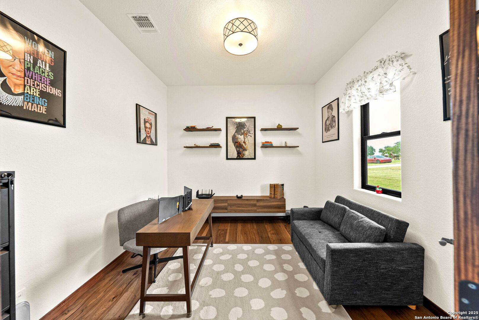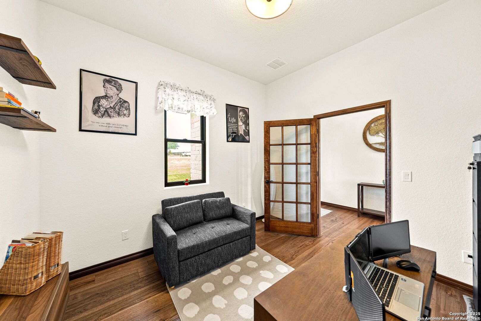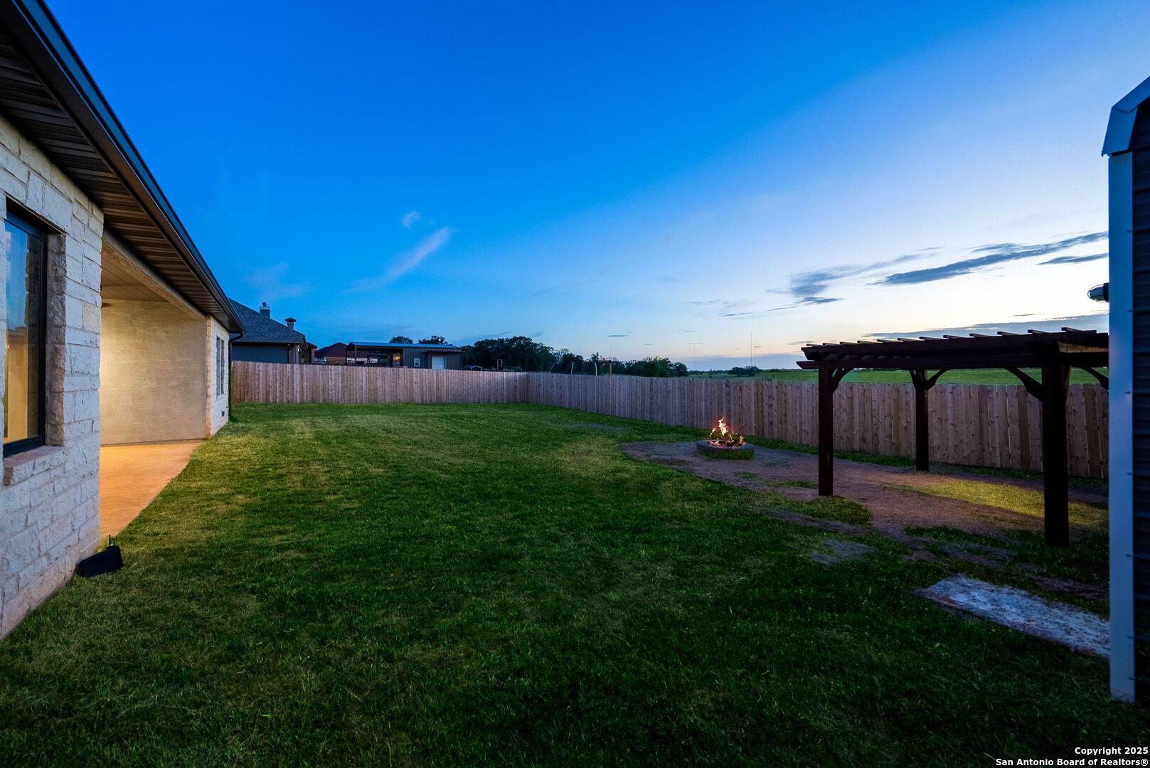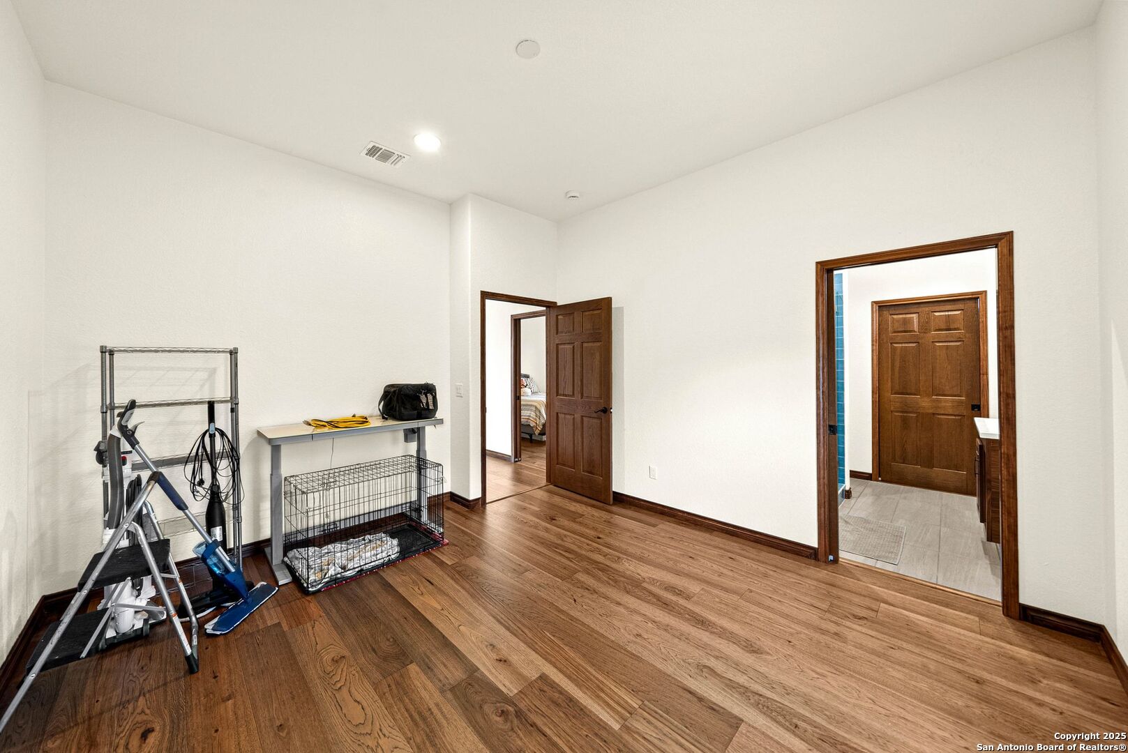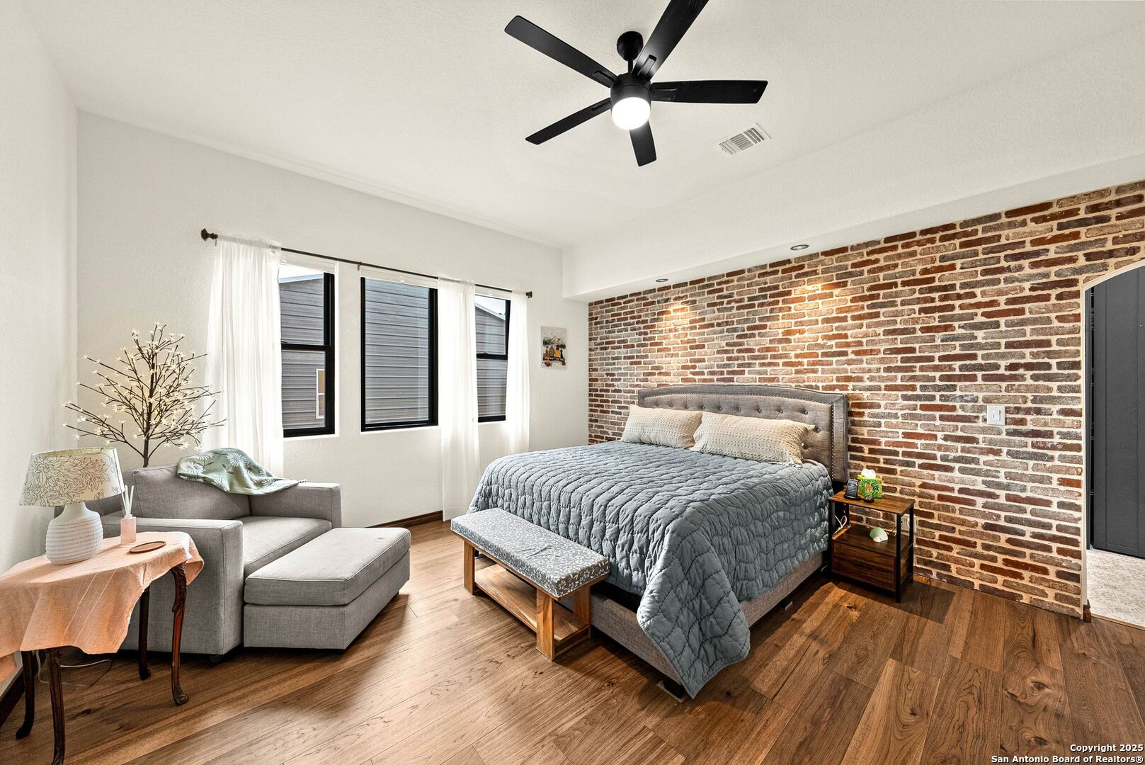 This stunning single-story custom home offers 4 bedrooms, 3.5 bathrooms, and sits on a spacious 1.11-acre lot with no city taxes. Thoughtfully designed, each bedroom includes its own private bathroom, ensuring comfort and privacy for all. The open floor plan is filled with natural light and showcases exceptional craftsmanship, featuring solid walnut custom cabinetry, quartz countertops, and a chef's kitchen tailored for culinary enthusiasts. Warm wood flooring flows throughout the living spaces, adding timeless charm. The home is built with 2x6 studs and spray foam insulation for superior energy efficiency. A gas fireplace brings cozy ambiance to the living area. The 600-square-foot climate-controlled shop includes its own bathroom, making it perfect for a gym, workshop, or creative studio. Additional features include a water softener and iron filter system. While the main roof is a heavy composition material rated for durability, a metal shed-style roof provides architectural interest and shade over the front windows. With 2,700 square feet of living space and high-performance finishes, this fully custom home offers refined South Texas living with lasting quality and comfort.